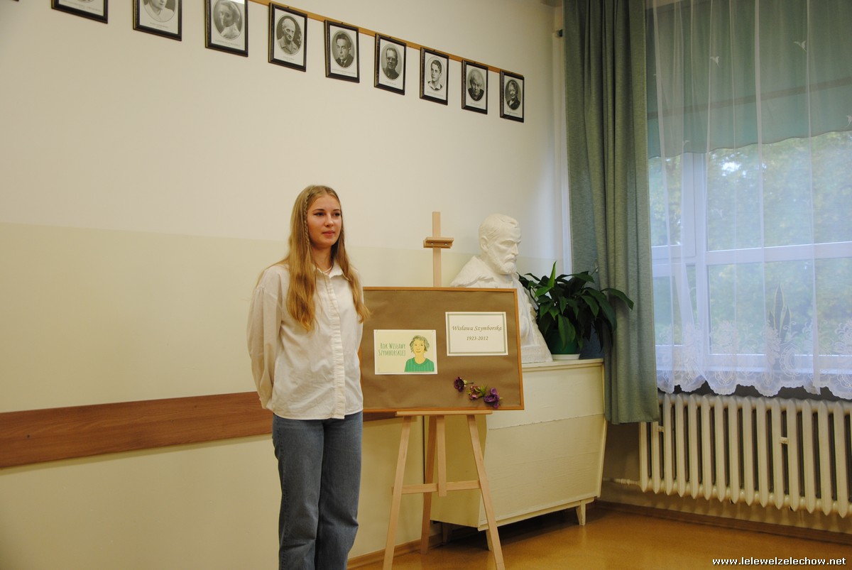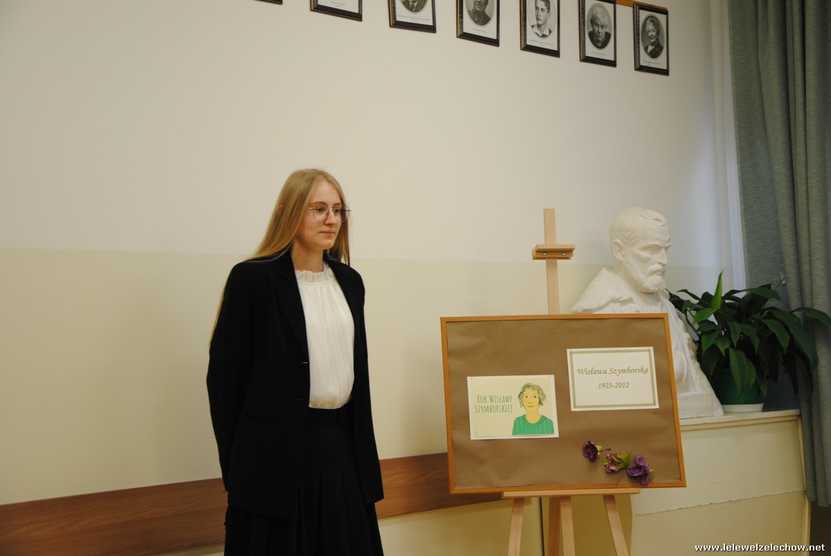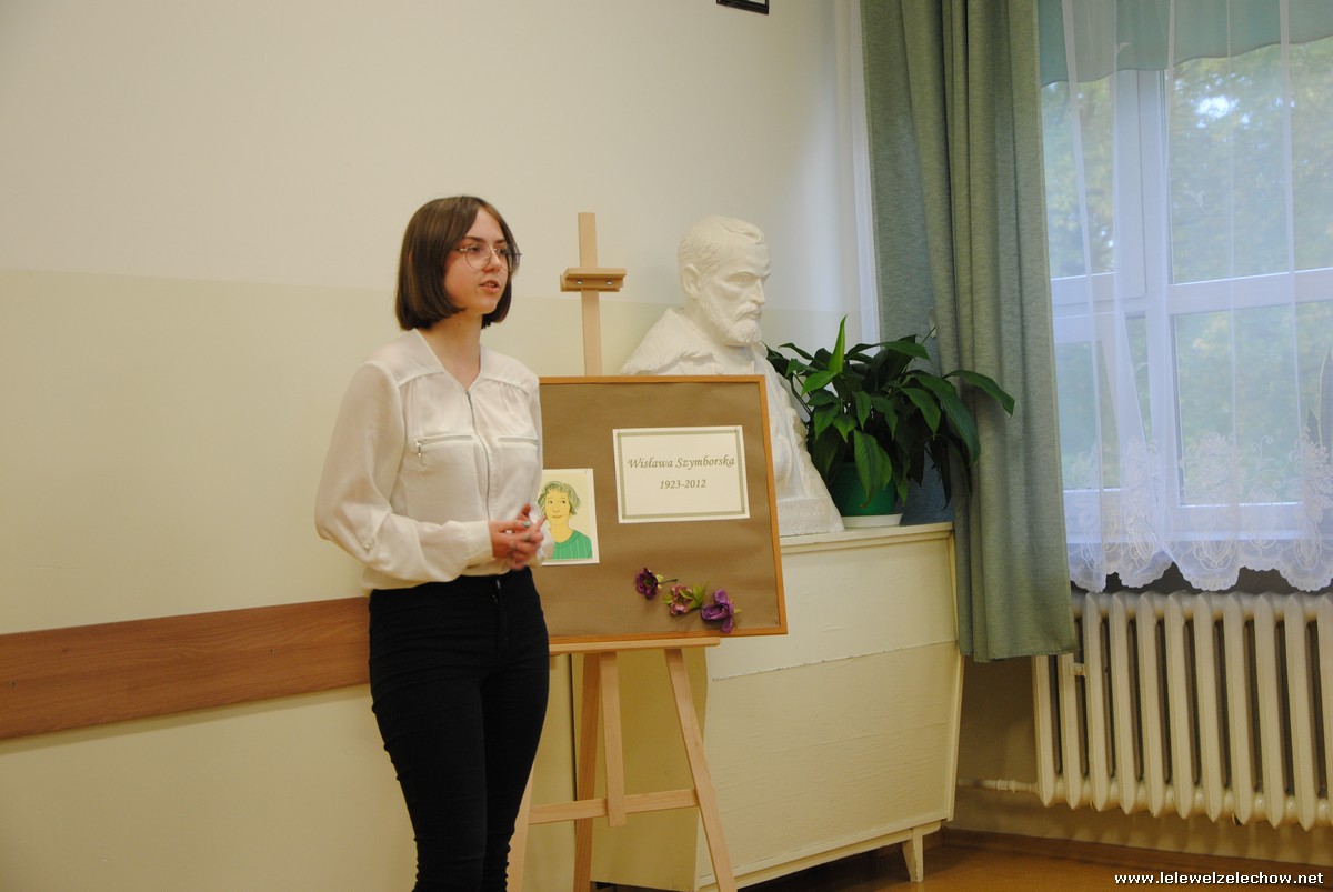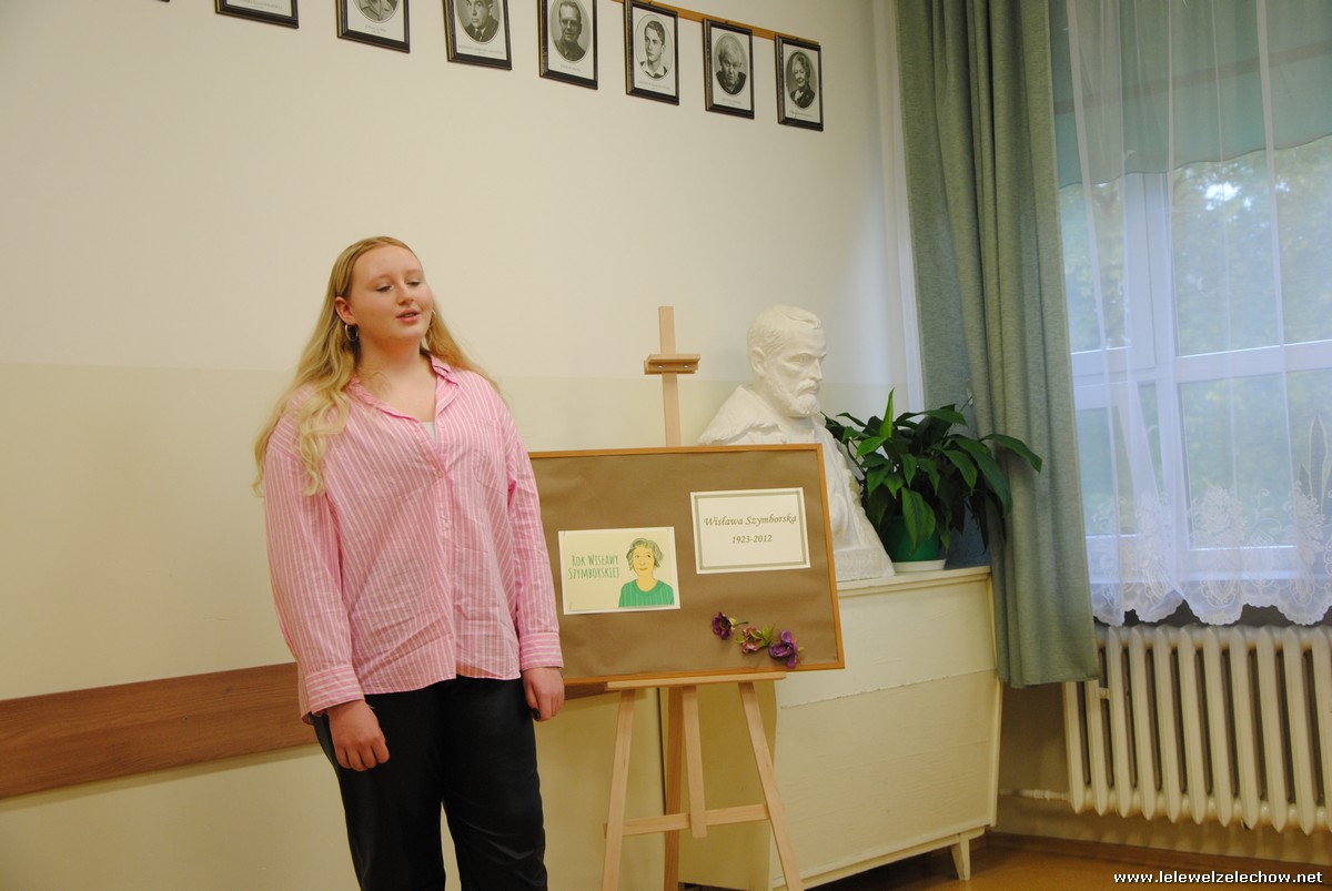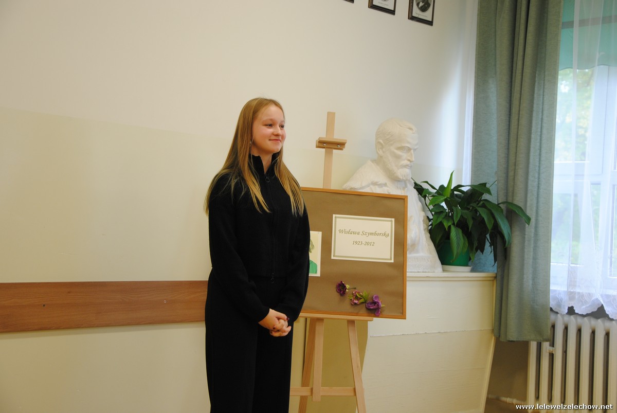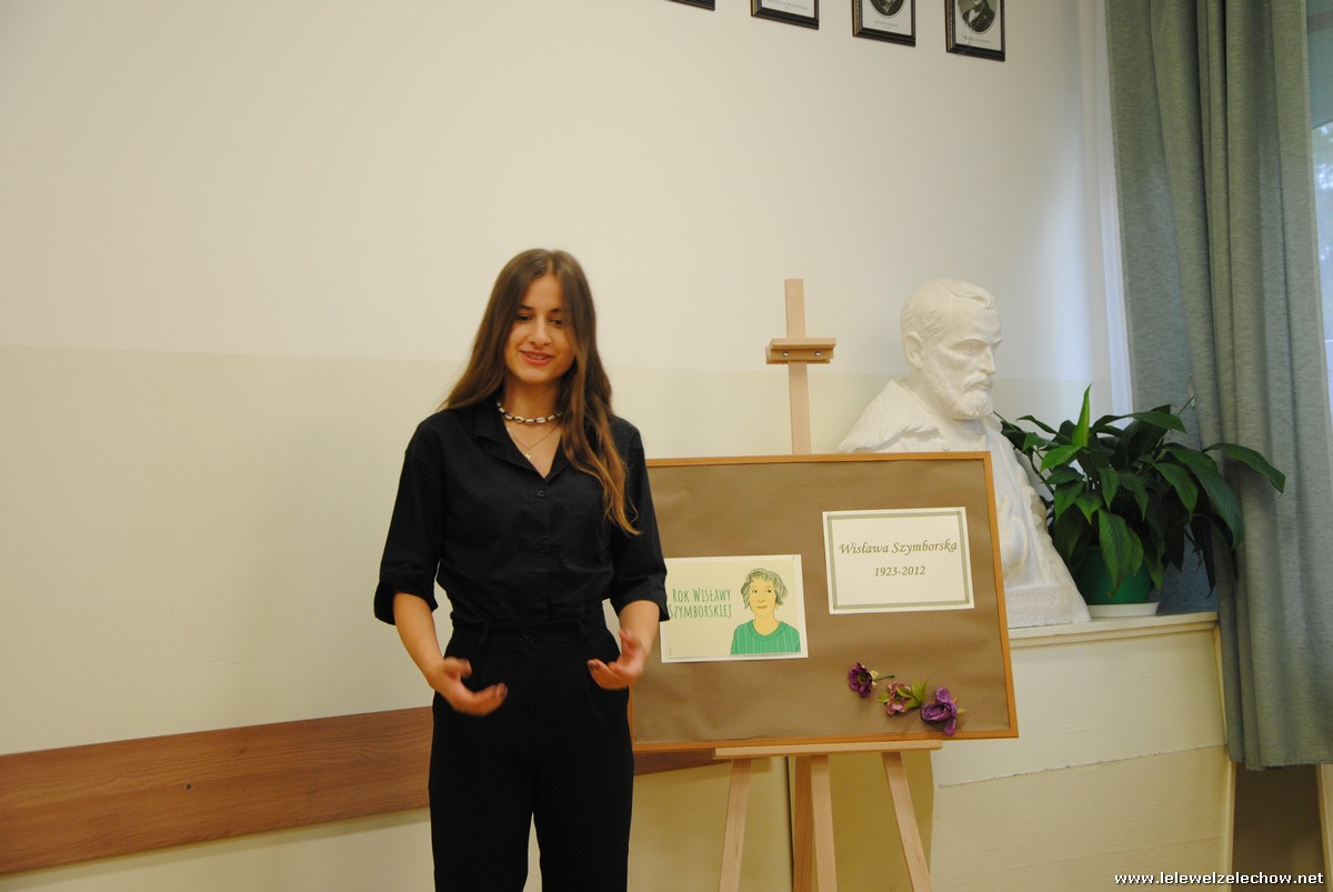 Szkolny konkurs recytatorski, podczas którego trzeba było się zmierzyć z wierszami noblistki, udowodnił po raz kolejny, że młodzi ludzie też czytają poezję, potrafią ją interpretować i pięknie recytować (w konkursie wzięło udział 23 uczniów!). A Wisława Szymborska, której rok 2023 jest poświęcony, to jedna z najbardziej lubianych poetek. Jej twórczość mówi o sprawach ważnych bez patosu, w prosty, często ironiczny sposób. „Nic dwa razy się nie zdarza”, „Miłość od pierwszego wejrzenia”, „Chwila”, „Perspektywa”, „Miłość szczęśliwa” to tylko niektóre wiersze, jakim przysłuchiwało się jury podczas konkursu. Pani Maria Władzińska, pani Magdalena Woźniak i pani Anna Włodarczyk nie miały łatwego zadania, ale trzeba było wybrać najlepsze interpretacje. W konkursie I miejsce przyznano Laurze Kocielnik z klasy I a, II miejsce – Katarzynie Osińskiej z klasy II c, a III miejsce Patrycji Polak z klasy III a. Wyróżniono również Julię Sergiel z klasy III a oraz Wiktorię Turkowską z klasy II b. Gratulujemy!