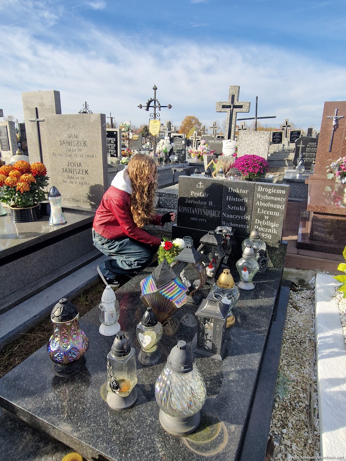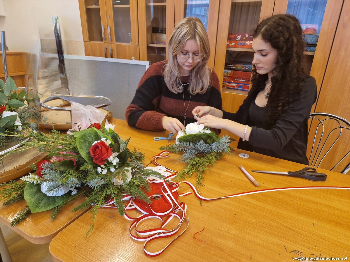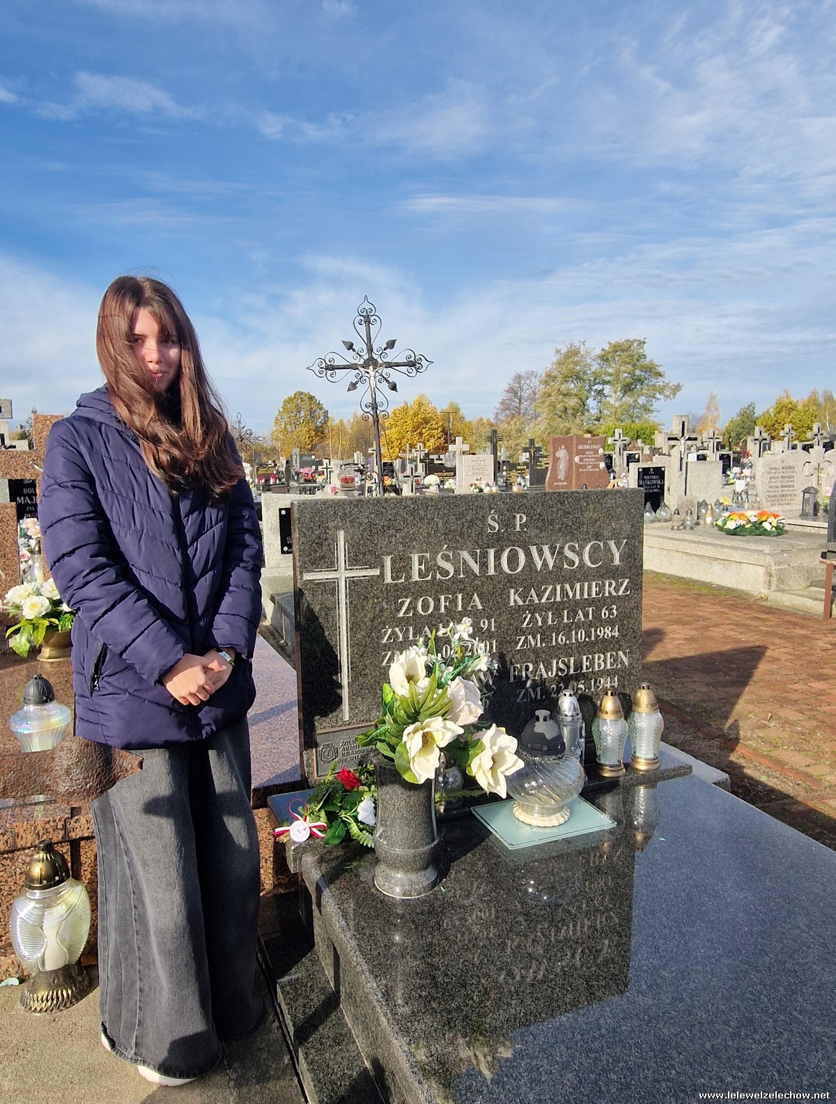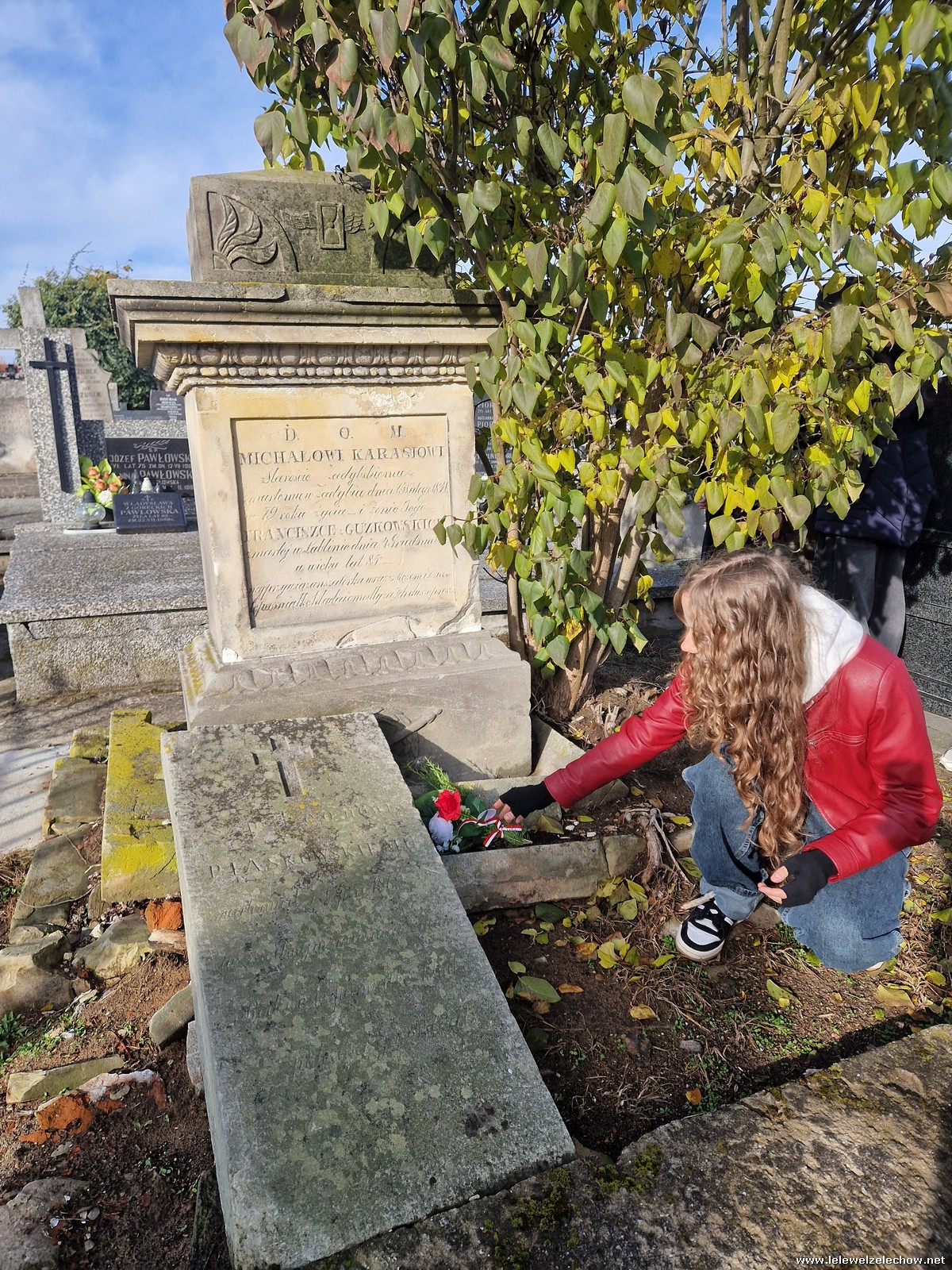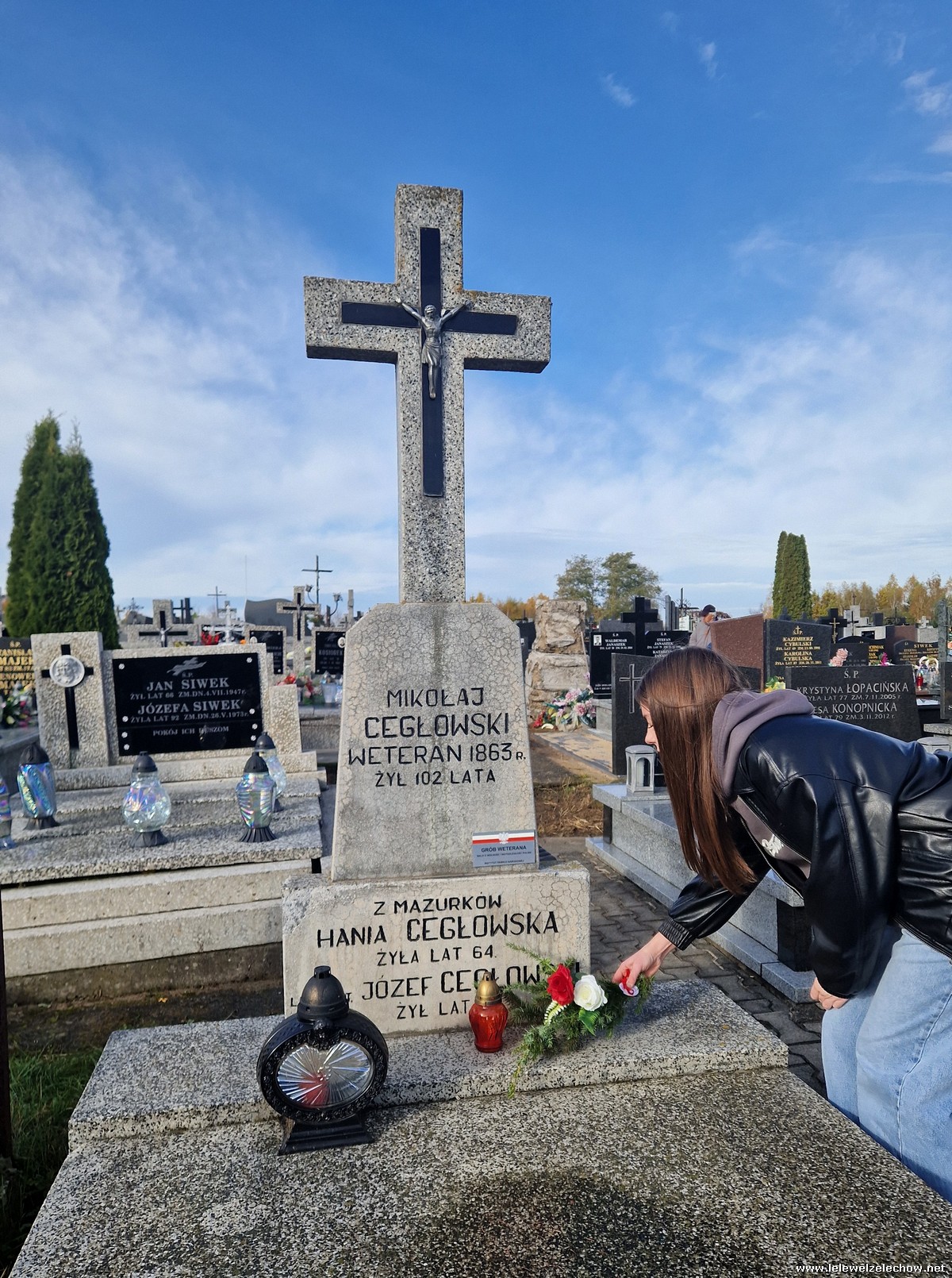 Uczniowie klasy 3c przeprowadzili zbiórkę pieniężną na zakup kwiatów i zniczy a następnie wykonali wiązanki i przygotowali znicze do postawienia na grobach osób zasłużonych dla naszej lokalnej społeczności oraz zabytkowych nagrobkach. 30 października uczniowie klasy 2b wraz z ks. Mariuszem Rompą udali się na cmentarz aby złożyć wiązanki. Znicze zapalą kadeci 1 listopada. Szkolną akcję koordynowała pani Urszula Kobielus.