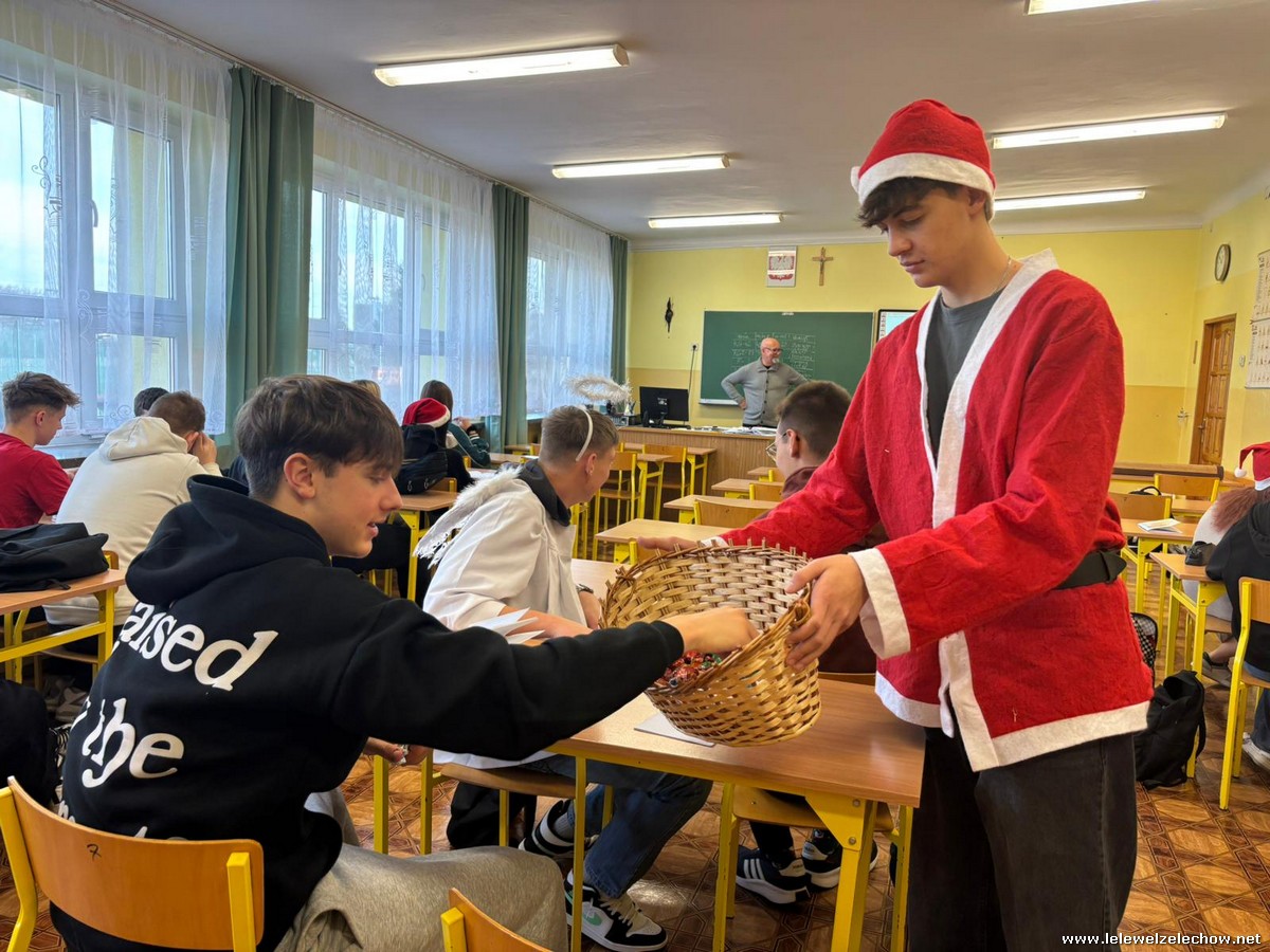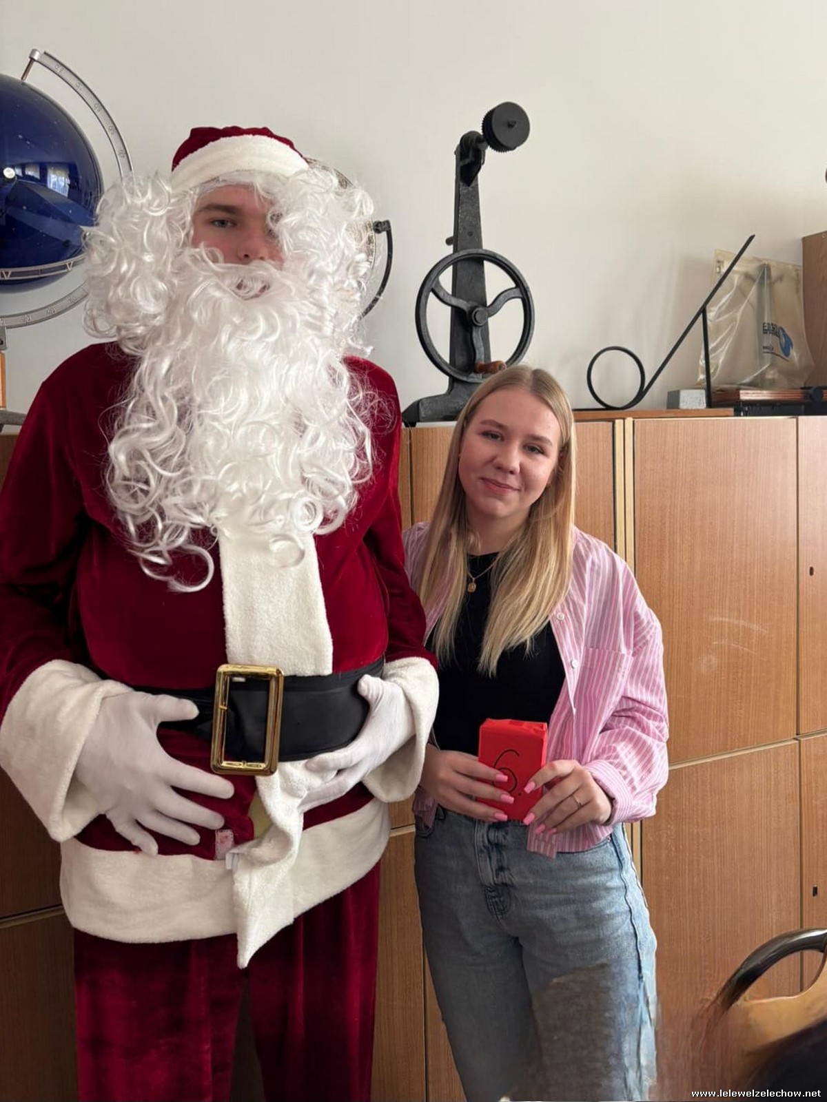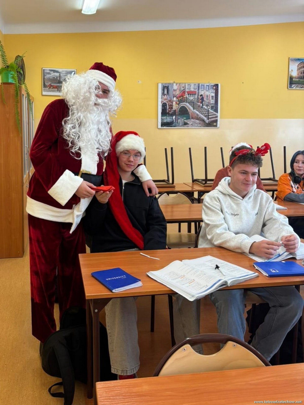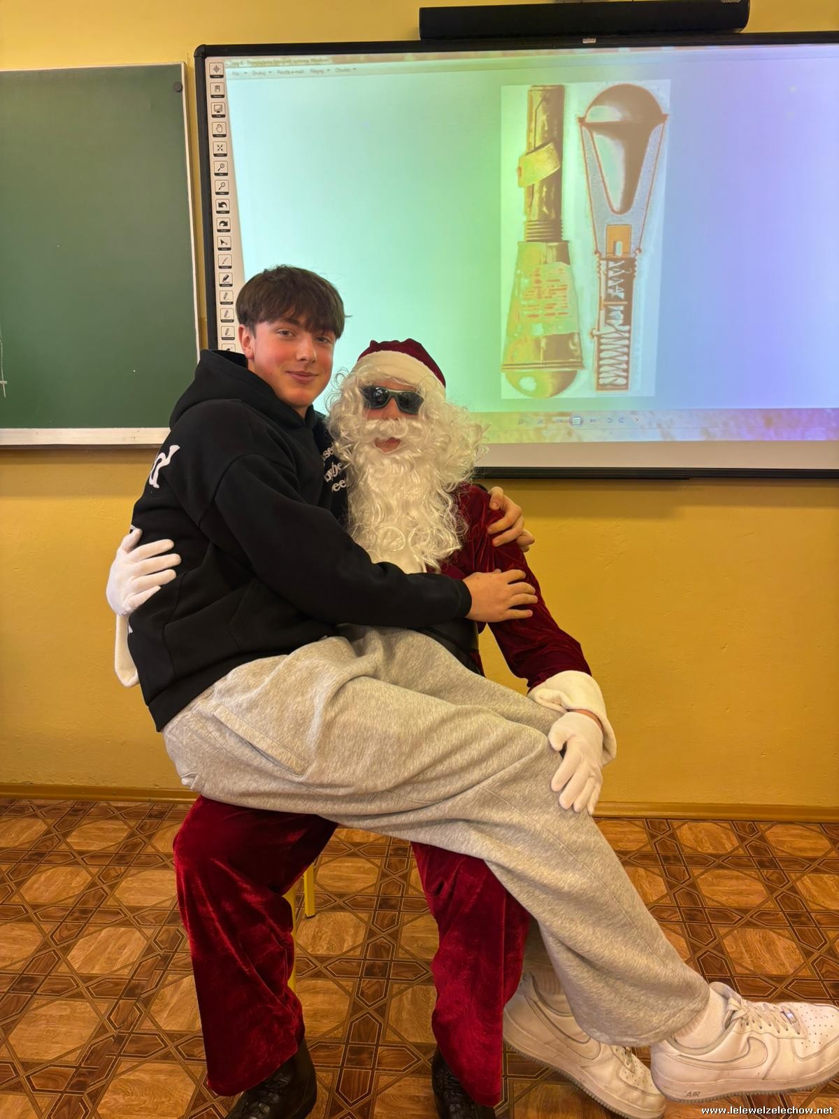 Jak co roku mikołajkową imprezę rozkręcał Samorząd Uczniowski Była świąteczna muzyka, moc dekoracji, ścianka do zdjęć i oczywiście Mikołaj, który odwiedził każdą klasę i poczęstował uczniów i nauczycieli słodyczami Ci mniej "grzeczni" dostawali rózgę...