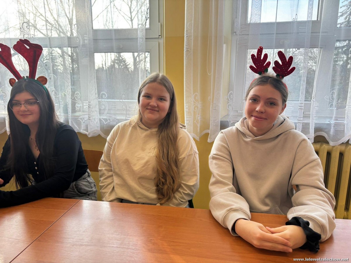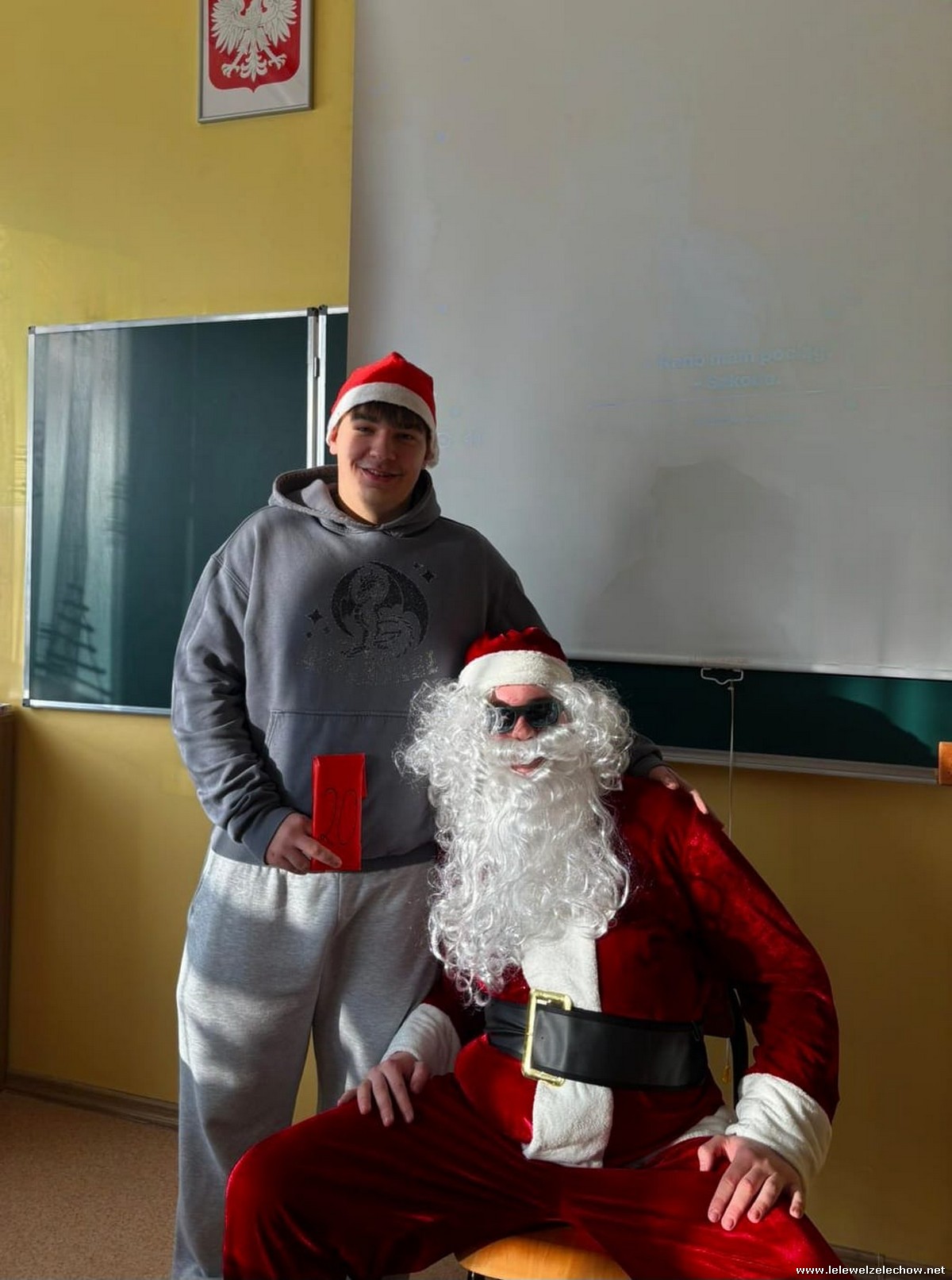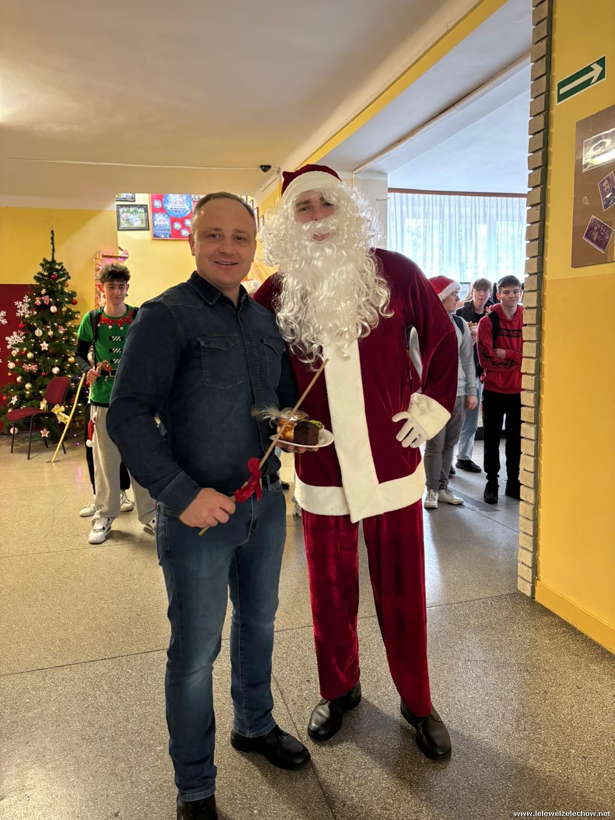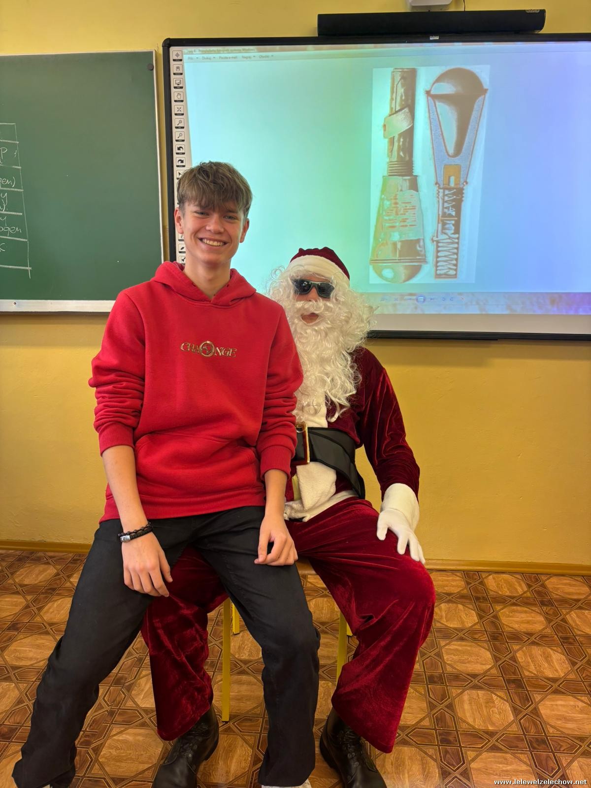 Jak co roku mikołajkową imprezę rozkręcał Samorząd Uczniowski Była świąteczna muzyka, moc dekoracji, ścianka do zdjęć i oczywiście Mikołaj, który odwiedził każdą klasę i poczęstował uczniów i nauczycieli słodyczami Ci mniej "grzeczni" dostawali rózgę...