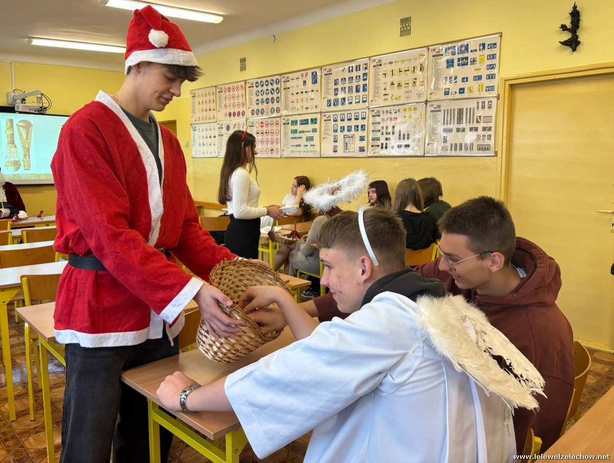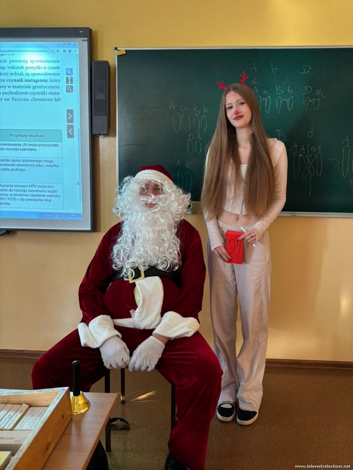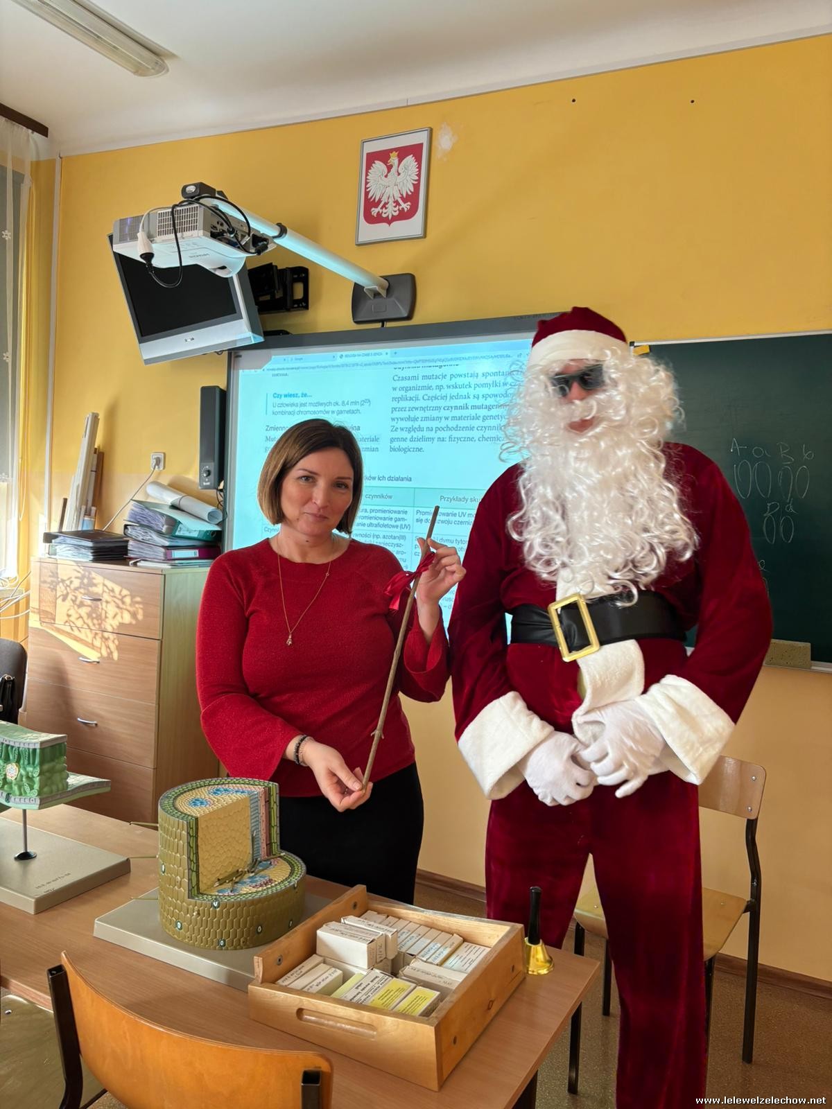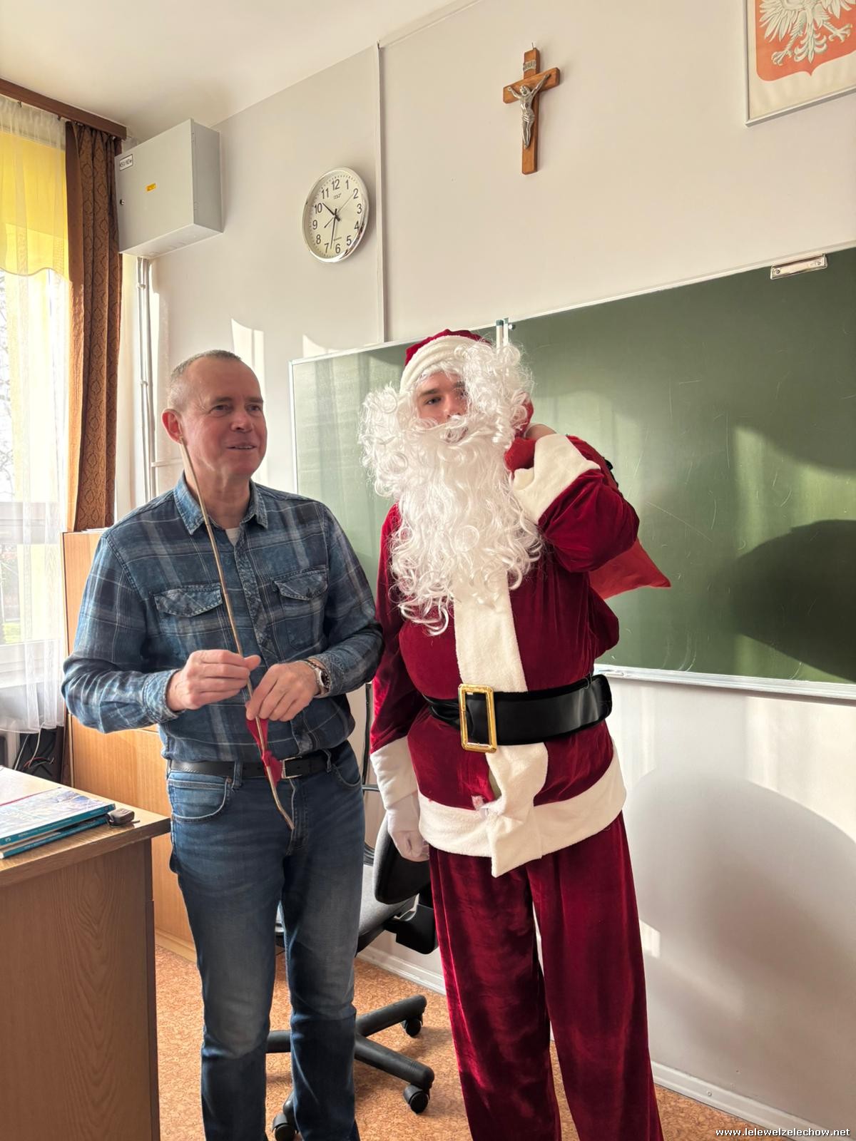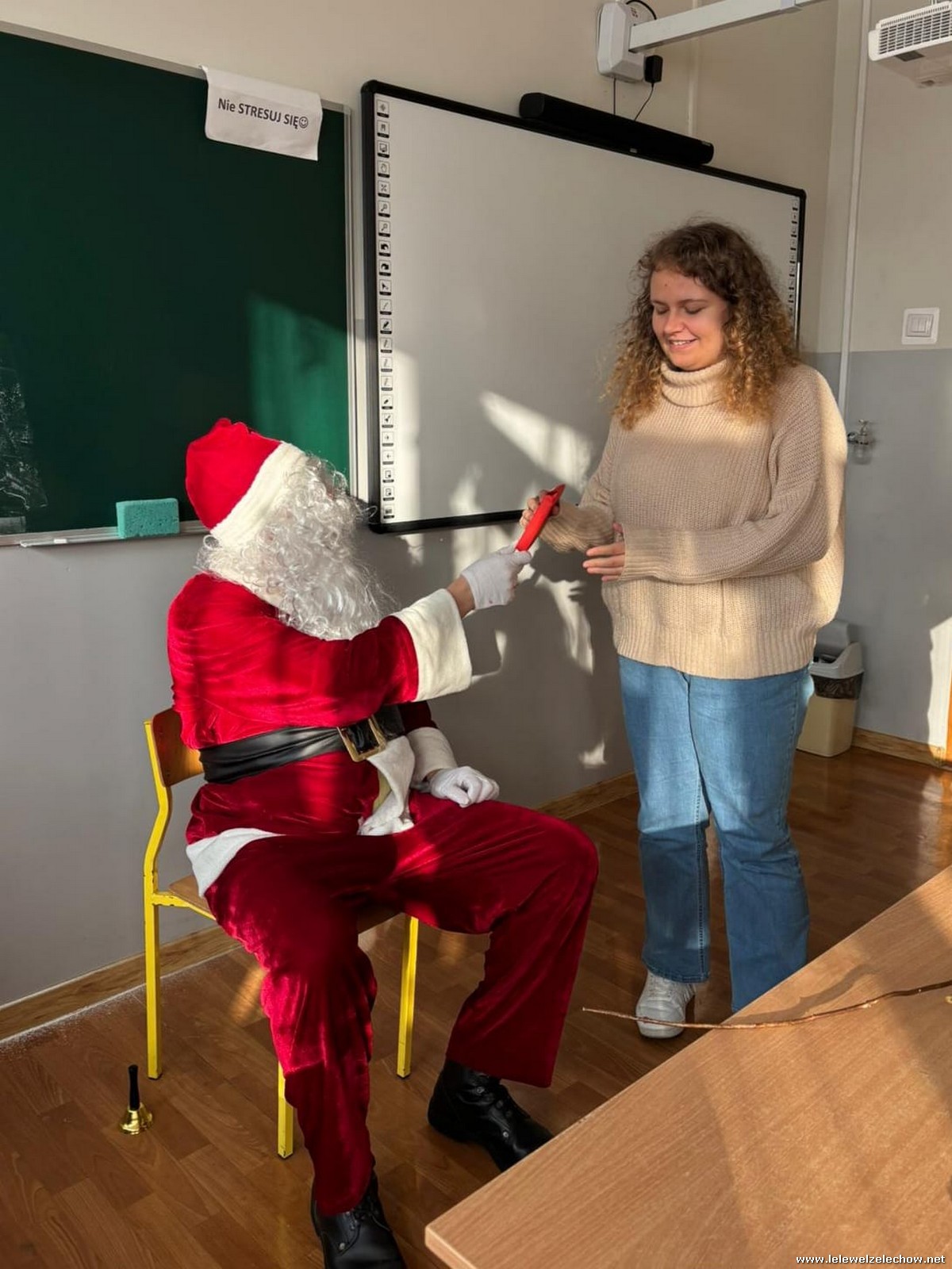 Jak co roku mikołajkową imprezę rozkręcał Samorząd Uczniowski Była świąteczna muzyka, moc dekoracji, ścianka do zdjęć i oczywiście Mikołaj, który odwiedził każdą klasę i poczęstował uczniów i nauczycieli słodyczami Ci mniej "grzeczni" dostawali rózgę...