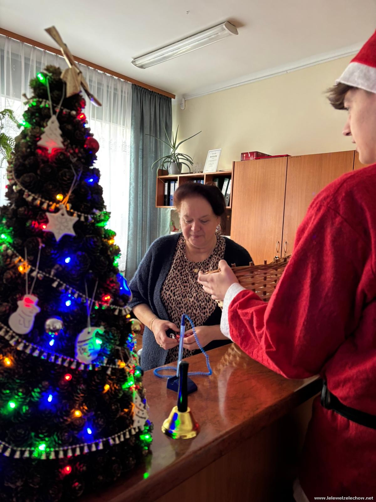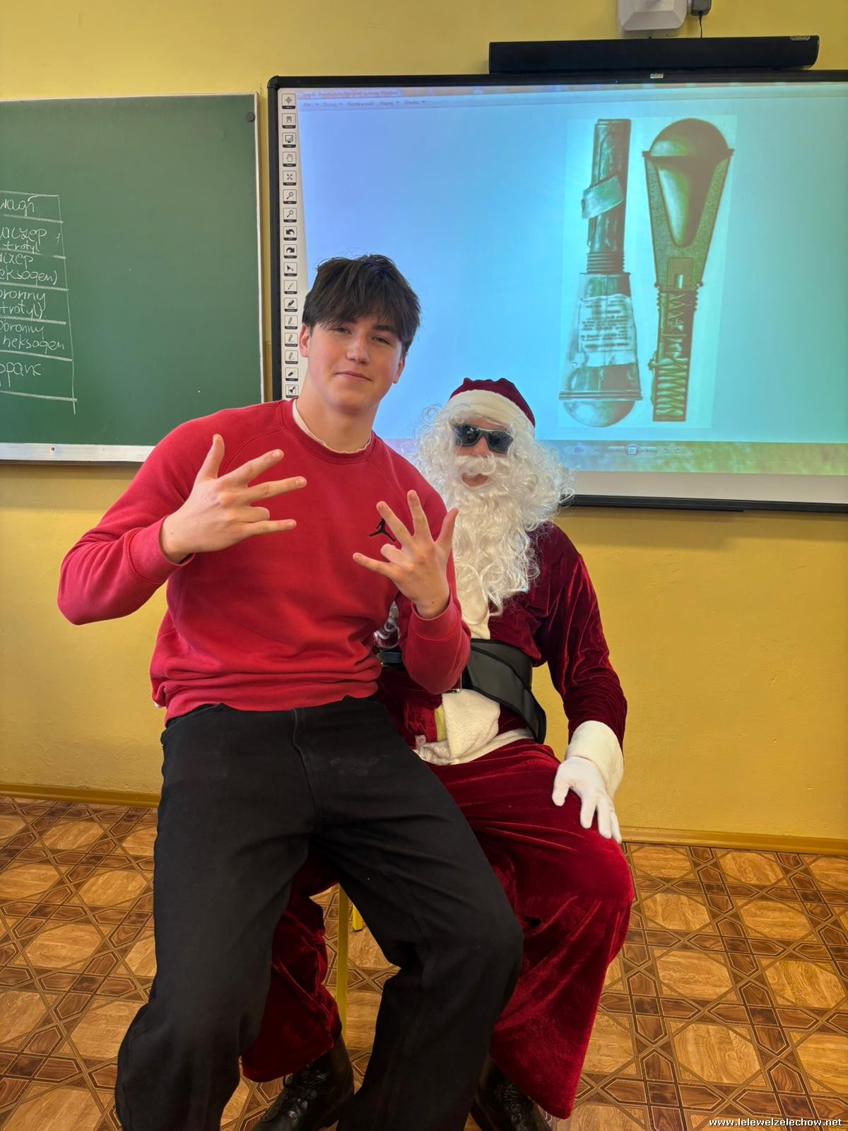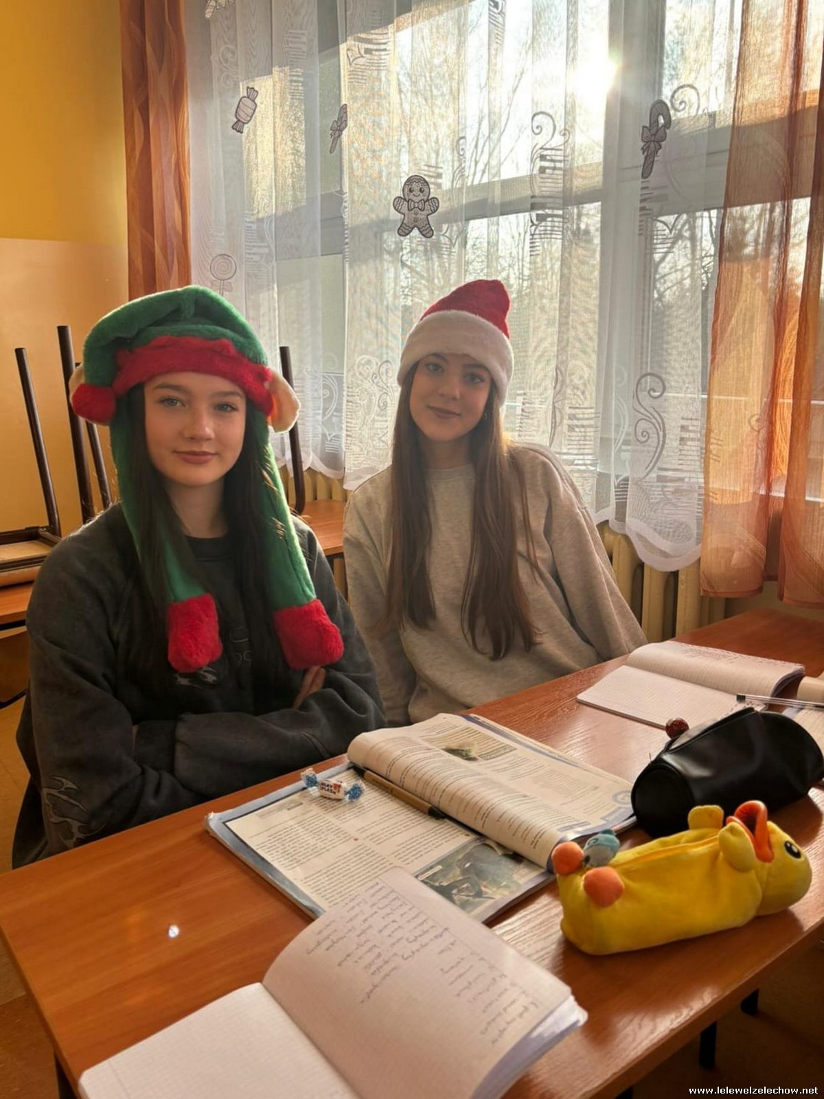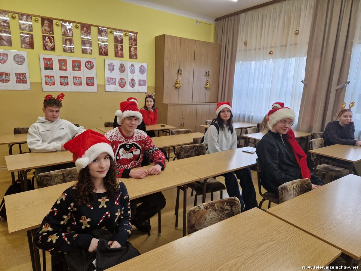 Jak co roku mikołajkową imprezę rozkręcał Samorząd Uczniowski Była świąteczna muzyka, moc dekoracji, ścianka do zdjęć i oczywiście Mikołaj, który odwiedził każdą klasę i poczęstował uczniów i nauczycieli słodyczami Ci mniej "grzeczni" dostawali rózgę...