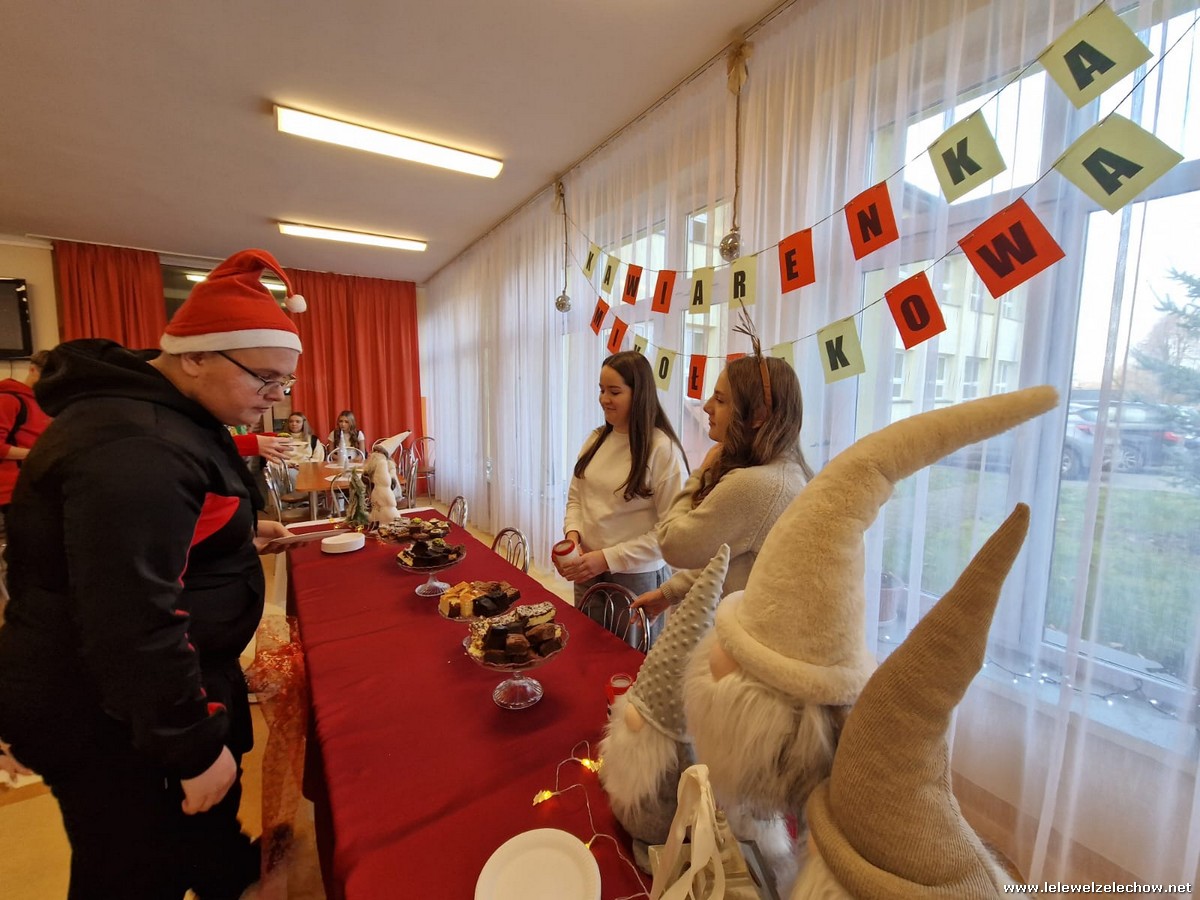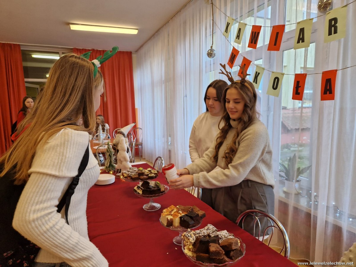 Wszyscy ubrani świątecznie mogli brać udział w losowaniu prezentów- niespodzianek i dostawali bon do "mikołajkowej kawiarenki"