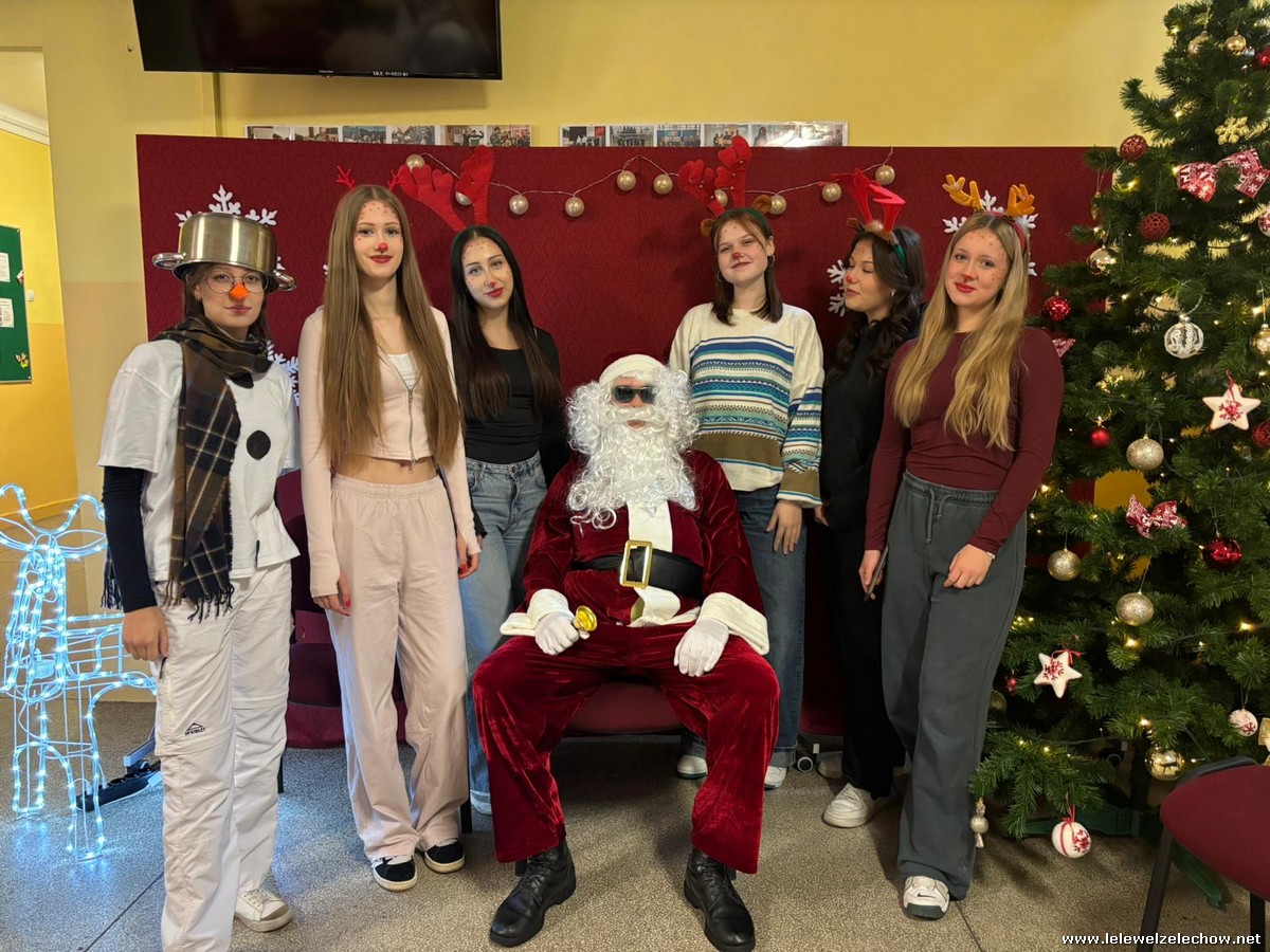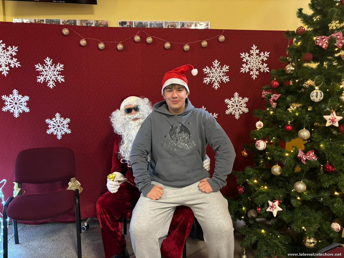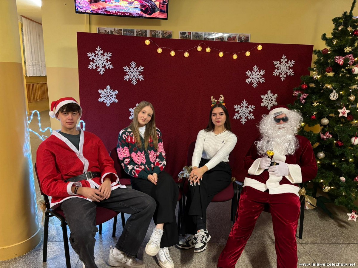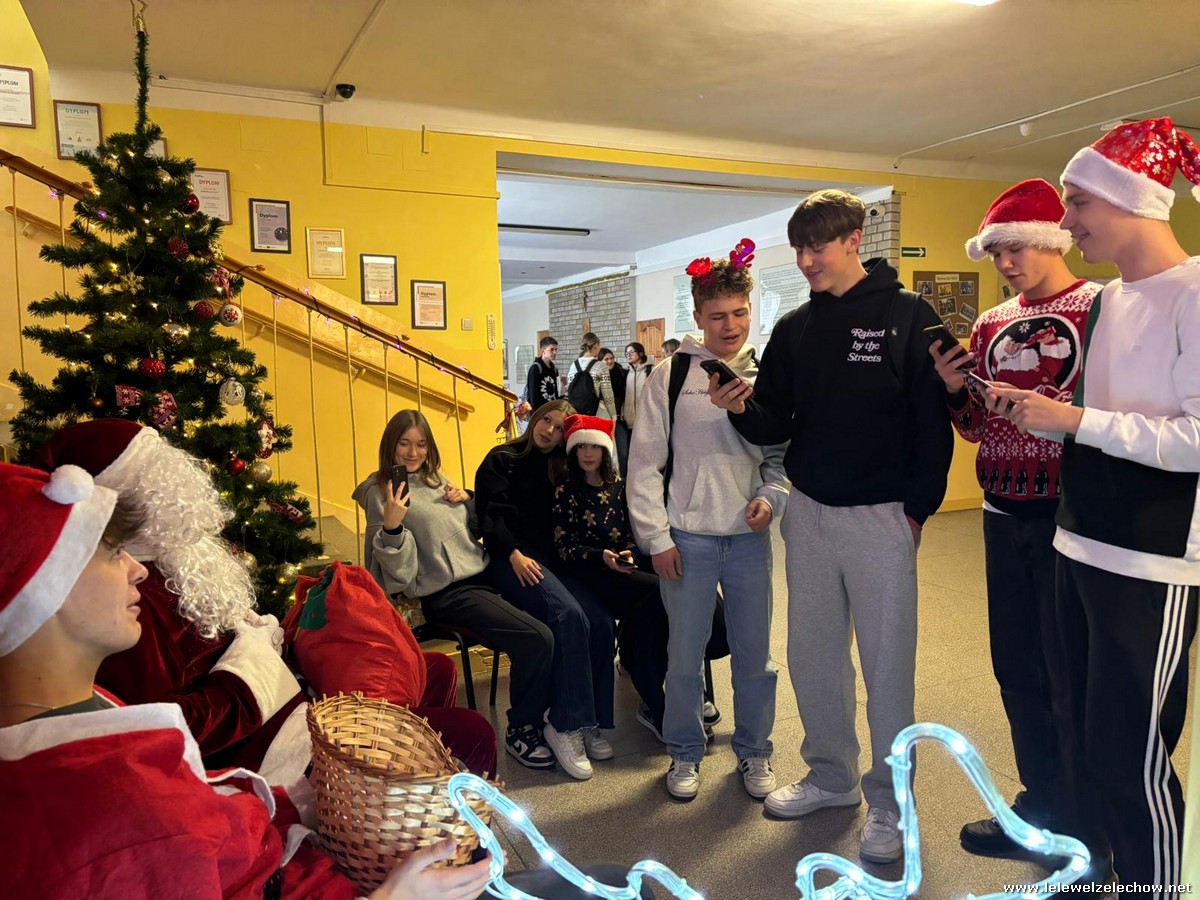 Jednak jeden był prawdziwy i to do niego garnęli się uczniowie i...kadra Równie oblegana była mikołajkowa ścianka Zapraszamy na fotorelację Mikołajki w LELEWELU cz.2