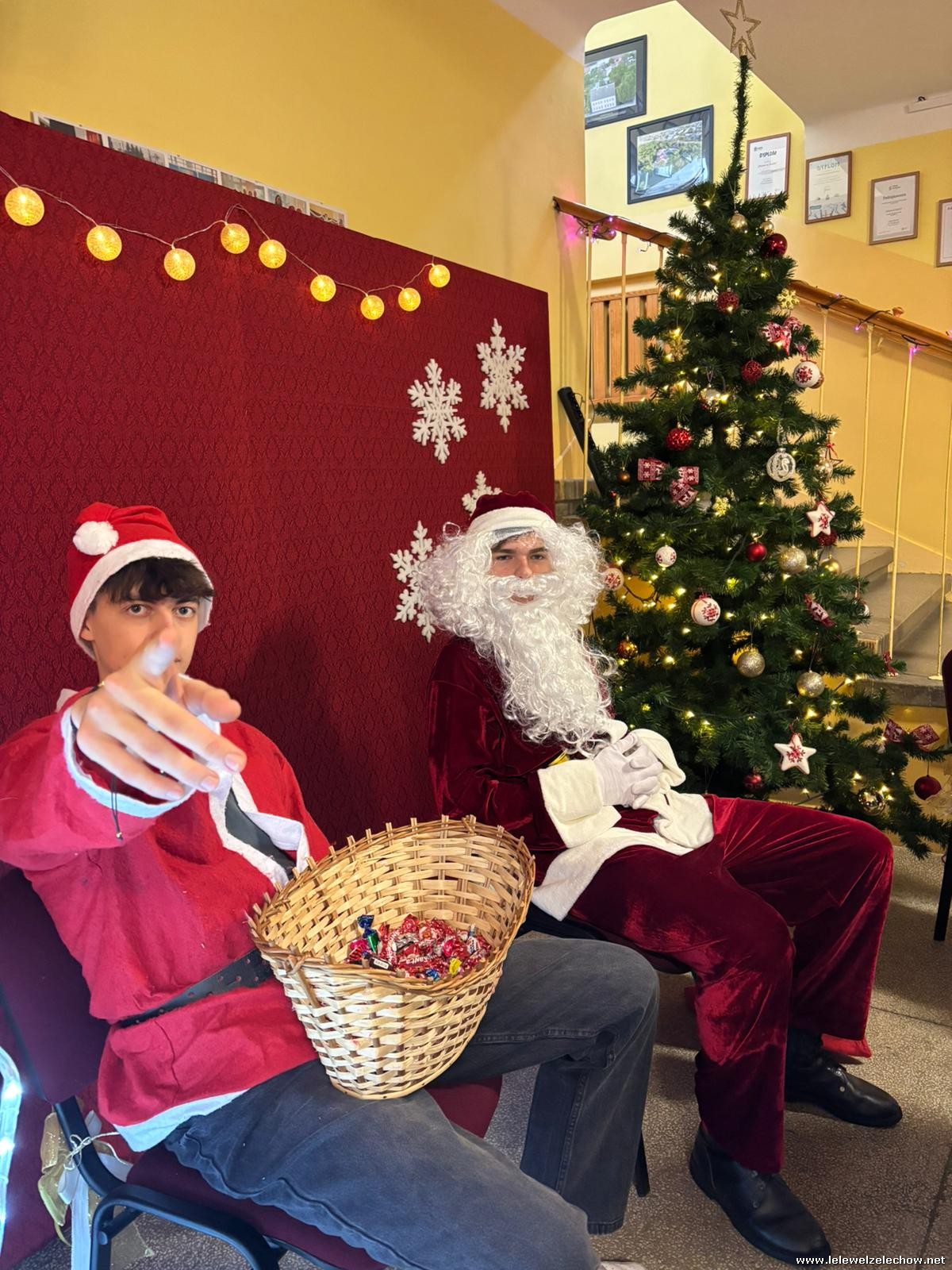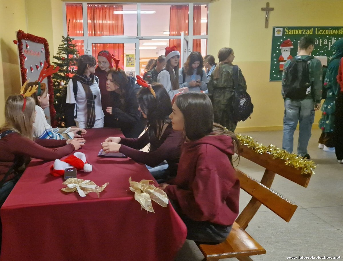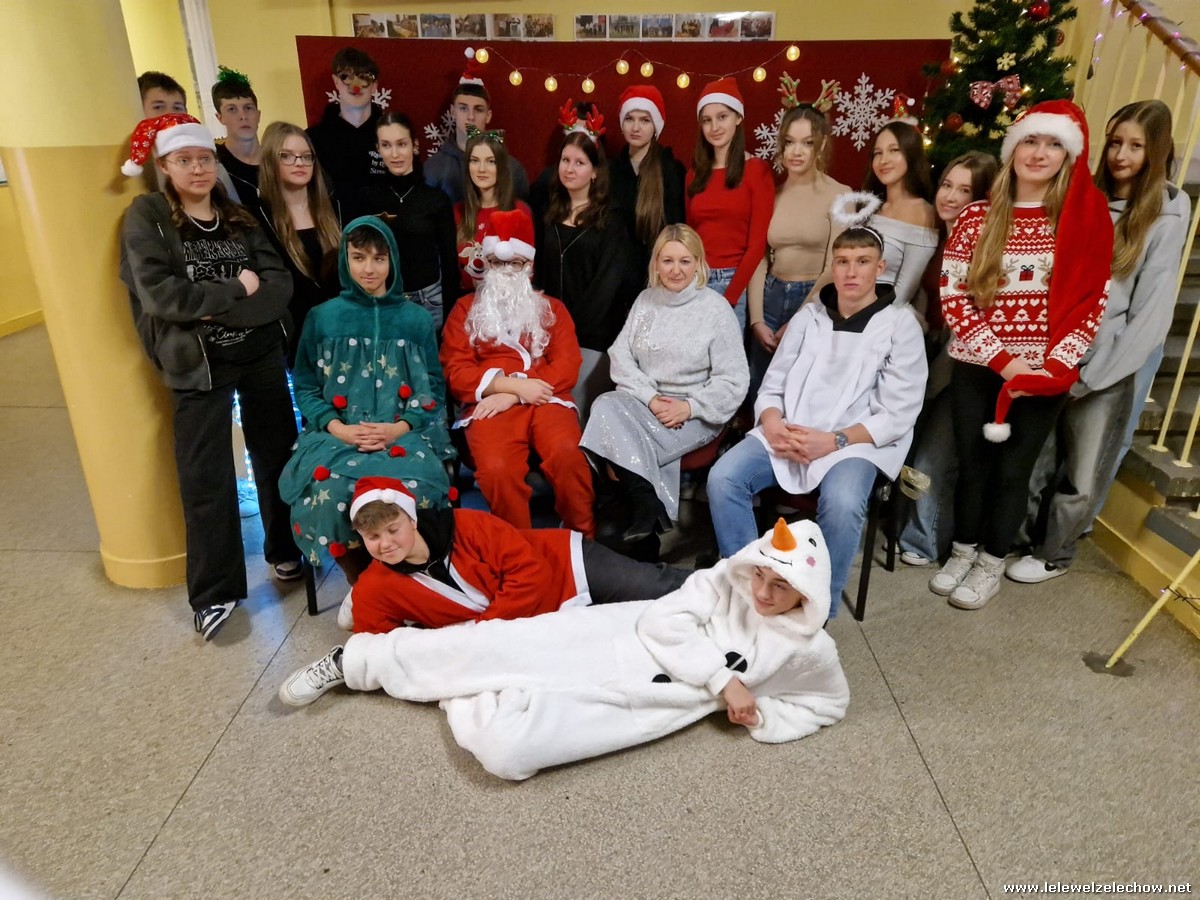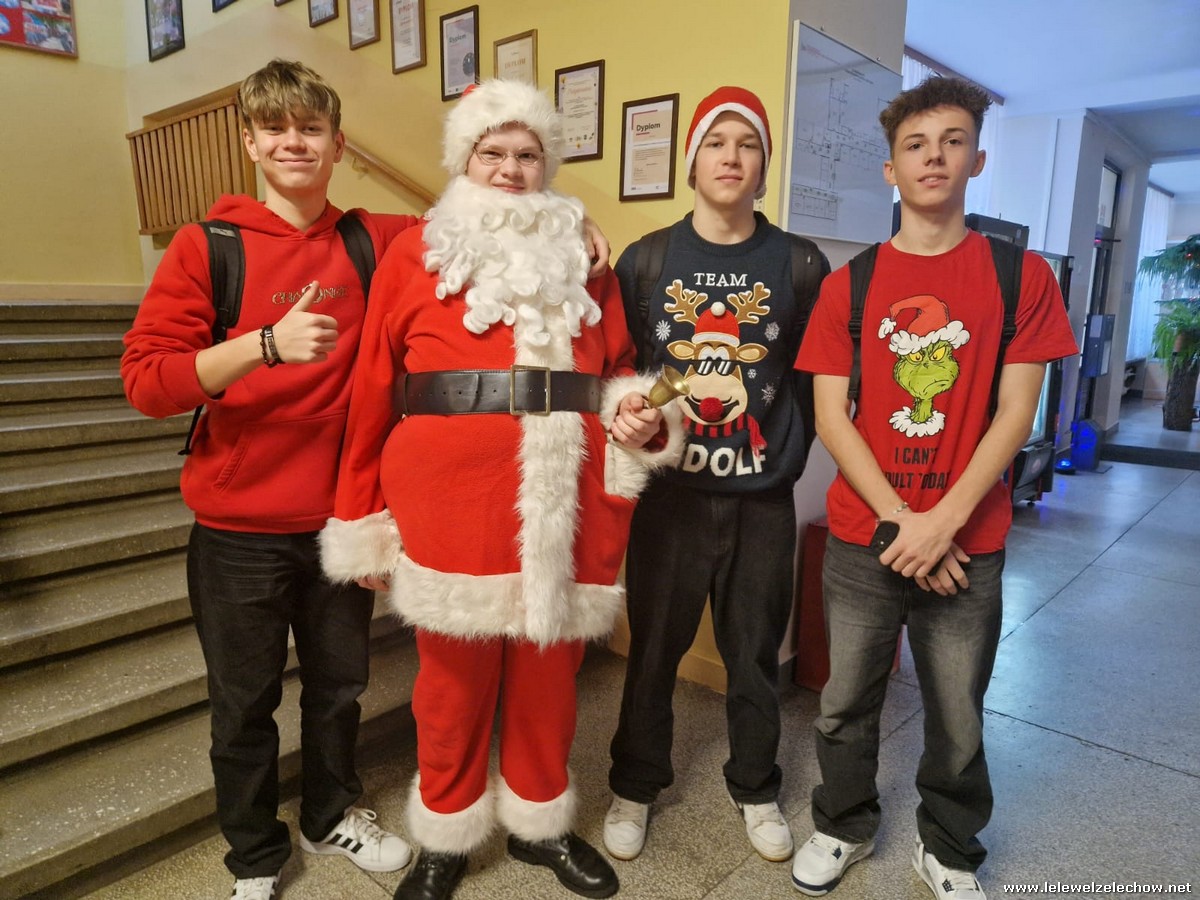 Jednak jeden był prawdziwy i to do niego garnęli się uczniowie i...kadra Równie oblegana była mikołajkowa ścianka Zapraszamy na fotorelację Mikołajki w LELEWELU cz.2