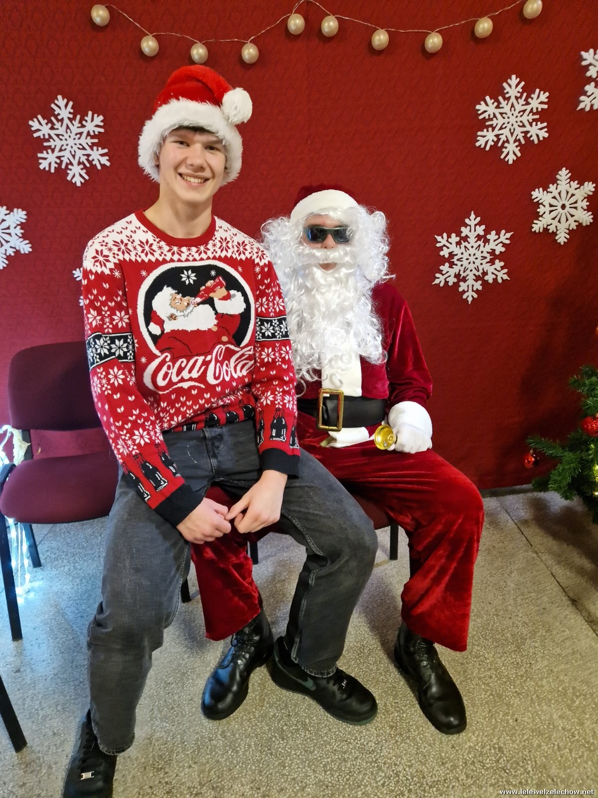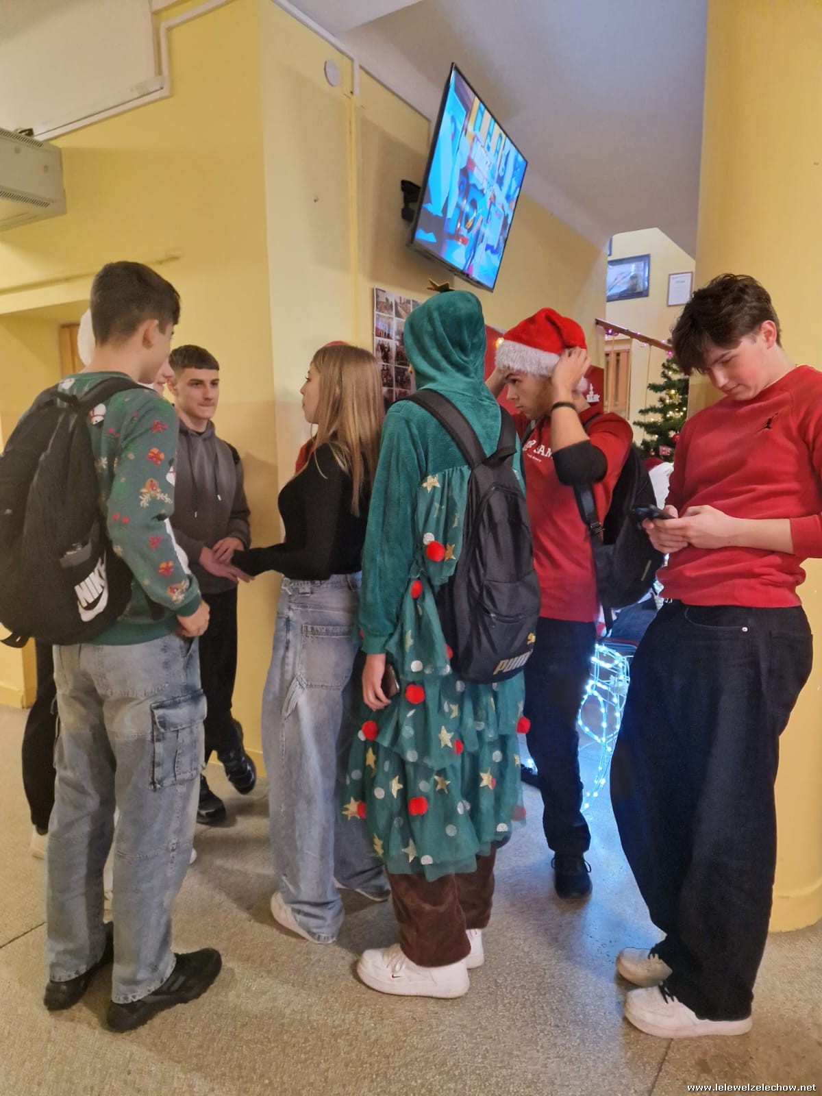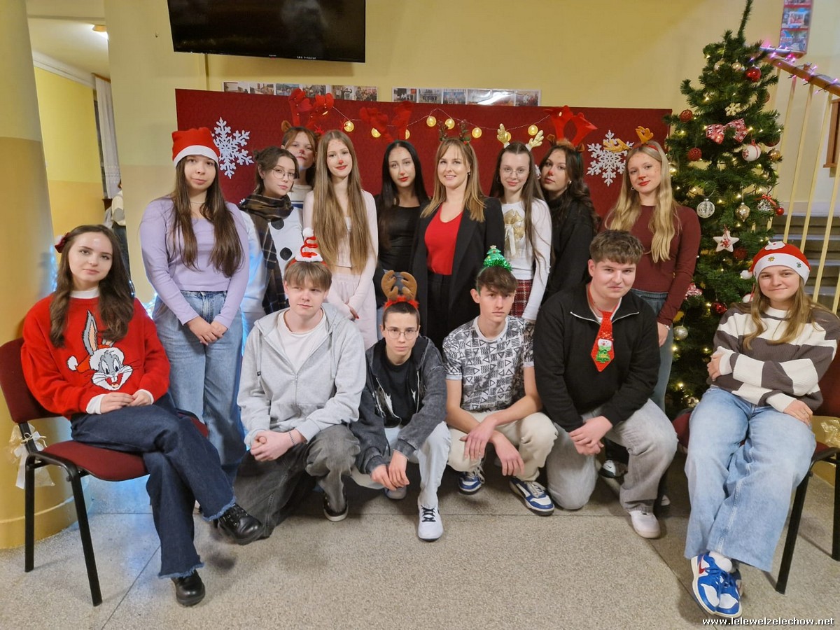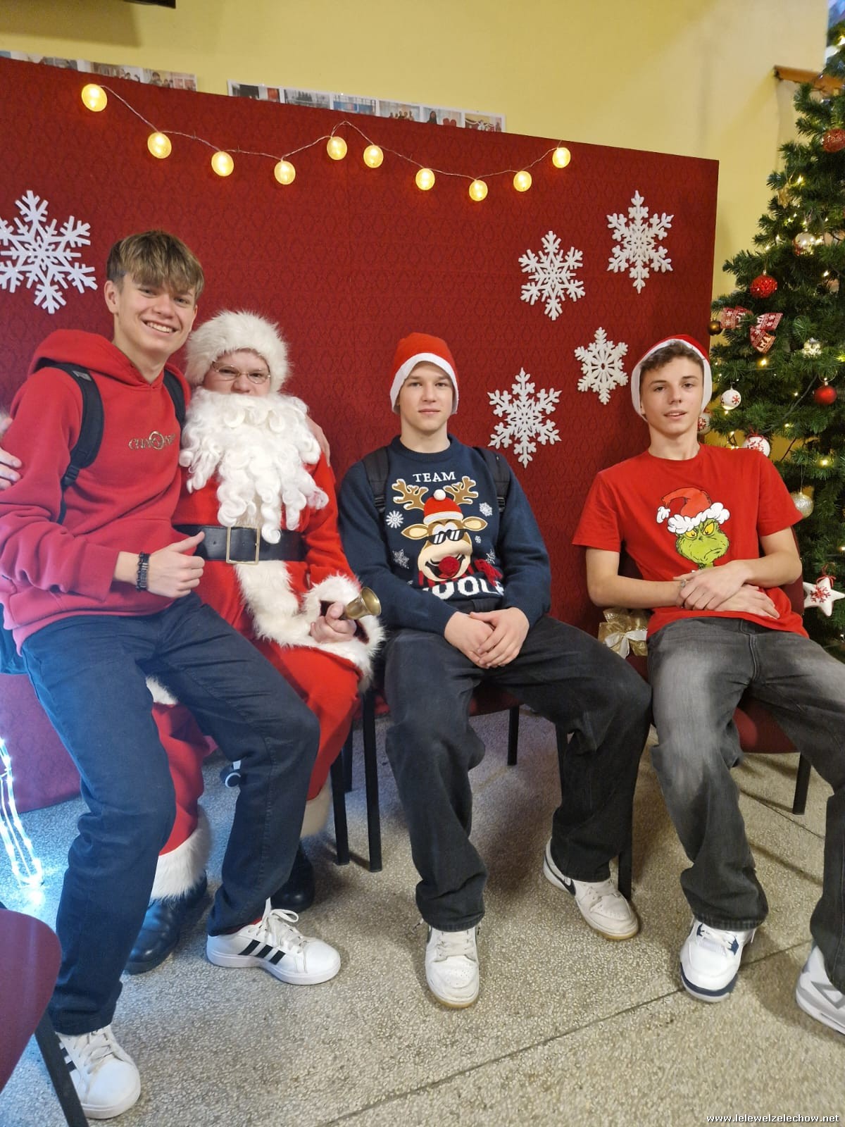 Jednak jeden był prawdziwy i to do niego garnęli się uczniowie i...kadra Równie oblegana była mikołajkowa ścianka Zapraszamy na fotorelację Mikołajki w LELEWELU cz.2