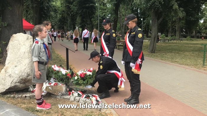 we mszy św. w intencji Ojczyzny w kościele parafialnym w Żelechowie, po czym przeszli w barwnym korowodzie do pobliskiego Parku Miejskiego, gdzie złożono wieńce pod pomnikami Romualda Traugutta i Ludwika Pudły.