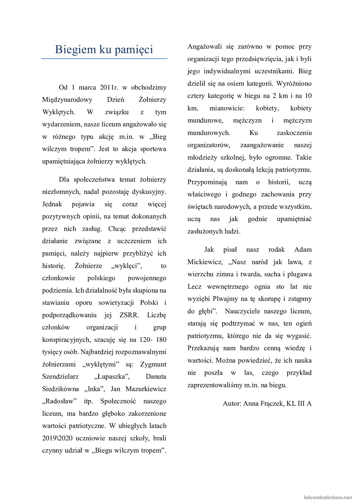 Wszystkie działania związane z upamiętnieniem Żołnierzy Wyklętych można zobaczyć na szkolnym facebooku: @samorzadlelewel