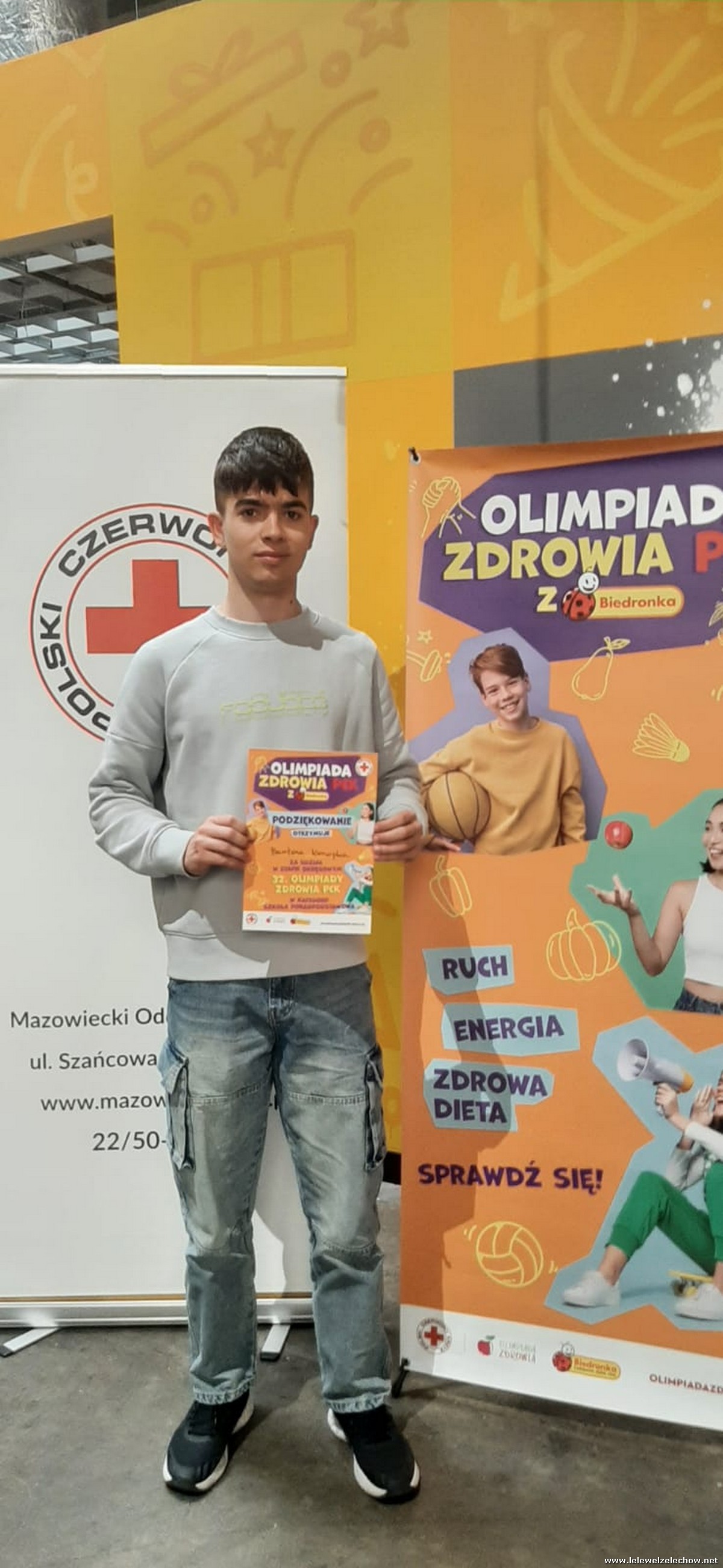 3 kwietnia uczeń klasy IIIB Bartosz Konopka wziął udział w etapie okręgowym XXXII edycji Ogólnopolskiej Olimpiady Zdrowia PCK z Biedronką. W ramach olimpiady przygotował akcję prozdrowotną, której przewodnim tematem były: Alternatywne sposoby żywienia oraz sport w życiu dzieci i młodzieży, a także napisał test. Gratulujemy Bartkowi i życzymy dalszych sukcesów.