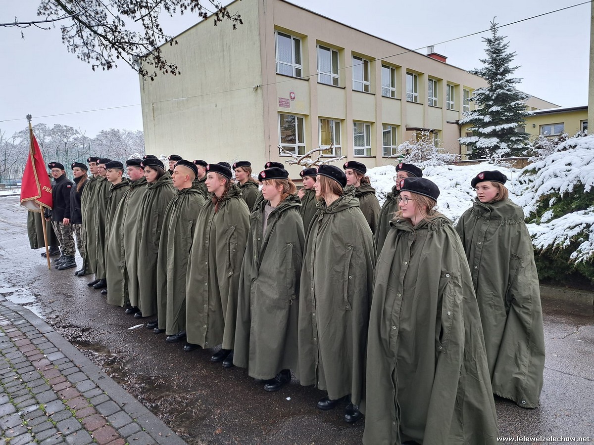 W zimowej scenerii nasi mundurowi z klas I oddali cześć powstańcom styczniowym. Kadeci złożyli kwiaty i zapalili znicze na grobach osób związanych z wydarzeniami roku 1863 ziemi żelechowskiej. Na cmentarzu odczytano również Apel pamięci. Następnie pod pomnikiem Romualda Traugutta uczniowie wraz z opiekunami złożyli kwiaty.