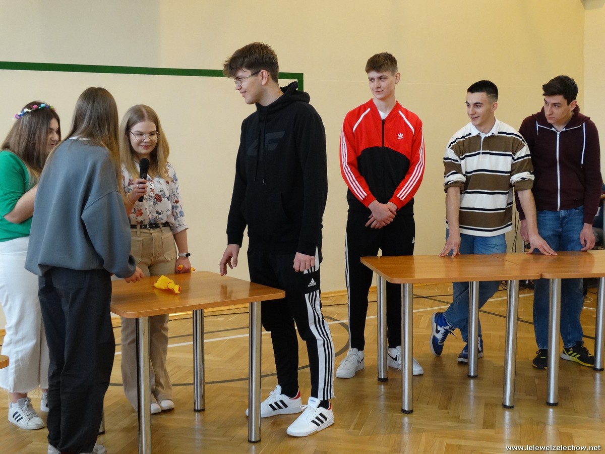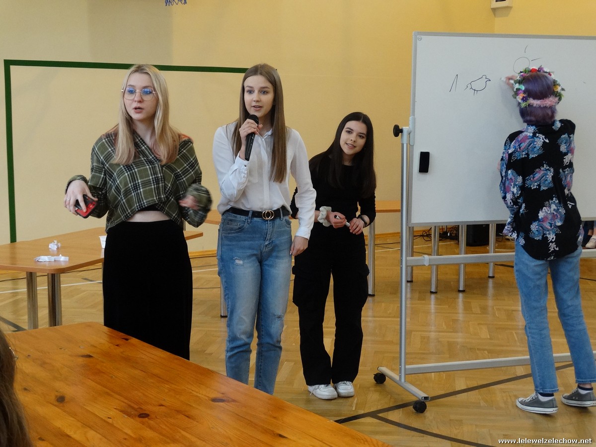 Uczniowie klas 2a, 2b i 3b zorganizowali dla pozostałych licealistów wiosenne kalambury, konkurs ,,Jaka to melodia” oraz familiadę. Znane i lubiane turnieje przysporzyły wiele emocji uczestnikom oraz zapewniły dobrą zabawę publiczności. Wybrano również najpiękniejszą Panią Wiosnę a wiosennie ubrane uczennice zaprezentowały swoje stroje. O innych atrakcjach tego dnia - już wkrótce!