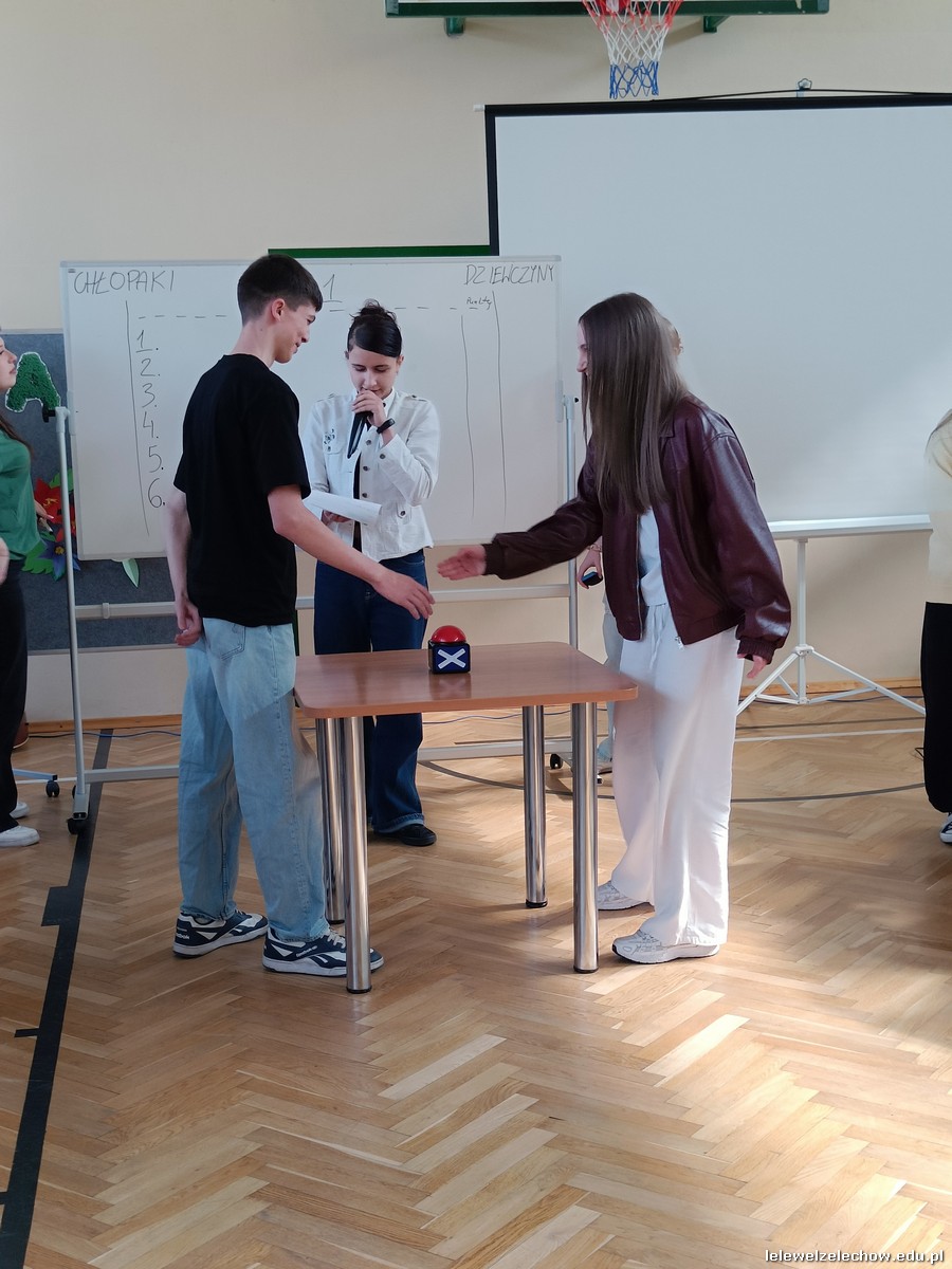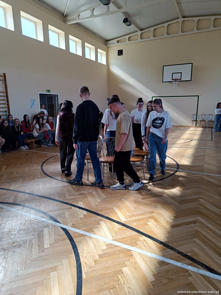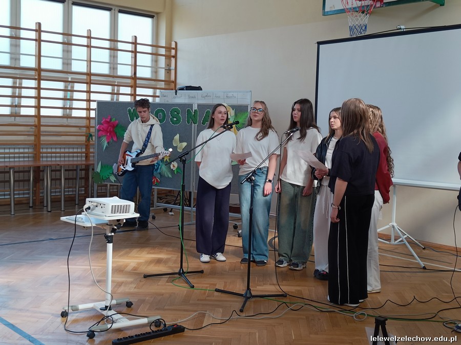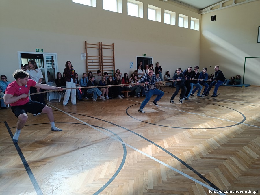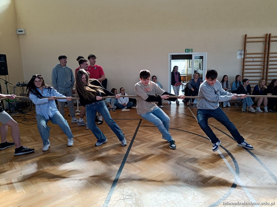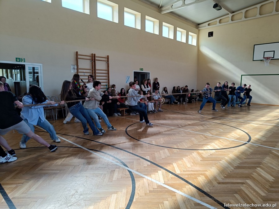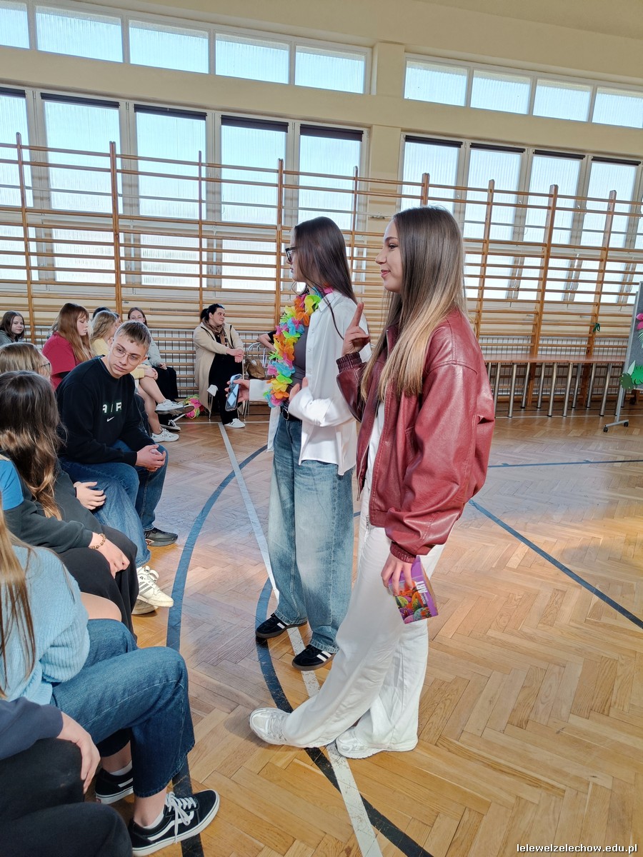 Dzisiaj świętowaliśmy w Lelewelu początek wiosny. Klasy włożyły kolorowe stroje, zaś Samorząd Uczniowski z opiekunami przygotował kilka wesołych konkurencji, aby to uczcić. Uczniowie zmierzyli się w wiosennym kahoocie, przeciąganiu liny, grze w muzyczne krzesła, znajomości piosenek polsko- i anglojęzycznych, a nawet w zawodach artystycznych- przygotowując wiosenne nakrycie głowy. Odbyła się też Familiada, w której zagrały drużyna dziewcząt i chłopców.