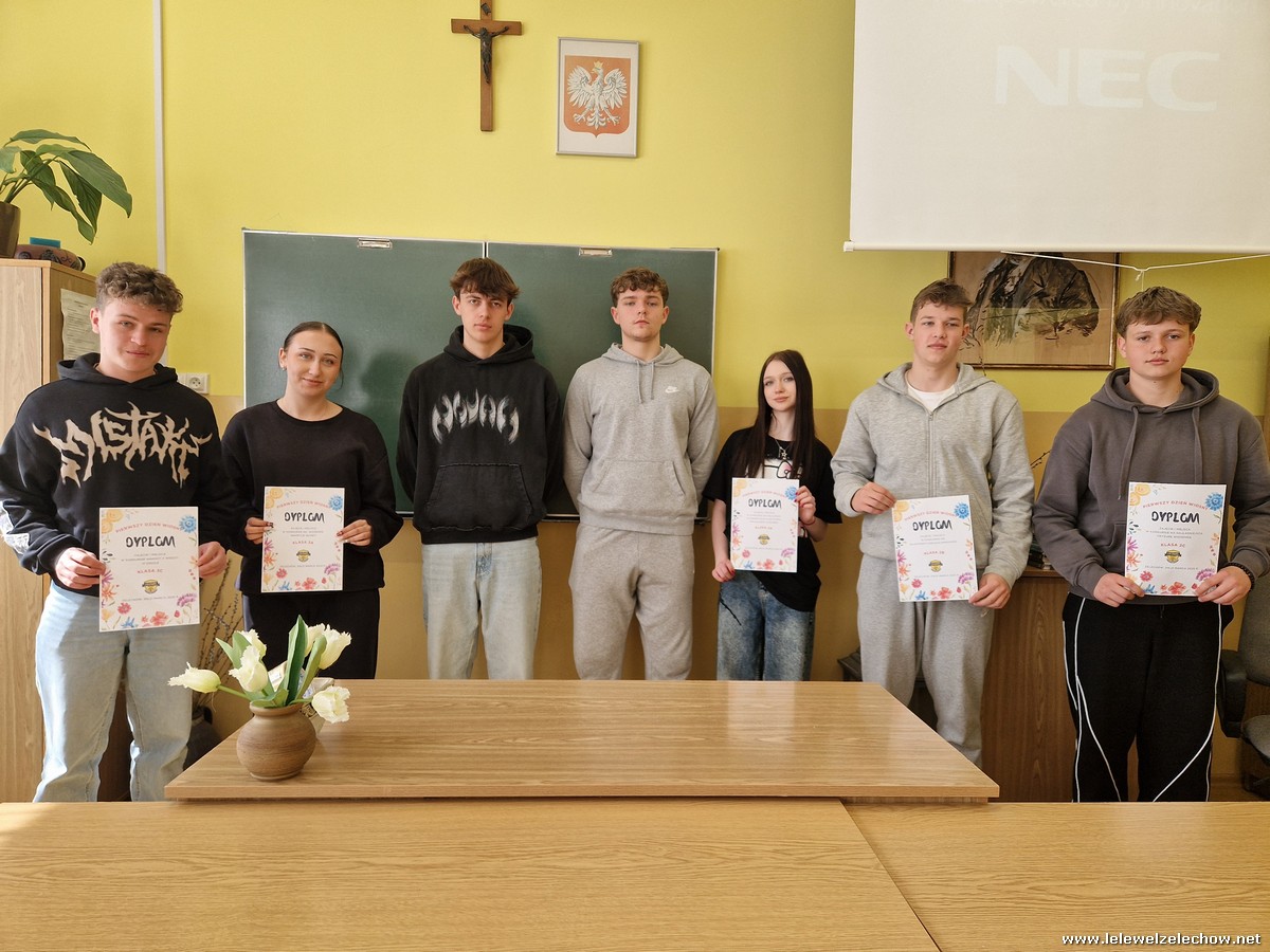 Podczas spotkania podsumowującego Dzień Wiosny Samorząd Uczniowski podziękował uczestniczącym w nim klasom za wspólna zabawę i wręczył pamiątkowe dyplomy. Wyróżnił też pamiątkowymi dyplomami zwycięzców poszczególnych konkursów.