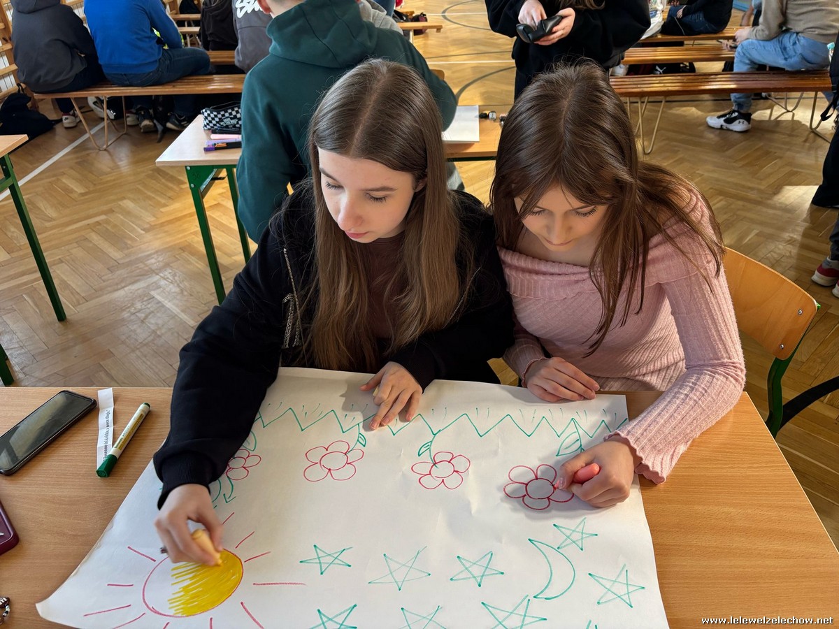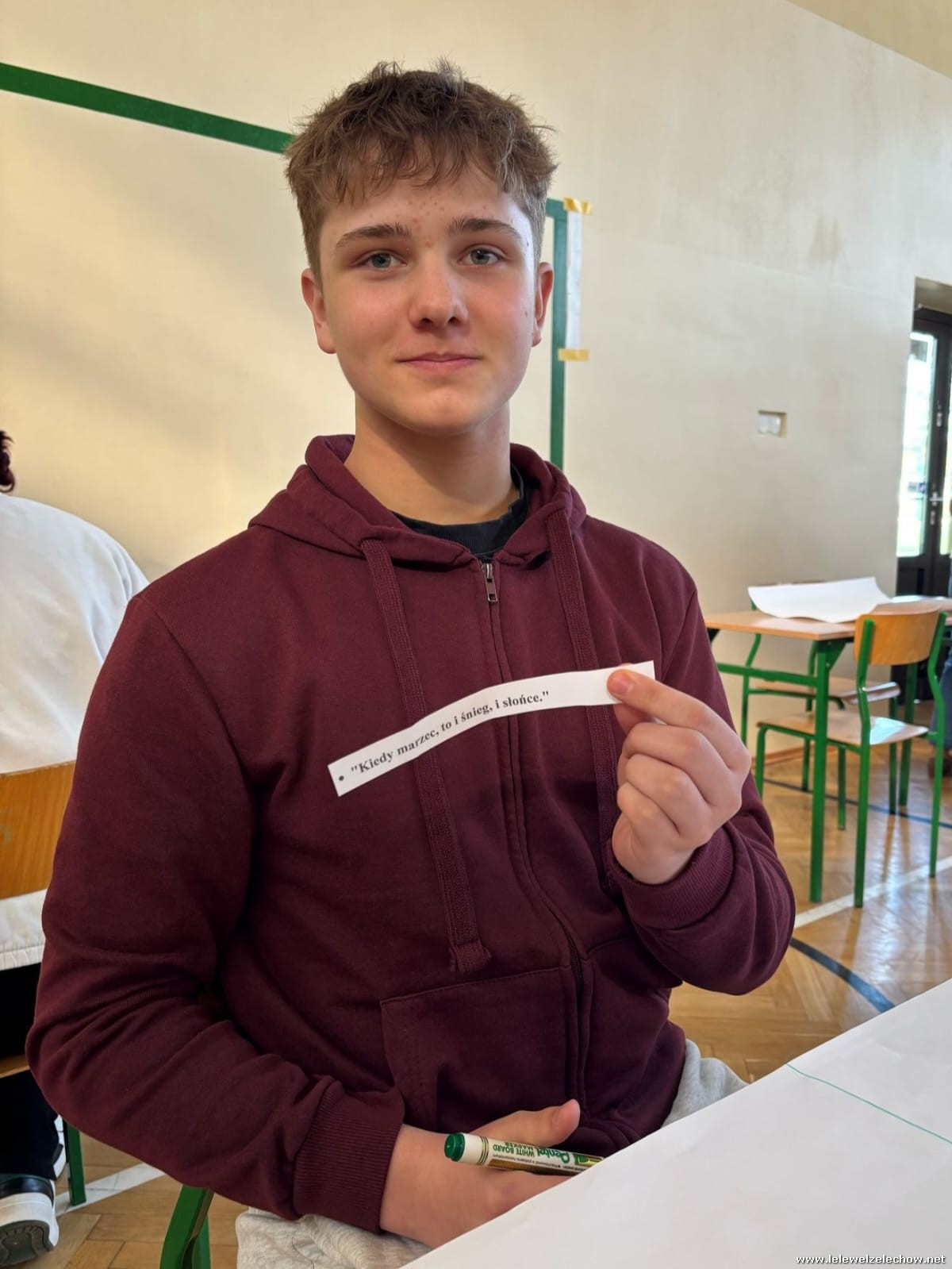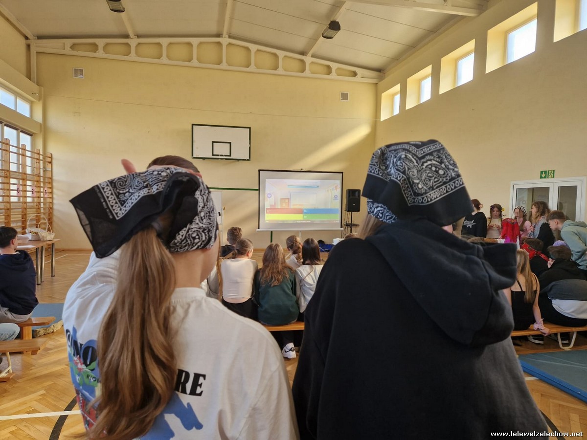 Niespodzianką było odnajdywanie ukrytych na terenie szkoły ,,żetonów,, które szczęśliwcy wymienili na dodatkowe nieprzygotowania oferowane przez nauczycieli
