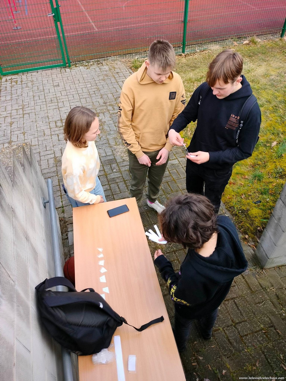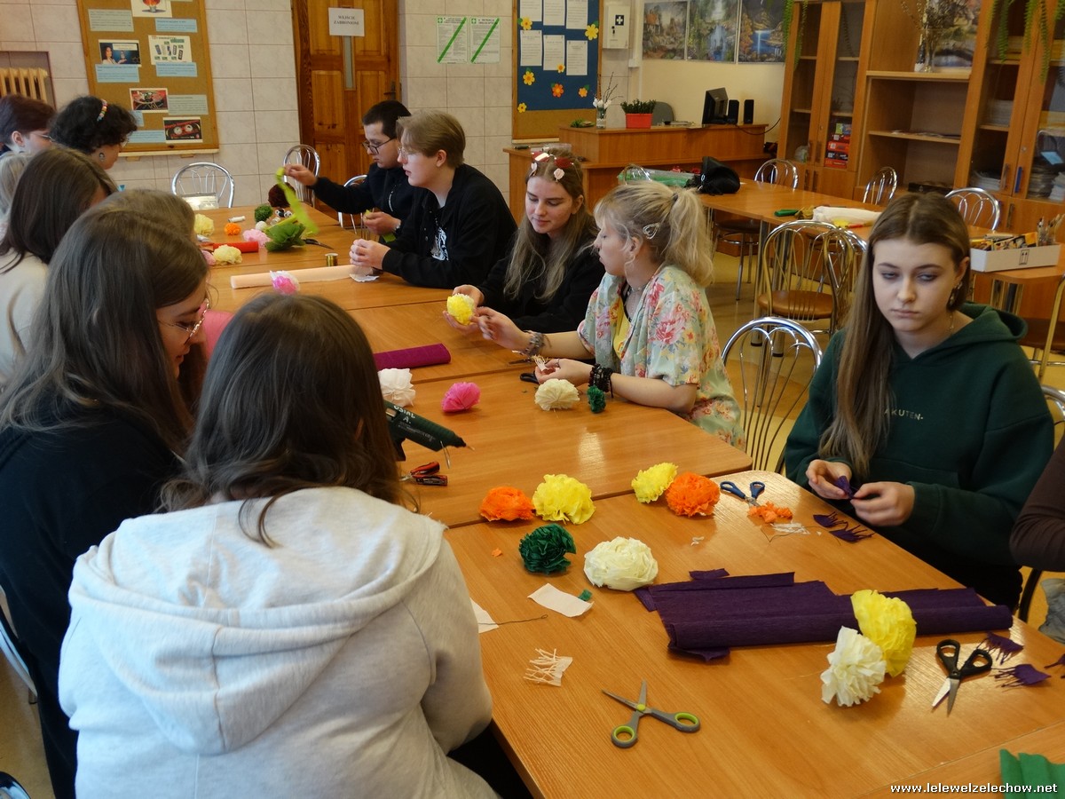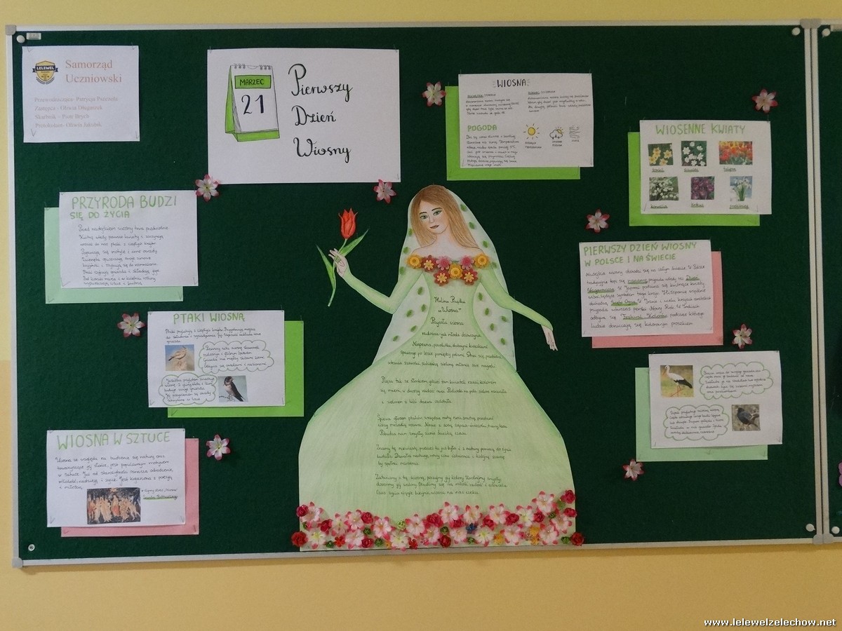 Pierwszy Dzień Wiosny w naszej szkole to także nietypowe zajęcia. Nauczyciele oraz uczniowie organizowali różne aktywności, odmienne od tych realizowanych na codzień w ramach standardowych lekcji. W świetlicy szkolnej odbywały się warsztaty bibułkarskie. Uczniowie tworzyli piękne wiosenne kwiaty i palmy. Część osób skusiła się na warsztaty malarskie, które poprowadziła uczennica klasy 3b - Amelia. Na zajęciach z historii uczniowie klasy 1a przypisywali własne teksty znanym z dziejów najnowszych postaciom a uczennice klasy 2b tworzyły pierwsze strony ,,brukowej” prasy poświęcone bohaterom nowożytności. W szkole i na terenie przyszkolnym odbywały się bardzo emocjonujące podchody, które zorganizowała i przeprowadziła dla pozostałych uczniów klasa 1a. Zwieńczeniem Dnia Wiosny były rozgrywki w piłkę nożną chłopców na boisku “Orlik”.