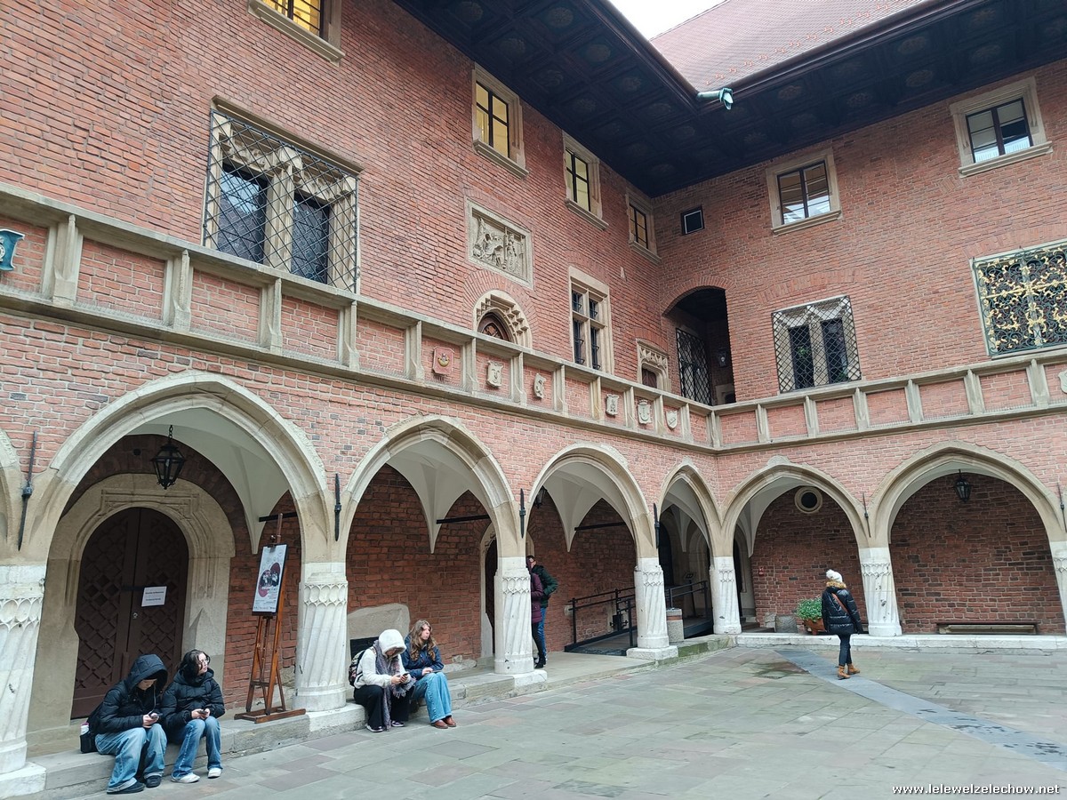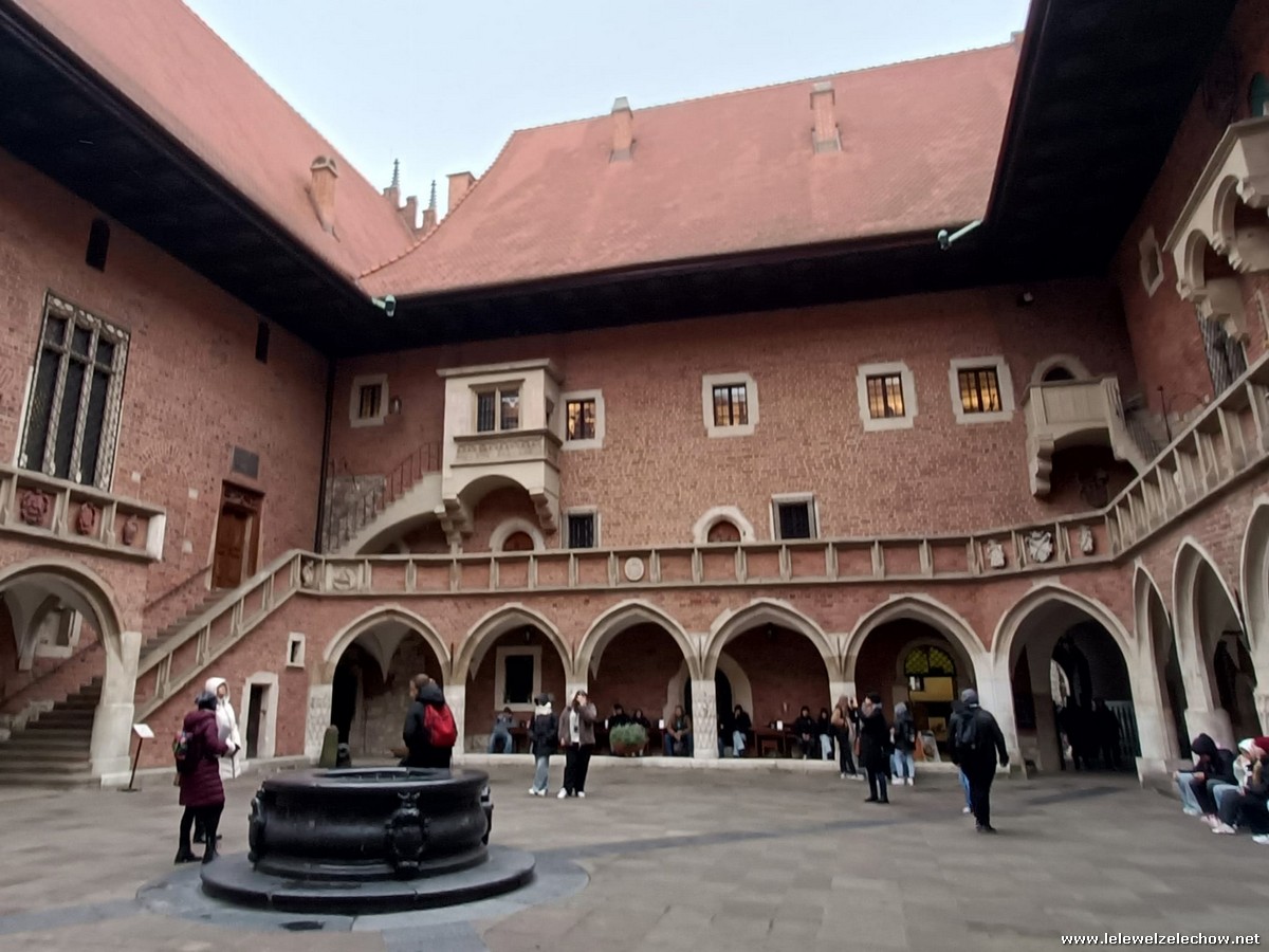 Głównym punktem dzisiejszej wycieczki był Wawel, którego dzieje są odzwierciedleniem historii naszego kraju. Rozpoczęliśmy odwiedzinami w Smoczej Jamie. Smok Wawelski (nadal w dobrej formie) kilka razy zionął ogniem na nasz widok. Następnie zachwycaliśmy się renesansowym dziedzińcem arkadowym Zamku Królewskiego oraz jego wnętrzem . Spacerując po komnatach, dowiedzieliśmy się, jak zorganizowane było tu życie za czasów kolejnych królów, na czym jadano, gdzie mieszkała służba, jak przygotowano salę na przyjazd Stanisława Augusta Poniatowskiego, gdy miał odwiedzić Kraków. Naszą uwagę zwróciły wiszące na ścianach ponad półwieczne arrasy wyszywane złotą nicią oraz ogromne chorągwie zdobyte przez Jana Sobieskiego w walce z Turkami. Następnie spacerowaliśmy Drogą Królewską, czyli ulicami: Floriańską, Grodzką, Senacką oraz Kanoniczną i zatrzymaliśmy się na Rynku Głównym, gdzie o godzinie 14 wysłuchaliśmy hejnału z wieży Mariackiej. Byliśmy pod "oknem papieskim" na ulicy Franciszkańskiej, a w kościele świętego Franciszka podziwialiśmy witraże Stanisława Wyspiańskiego. Pani przewodnik opowiedziała nam wiele historii i legend związanych z Krakowem, mi. in o smoku wawelskim, wieżach kościoła Mariackiego czy o małym Stasiu Wyspiańskim, który razem z kolegą rozbujał dzwon Zygmunta.