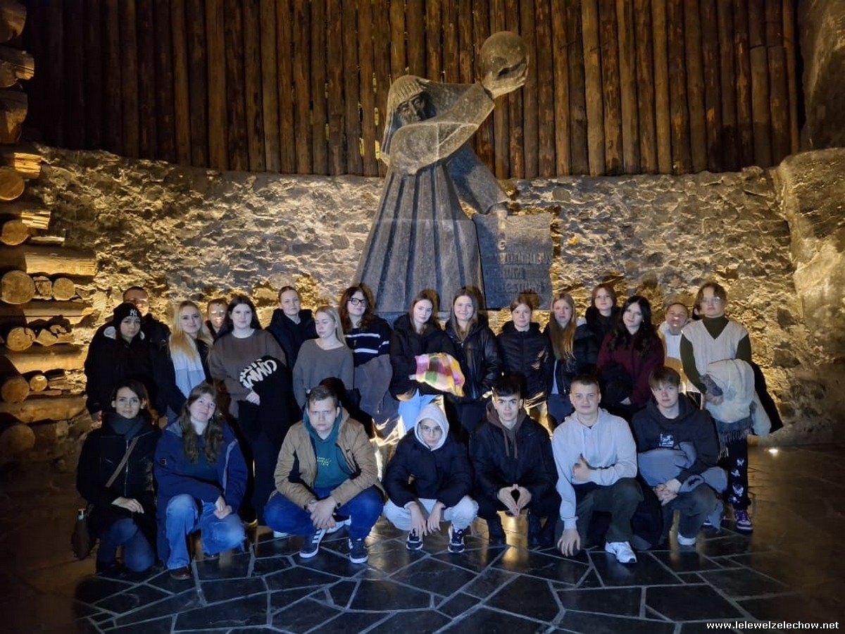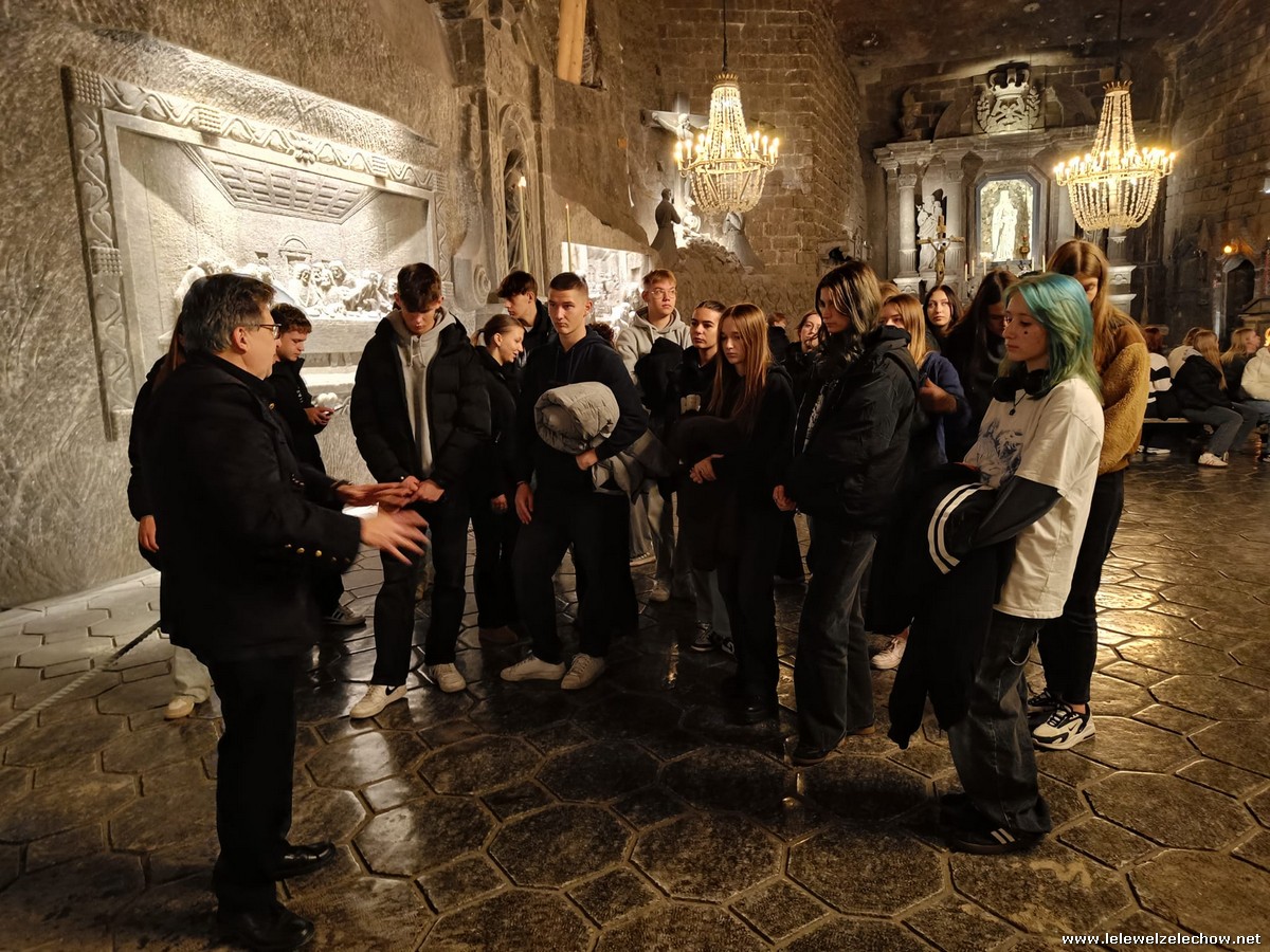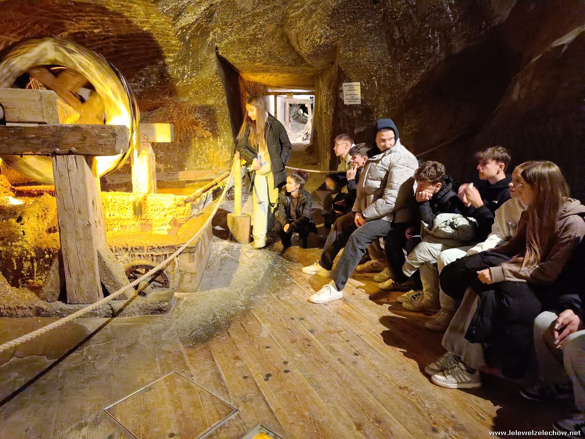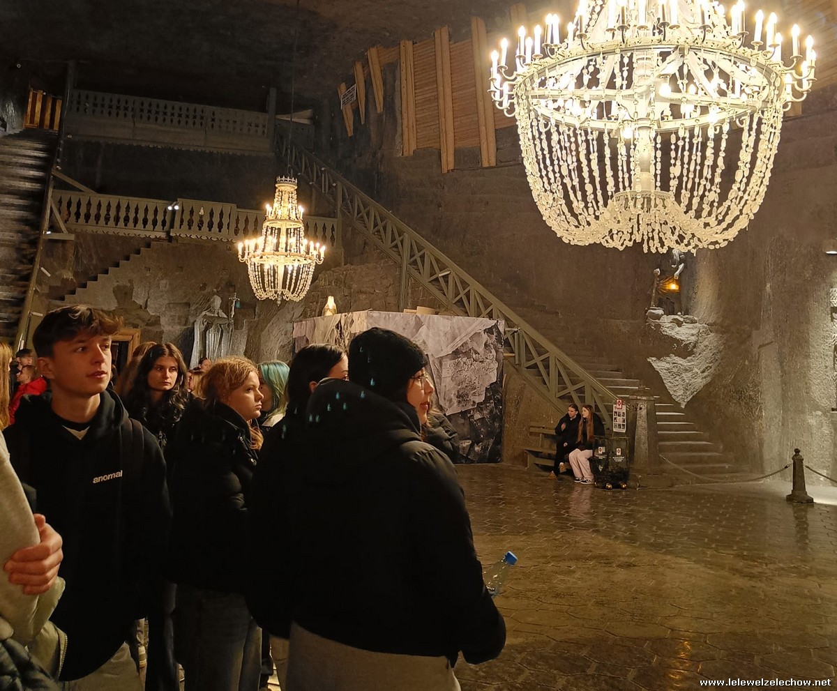 Trzeciego dnia Podróży z klasą trzecioklasiści z Lelewela zwiedzili Kopalnię Soli w Wieliczce, w tym Muzeum Żup Krakowskich. Zeszliśmy po 380 stopniach na poziom pierwszy na głębokość 64 m pod powierzchnią. Po pokonaniu kolejnych 700 stopni znaleźliśmy się na głębokości 135 m i przemierzając kolejne komory, chodniki i jaskinie solankowe poznawaliśmy historię sposobów wydobycia soli na ziemi krakowskiej. Przewodnicy opowiedzieli nam legendę o świętej Kindze, węgierskiej królewnie poślubionej przez księcia Bolesława Wstydliwego. Kinga, pragnąc podarować swym nowym poddanym sól, wrzuciła swój zaręczynowy pierścień do jednego z szybów kopalni, który miał zostać wydobyty wraz z pierwszą bryłką soli na ziemiach polskich. W Wieliczce znajduje się kaplica poświęcona właśnie św. Kindze. Na zakończenie zwiedzania odwiedziliśmy Muzeum Żup Krakowskich z obszerną panoramą miasta Wieliczka.