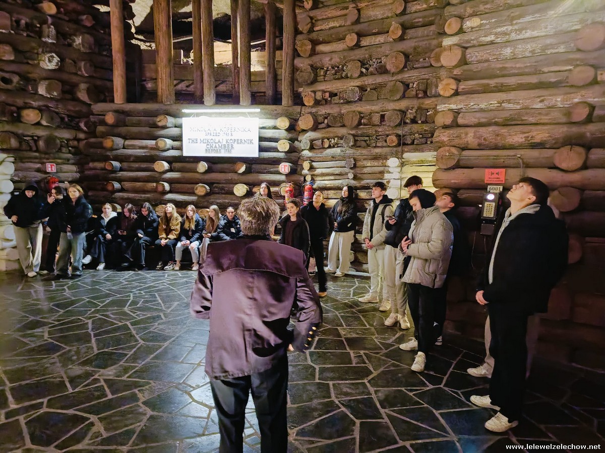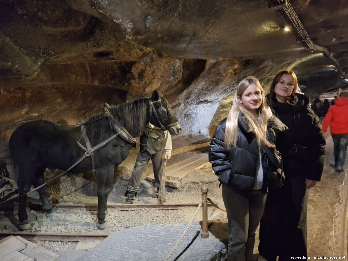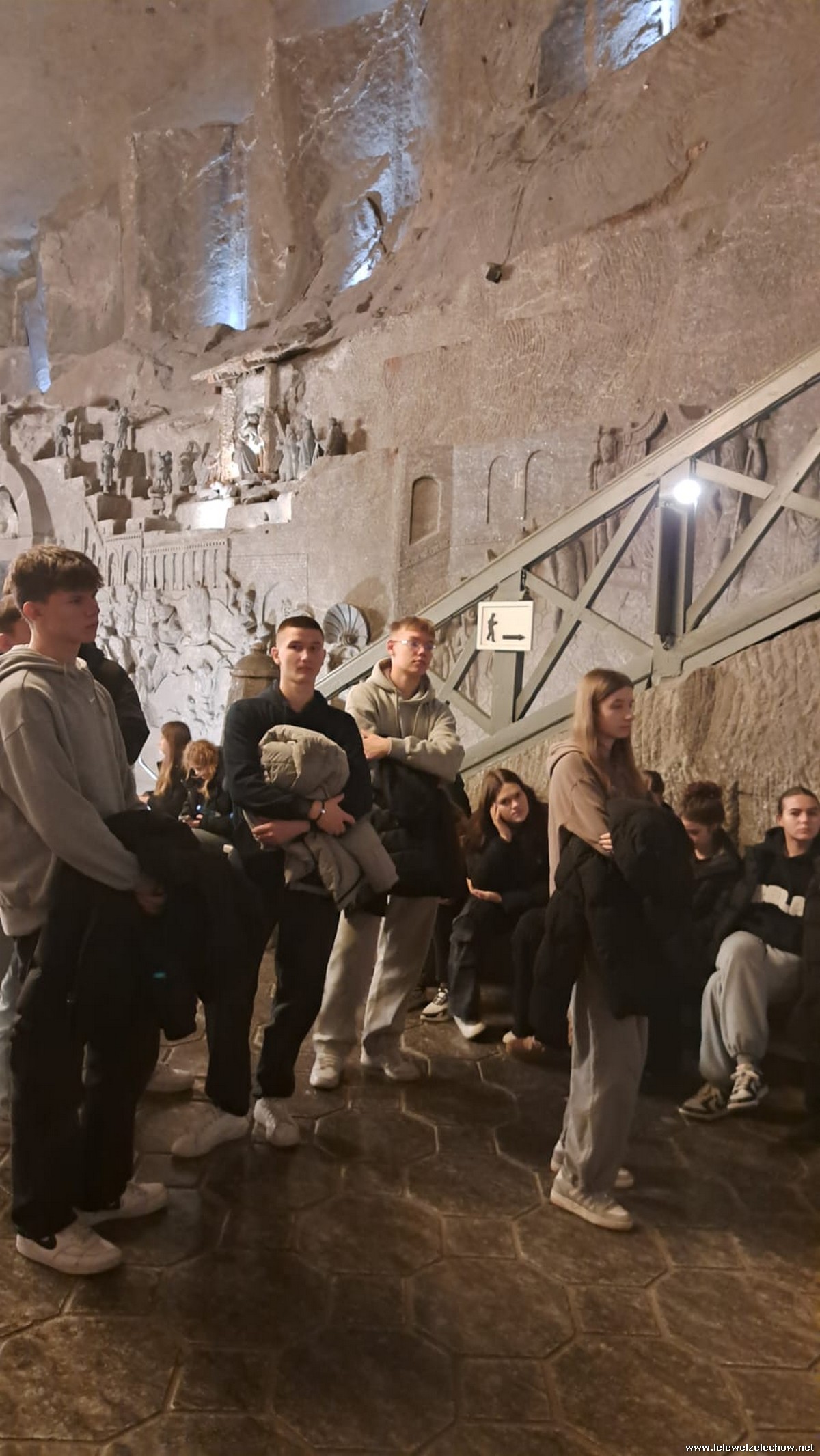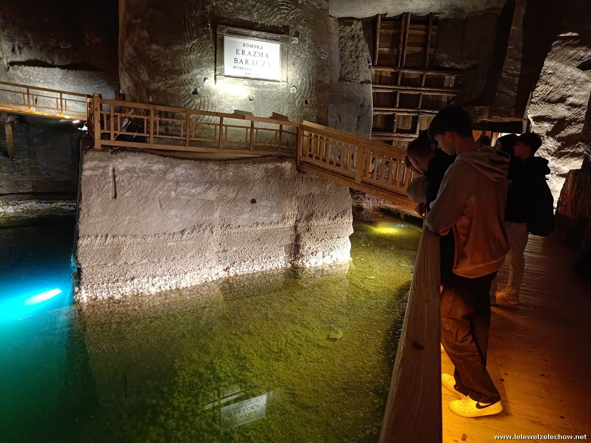 Trzeciego dnia Podróży z klasą trzecioklasiści z Lelewela zwiedzili Kopalnię Soli w Wieliczce, w tym Muzeum Żup Krakowskich. Zeszliśmy po 380 stopniach na poziom pierwszy na głębokość 64 m pod powierzchnią. Po pokonaniu kolejnych 700 stopni znaleźliśmy się na głębokości 135 m i przemierzając kolejne komory, chodniki i jaskinie solankowe poznawaliśmy historię sposobów wydobycia soli na ziemi krakowskiej. Przewodnicy opowiedzieli nam legendę o świętej Kindze, węgierskiej królewnie poślubionej przez księcia Bolesława Wstydliwego. Kinga, pragnąc podarować swym nowym poddanym sól, wrzuciła swój zaręczynowy pierścień do jednego z szybów kopalni, który miał zostać wydobyty wraz z pierwszą bryłką soli na ziemiach polskich. W Wieliczce znajduje się kaplica poświęcona właśnie św. Kindze. Na zakończenie zwiedzania odwiedziliśmy Muzeum Żup Krakowskich z obszerną panoramą miasta Wieliczka.