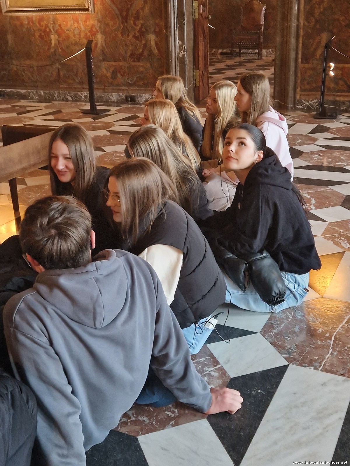 Katedra, to jak podkreśliła pani przewodnik, przejście przez całą historię Polski. Uczniowie zobaczyli piękne grobowce królów Polski, zwiedzili krypty z pochówkami wybitnych Polaków oraz zatrzymali się przy ołtarzu z relikwiami św.Stanisława patrona Polski.
