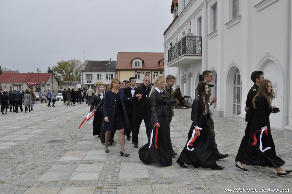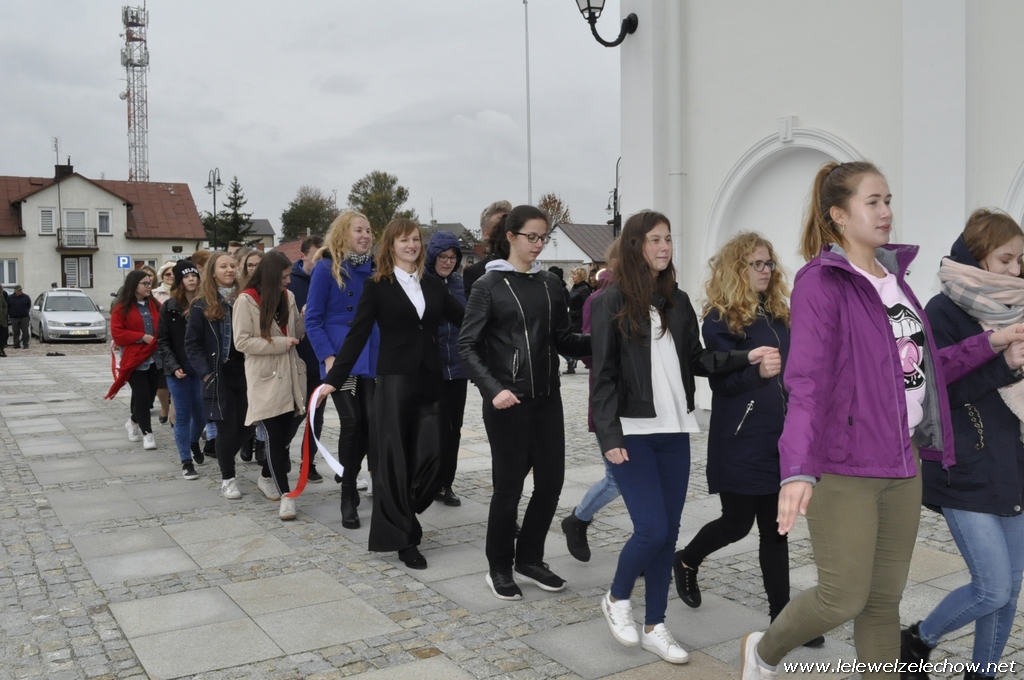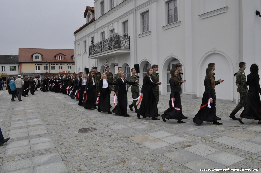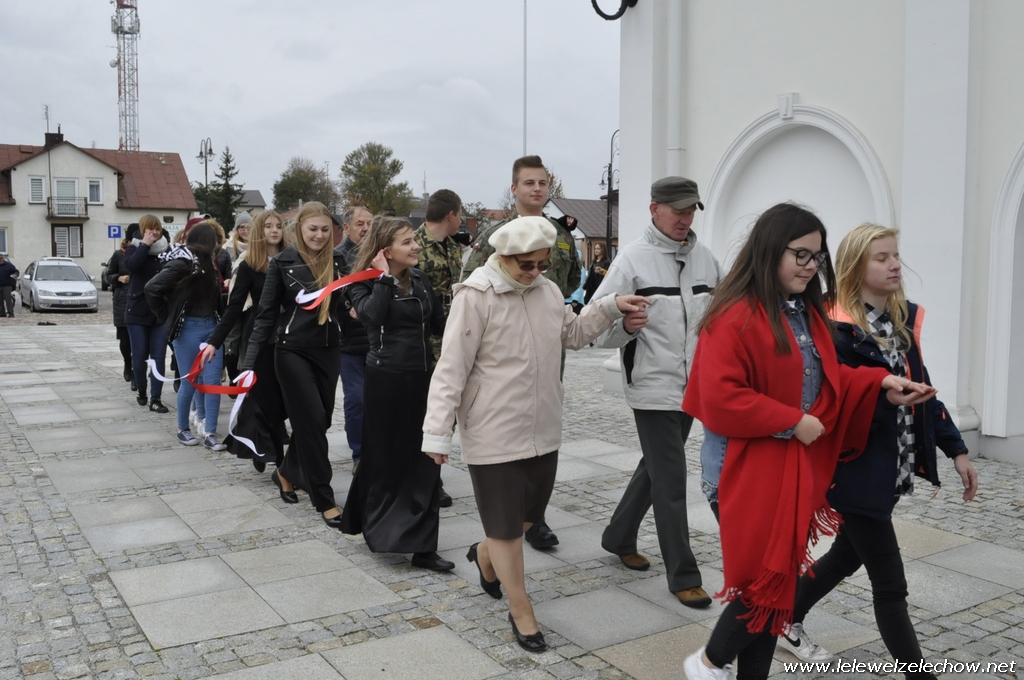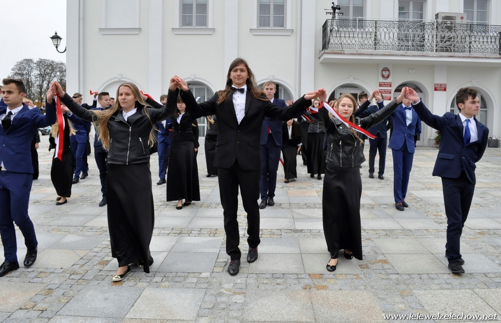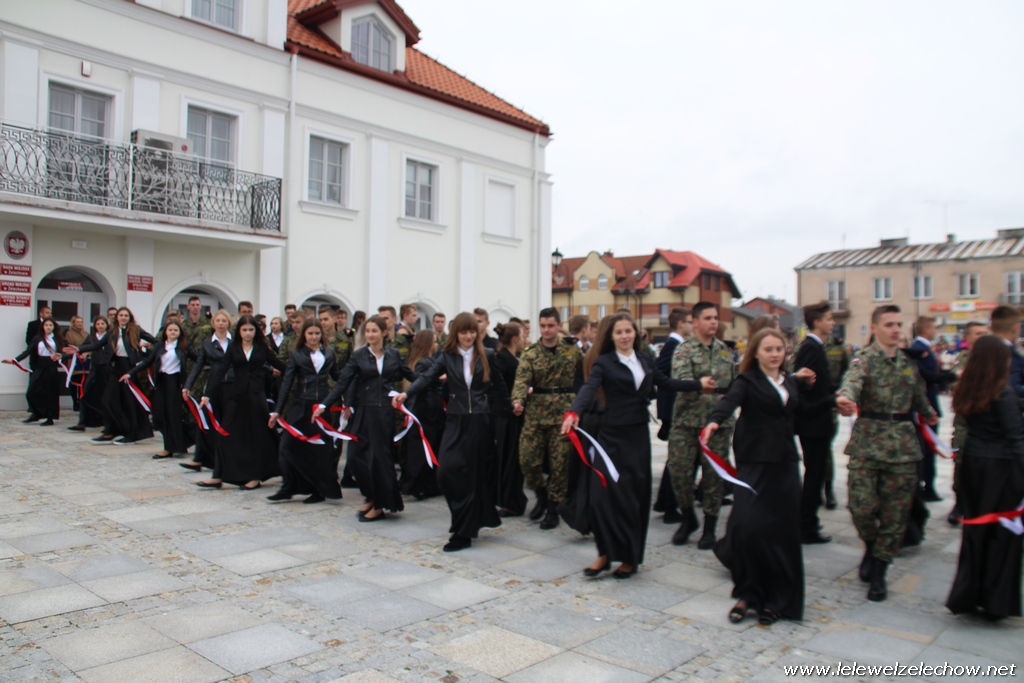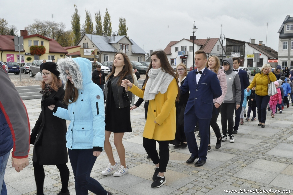 Po zaprezentowaniu układu tanecznego wszyscy zgromadzeni,pod kierunkiem pani Joanny Włodarczyk, ruszyli w uroczystym korowodzie wokół ratusza. Wśród uczestników byli: dzieci i młodzież żelechowskich szkół wraz z nauczycielami, licznie zgromadzeni rodzice, nauczyciele – emeryci,uczestnicy Warsztatów Terapii Zajęciowej oraz mieszkańcy Żelechowa i okolic.