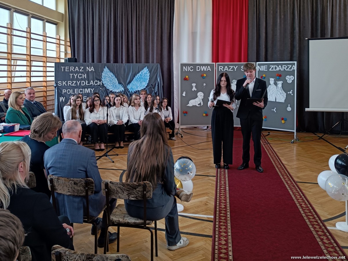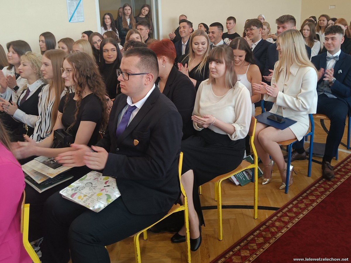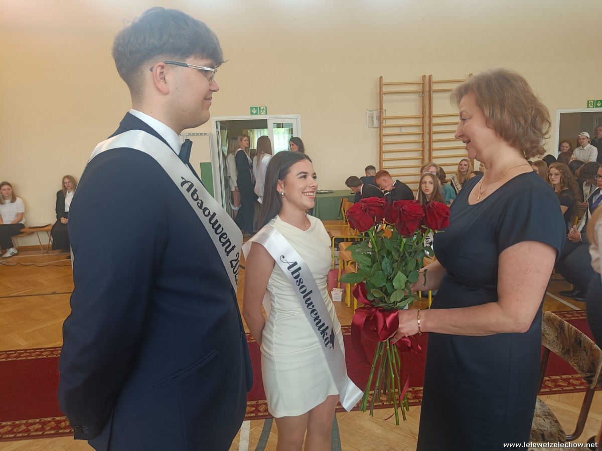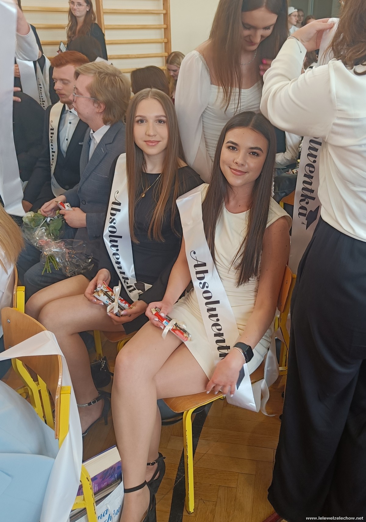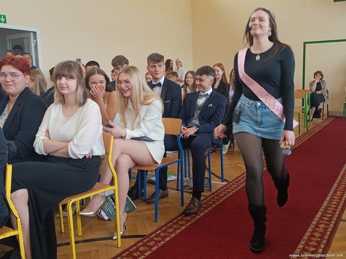 Po części oficjalnej klasy trzecie pożegnały Koleżanki i Kolegów pięknym programem artystycznym. Występy, recytacje, scenka kabaretowa, piosenki z ważnym przesłaniem sprawiły, że maturzyści na przemian wzruszali się i śmiali. Nie mogło również zabraknąć tradycyjnej Gali Leleweli, która zawsze wzbudza wiele pozytywnych emocji i jest jednym z najbardziej wyczekiwanych punktów programu artystycznego. Podczas gali doceniono tych, którzy swoim zachowaniem, postawą czy wyglądem wyróżniali się spośród grona uczniów. Cały program zakończyły życzenia, jakie trzecioklasiści złożyli absolwentom, oraz wręczenie upominków.
