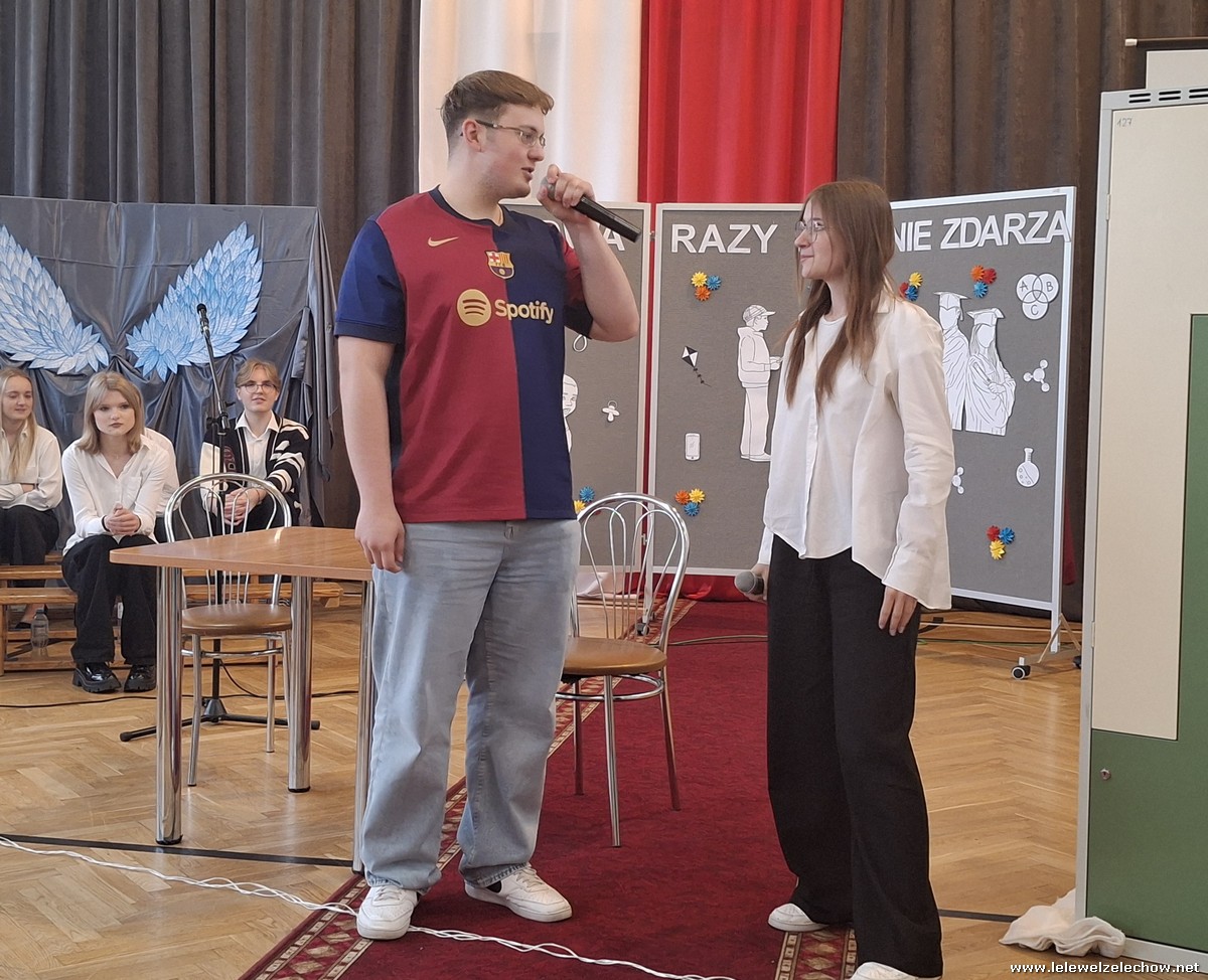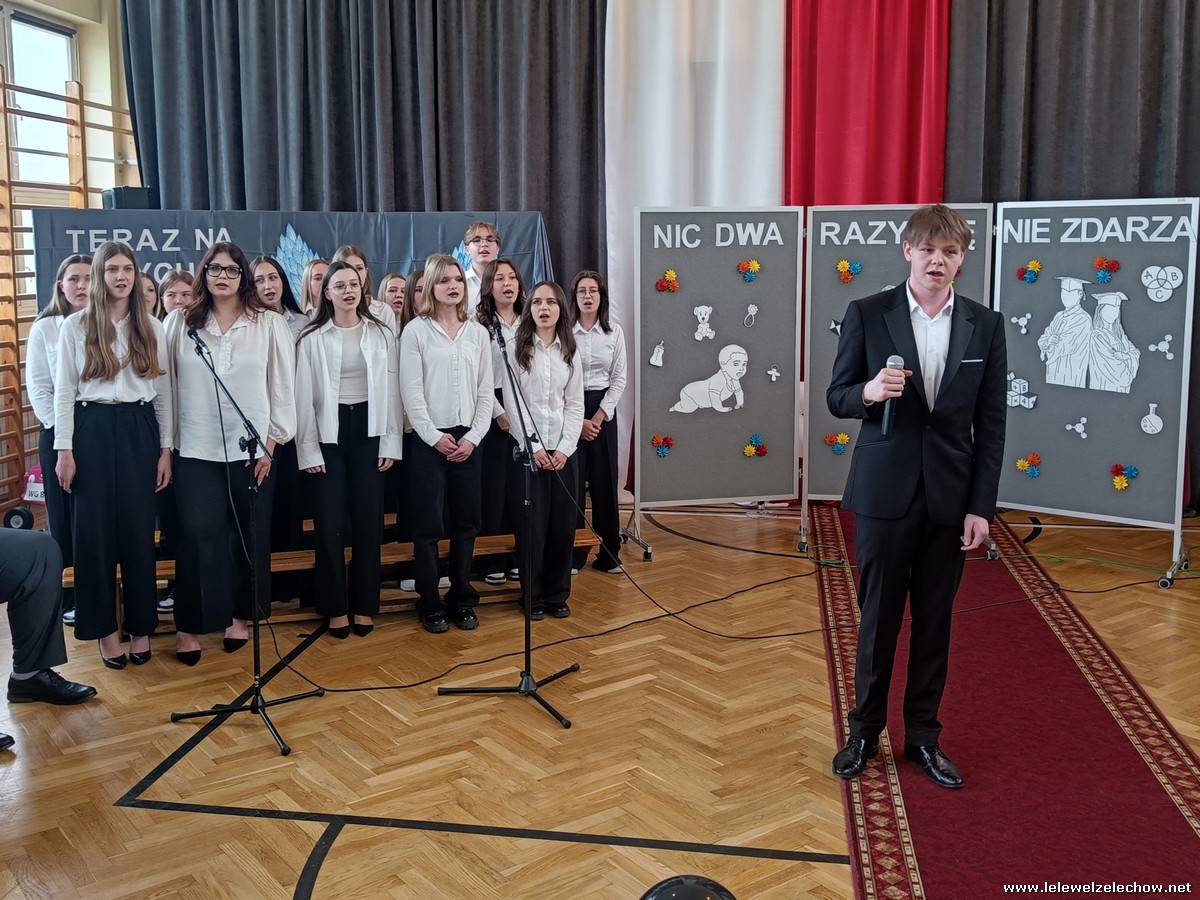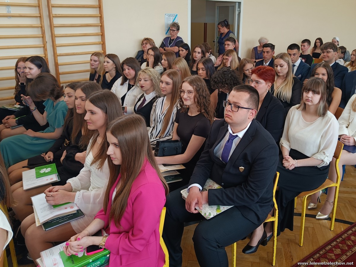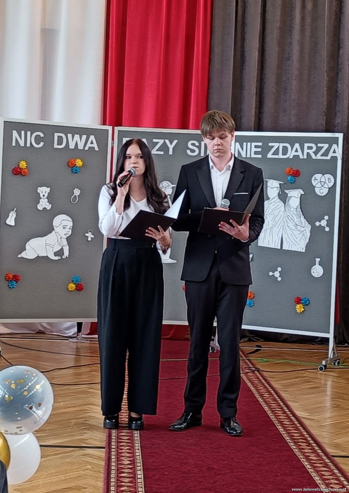 Po części oficjalnej klasy trzecie pożegnały Koleżanki i Kolegów pięknym programem artystycznym. Występy, recytacje, scenka kabaretowa, piosenki z ważnym przesłaniem sprawiły, że maturzyści na przemian wzruszali się i śmiali. Nie mogło również zabraknąć tradycyjnej Gali Leleweli, która zawsze wzbudza wiele pozytywnych emocji i jest jednym z najbardziej wyczekiwanych punktów programu artystycznego. Podczas gali doceniono tych, którzy swoim zachowaniem, postawą czy wyglądem wyróżniali się spośród grona uczniów. Cały program zakończyły życzenia, jakie trzecioklasiści złożyli absolwentom, oraz wręczenie upominków.