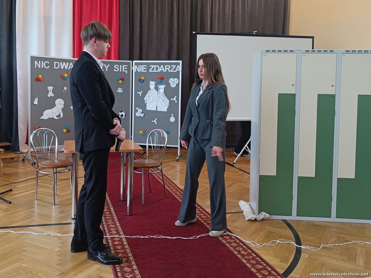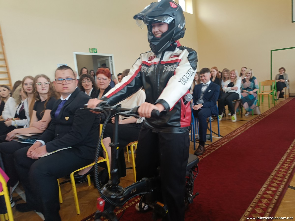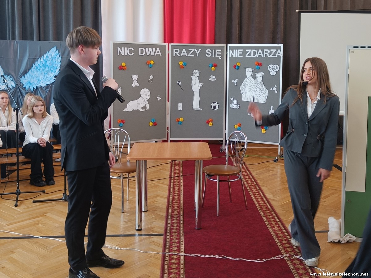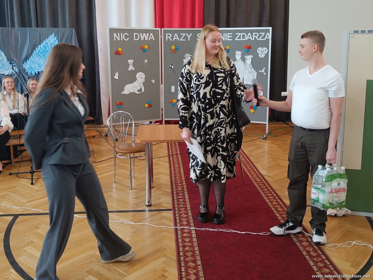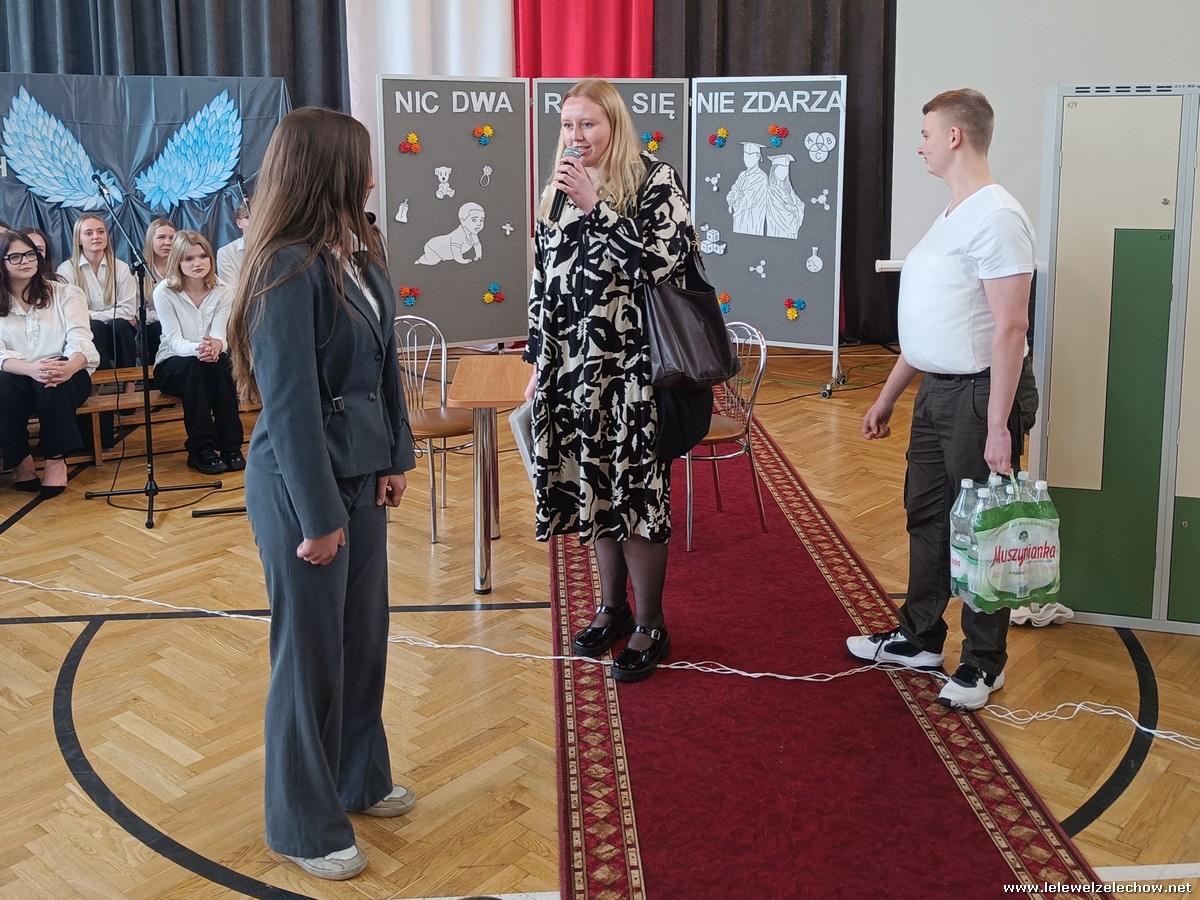 Po części oficjalnej klasy trzecie pożegnały Koleżanki i Kolegów pięknym programem artystycznym. Występy, recytacje, scenka kabaretowa, piosenki z ważnym przesłaniem sprawiły, że maturzyści na przemian wzruszali się i śmiali. Nie mogło również zabraknąć tradycyjnej Gali Leleweli, która zawsze wzbudza wiele pozytywnych emocji i jest jednym z najbardziej wyczekiwanych punktów programu artystycznego. Podczas gali doceniono tych, którzy swoim zachowaniem, postawą czy wyglądem wyróżniali się spośród grona uczniów. Cały program zakończyły życzenia, jakie trzecioklasiści złożyli absolwentom, oraz wręczenie upominków.