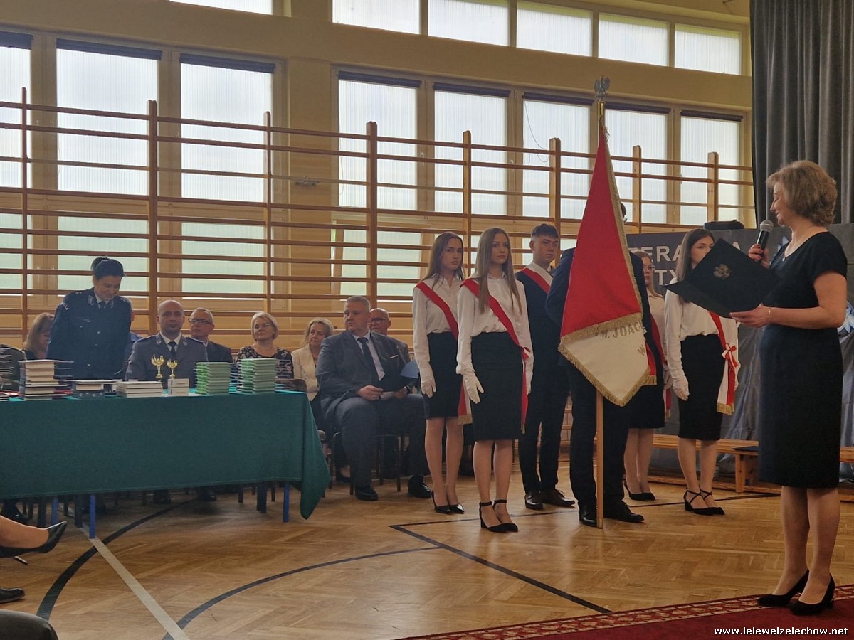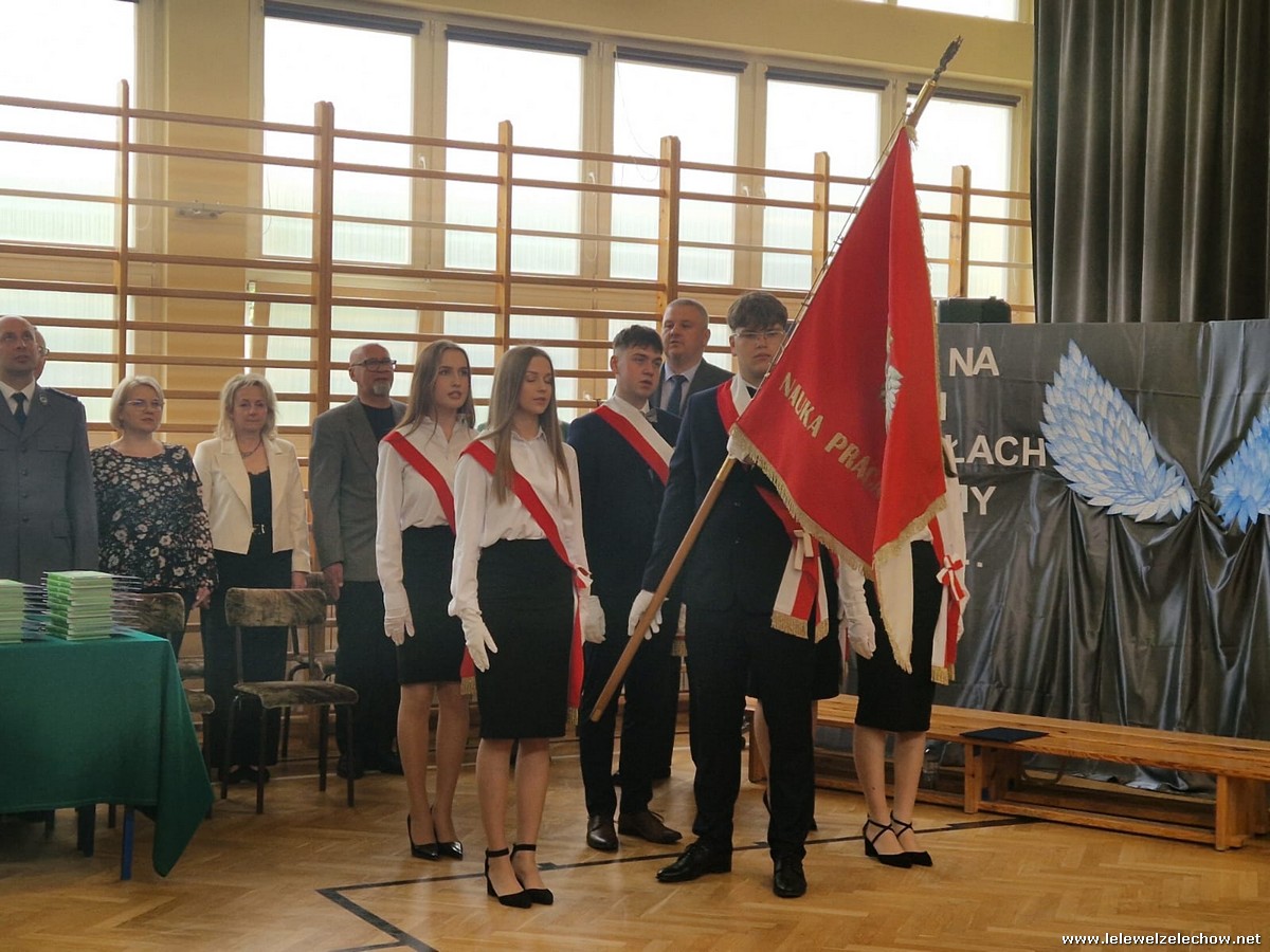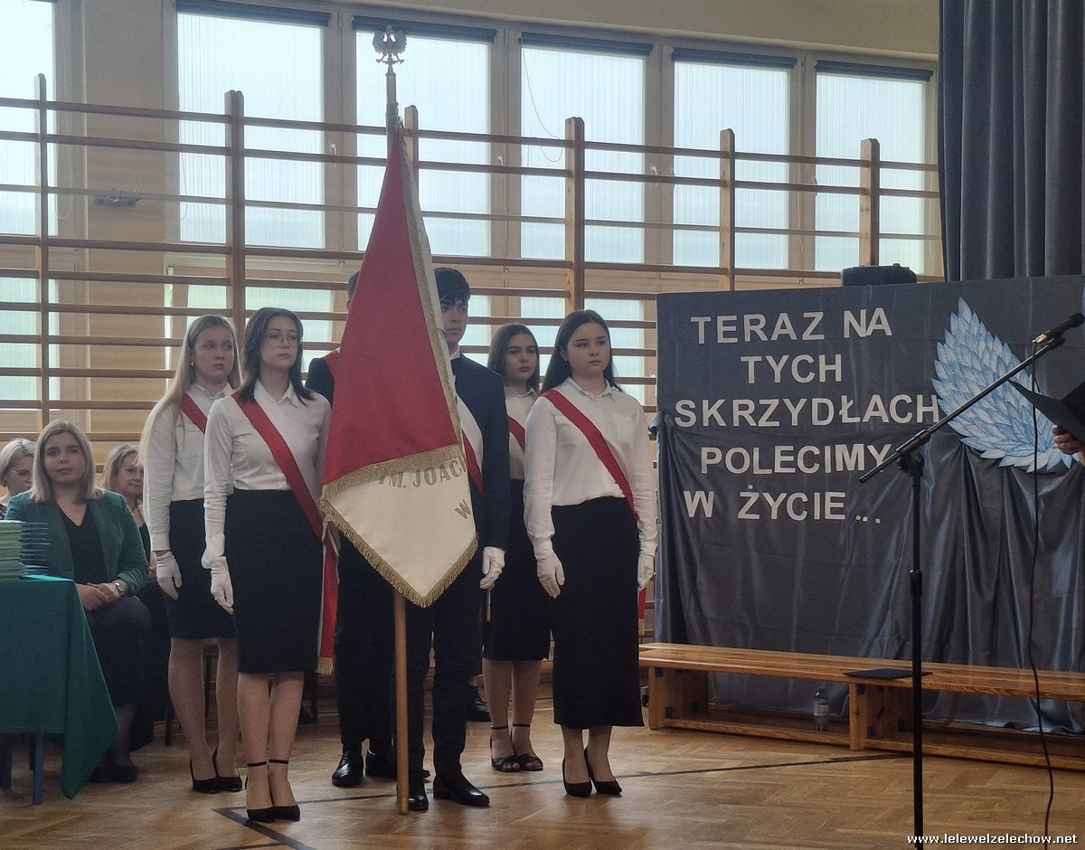 25 kwietnia 2025 roku pożegnaliśmy kolejny rocznik uczniów Lelewela. Wydarzenie to w naszym liceum obchodzone jest bardzo uroczyście i uczestniczy w nim cała społeczność szkolna. Tak było i tym razem. Po odśpiewaniu hymnu czwartoklasiści przekazali sztandar trzecioklasistom, którzy wypowiadając słowa przysięgi zobowiązali się do godnego reprezentowania szkoły i dbania o jej dobre imię.