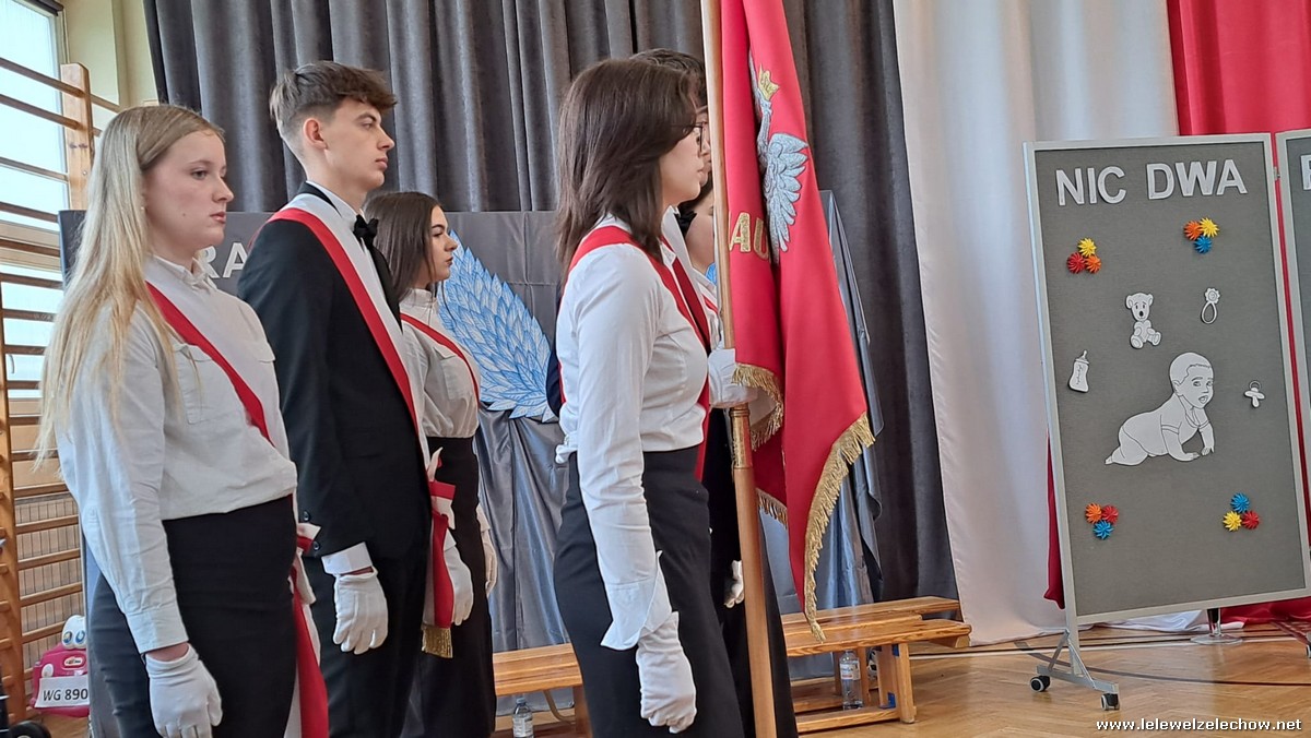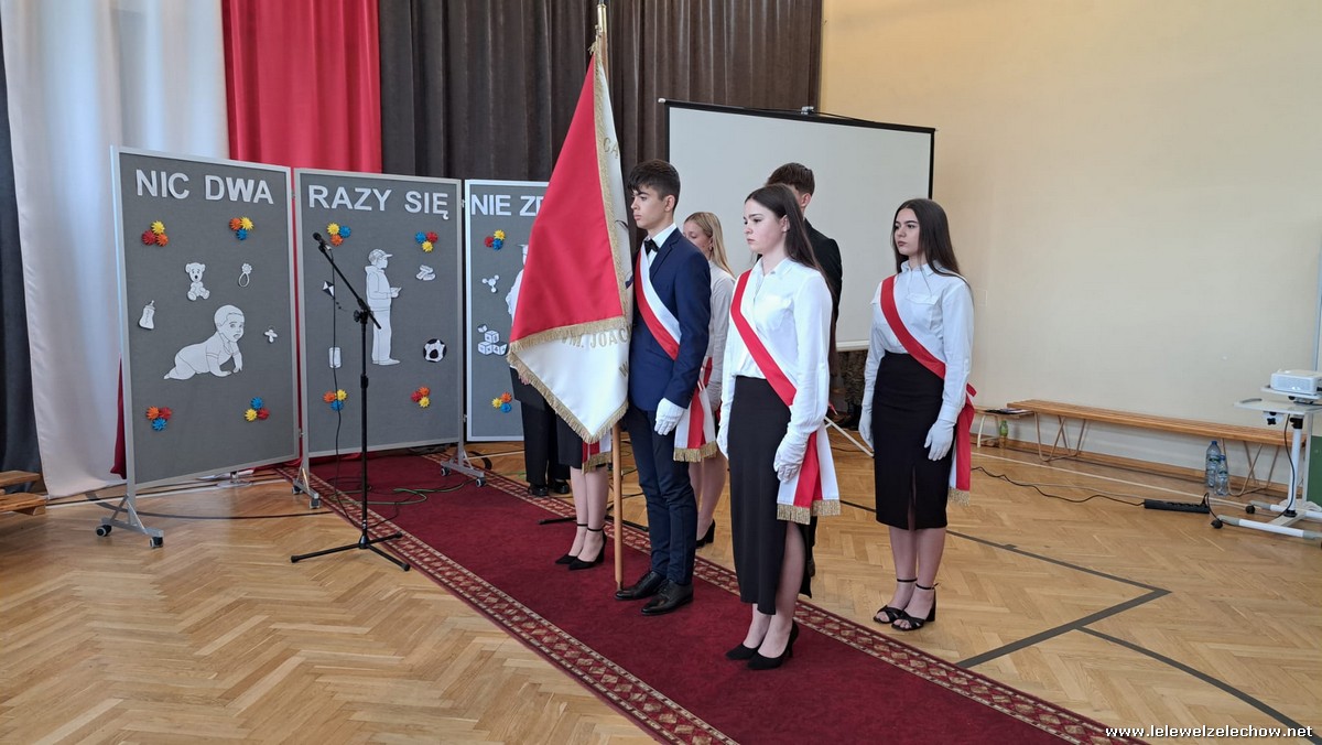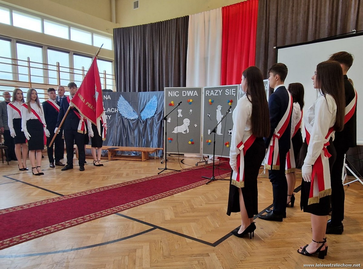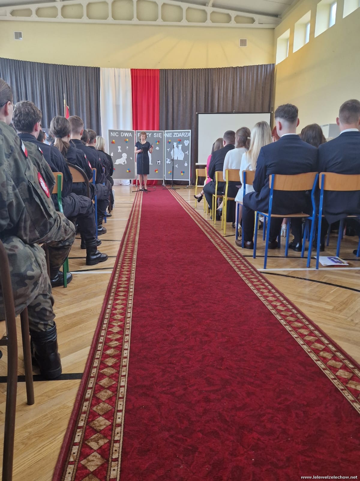 25 kwietnia 2025 roku pożegnaliśmy kolejny rocznik uczniów Lelewela. Wydarzenie to w naszym liceum obchodzone jest bardzo uroczyście i uczestniczy w nim cała społeczność szkolna. Tak było i tym razem. Po odśpiewaniu hymnu czwartoklasiści przekazali sztandar trzecioklasistom, którzy wypowiadając słowa przysięgi zobowiązali się do godnego reprezentowania szkoły i dbania o jej dobre imię.