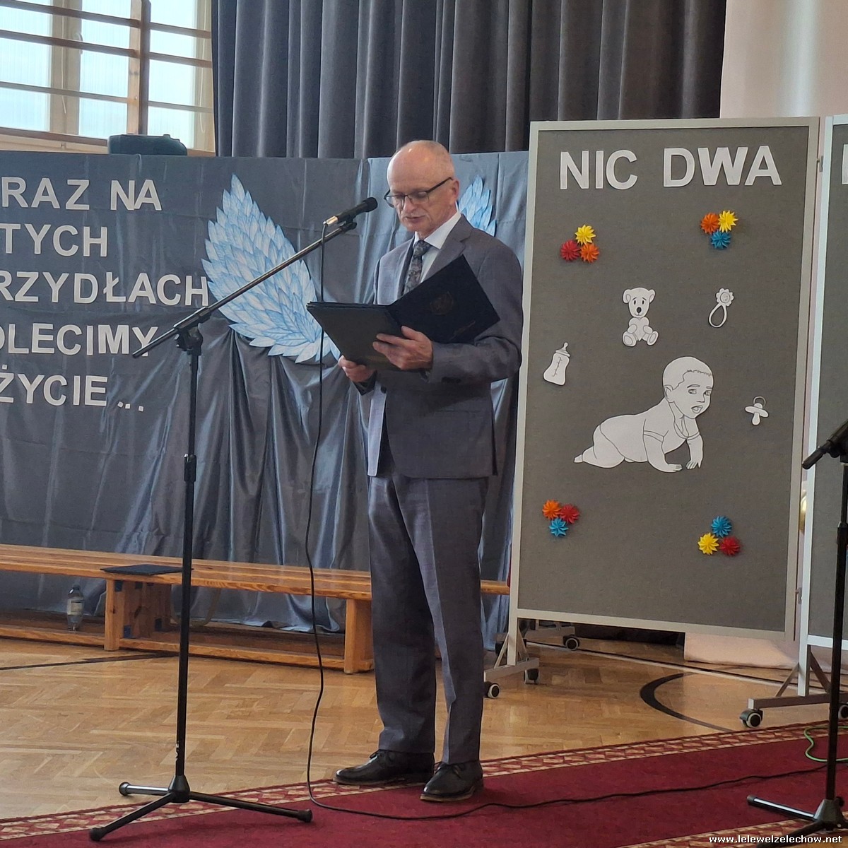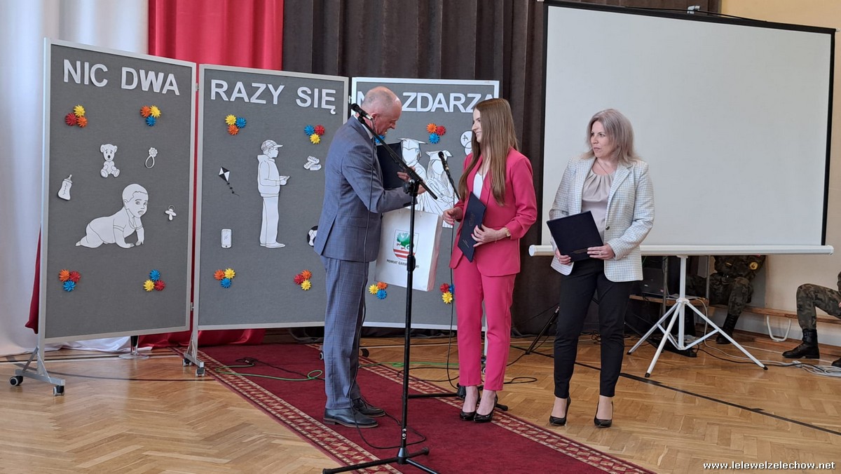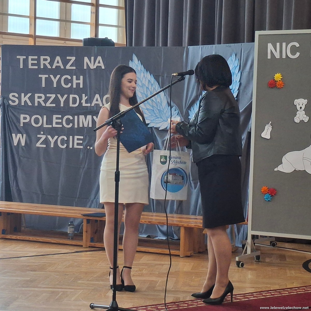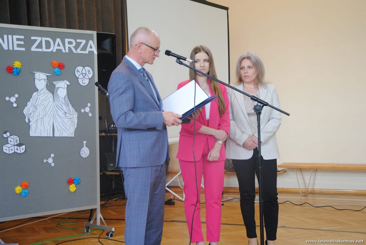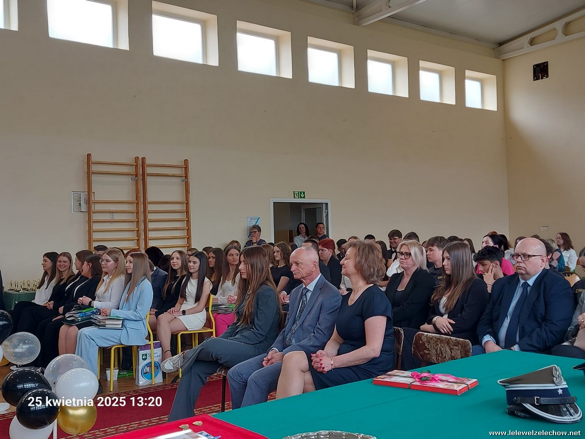 Głos zabrali również zaproszeni goście. Pan Grzegorz Woźniak - poseł na sejm RP - pogratulował ukończenia szkoły i życzył powodzenia w dorosłym życiu. Pan Krzysztof Ośka – członek zarządu Powiatu Garwolińskiego odczytał list pani Iwony Kurowskiej - Starosty Powiatu Garwolińskiego, skierował do uczniów ciepłe słowa oraz wręczył nagrodę dla najlepszej uczennicy – Patrycji Polak. Pani Krystyna Wieczorkiewicz – Burmistrz Żelechowa w swoim wystąpieniu życzyła maturzystom wielu sukcesów w dorosłym życiu oraz powodzenia na egzaminach maturalnych. Z rąk Pani Burmistrz nagrodę otrzymała Maria Lesisz za udział w uroczystościach lokalnych i godne reprezentowanie Gminy Żelechów. Głos zabrali Rodzice, którzy ze wzruszeniem wspominali wspólną drogę swoich dzieci przez 4 lata nauki. W ich słowach nie zabrakło wdzięczności wobec nauczycieli i całej społeczności szkolnej.