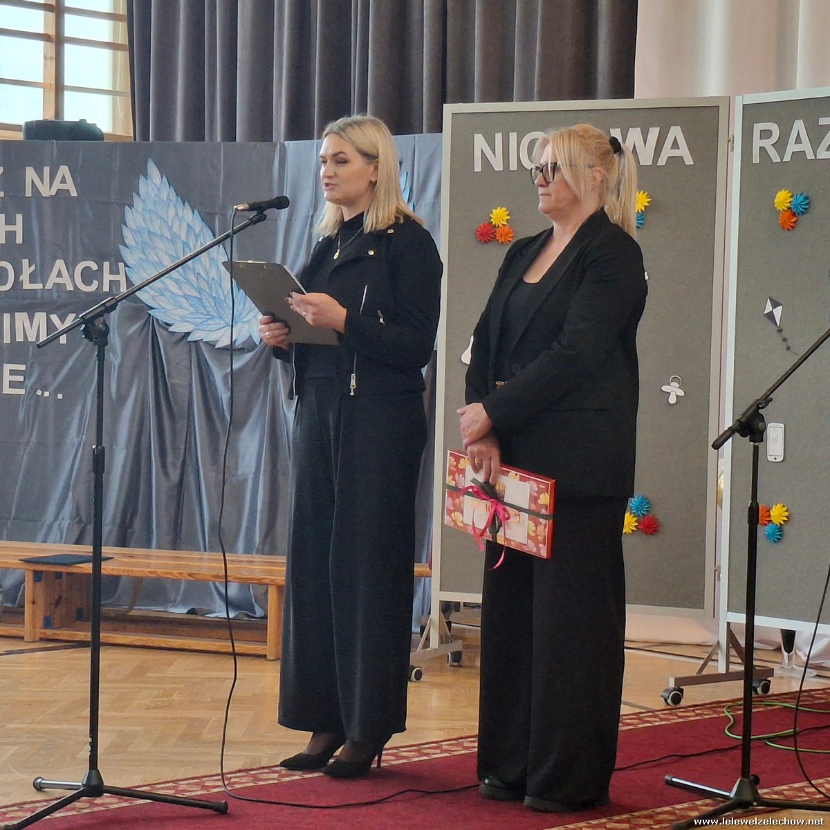 Następnie głos zabrała Pani Dyrektor, która zwróciła się do absolwentów: „Dziś rozstajemy się z rocznikiem, który zapisał się w historii naszej szkoły w wyjątkowy sposób. Każda i każdy z Was zostawił tu cząstkę siebie — i jestem przekonana, że to, co najważniejsze, zabieracie w sercu. Emocje, wspomnienia, relacje - ich nie da się zobaczyć ani zmierzyć. Ale to właśnie one zostaną na zawsze.