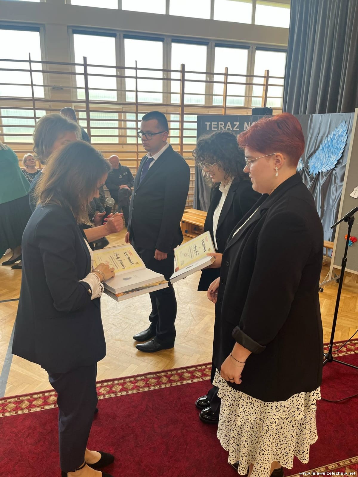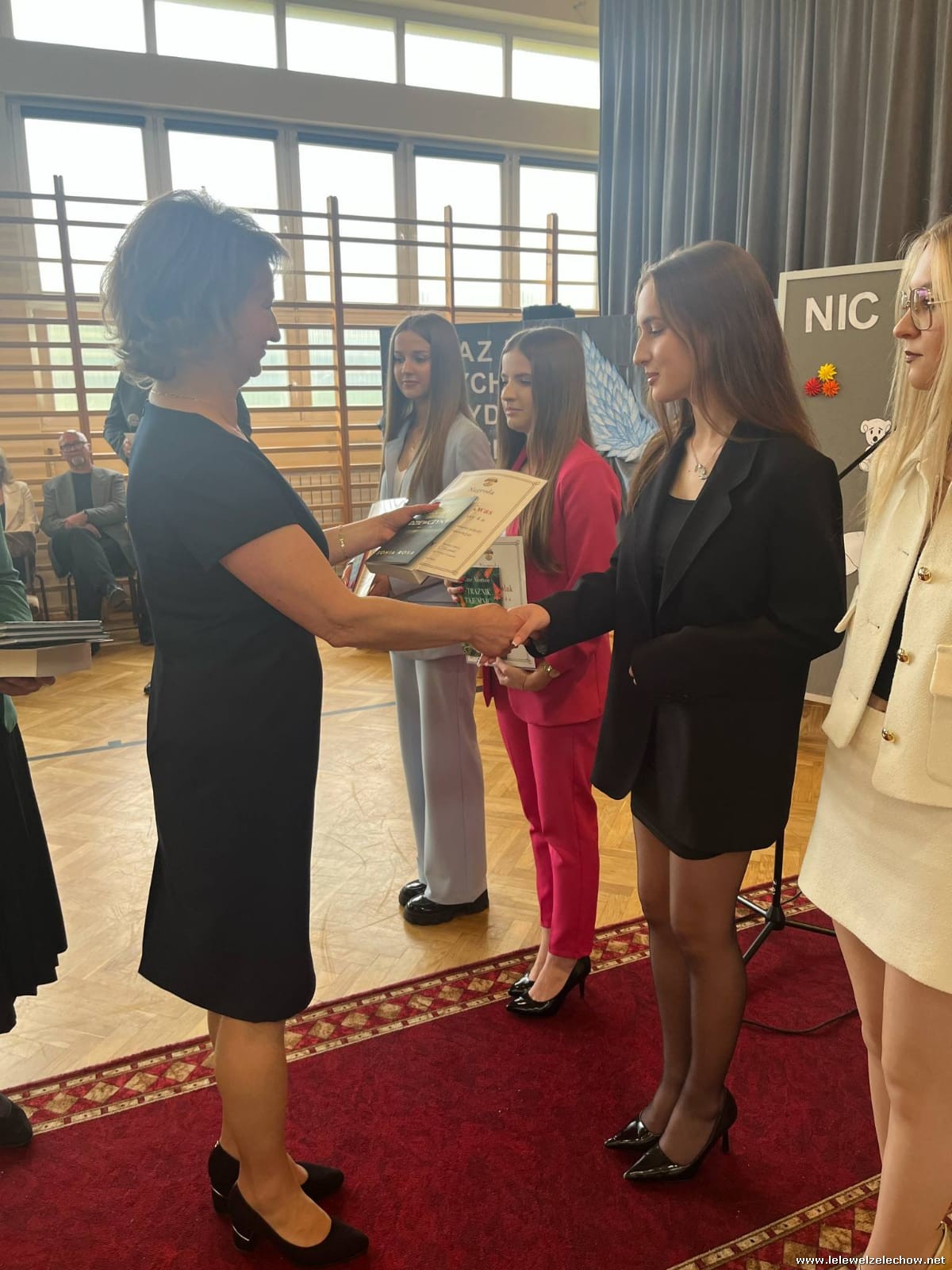 Podczas uroczystości ukończenia szkoły przez klasy maturalne nie mogło zabraknąć podziękowań i nagród za godną podziwu aktywność czwartoklasistów podczas ich całego okresu edukacji w naszym liceum. Było wiele osób, które na przestrzeni tych czterech lat regularnie reprezentowały szkołę w konkursach, zawodach i w życiu lokalnej społeczności. Pani Dyrektor i zaproszeni goście, jak również wychowawcy: pani Anna Włodarczyk i pan Arkadiusz Jurzysta, wręczyli absolwentom nagrody za wyróżniającą aktywność na rzecz lokalnego środowiska, za bardzo dobre wyniki w nauce, wzorową frekwencję, działaność w Szkolnym Kole Caritas, osiągnięcia sportowe oraz wręczyli Odznakę Wzorowego Kadeta.