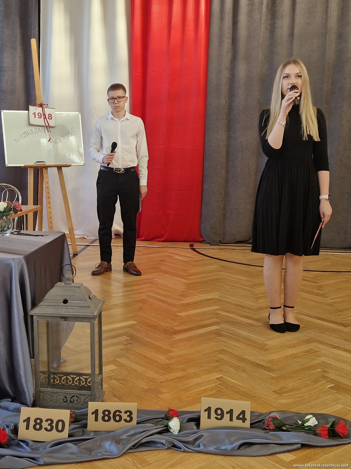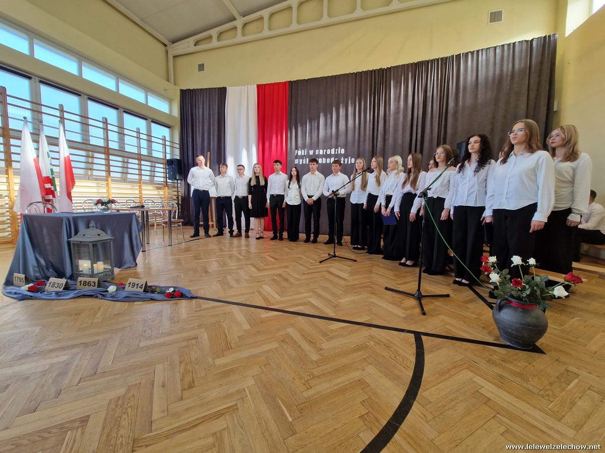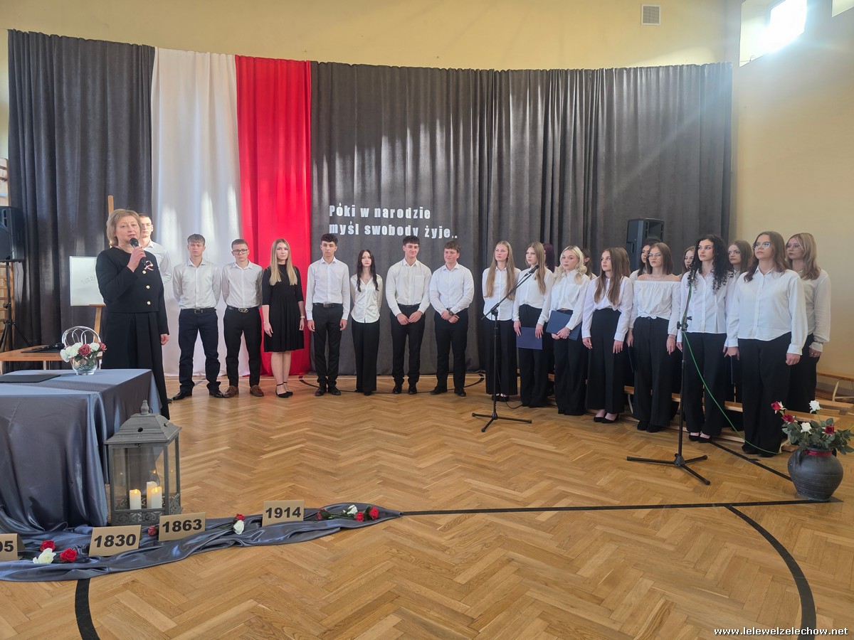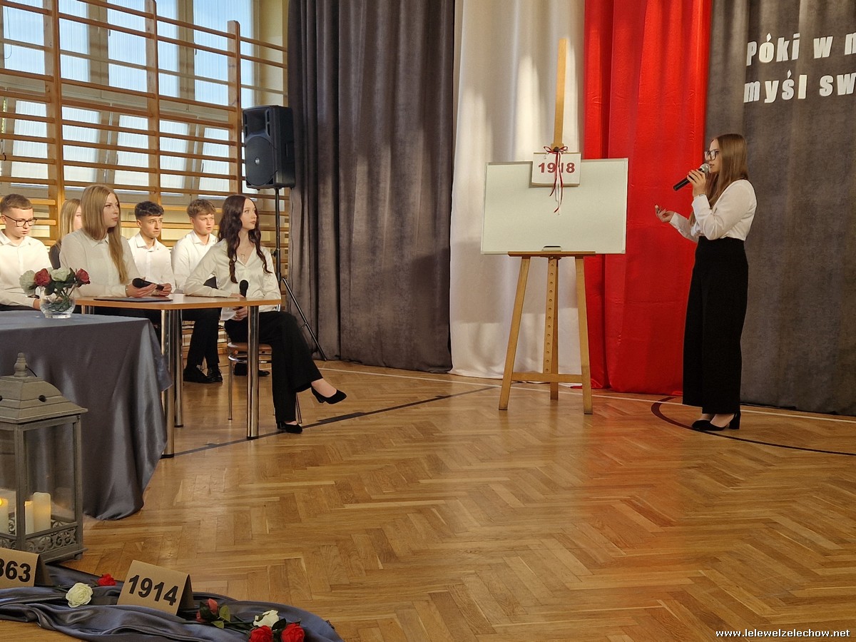 Uczniowie klas III poprowadzili nas pieśnią i poezją przez czas 123 lat polskiej niewoli. Od rozbiorów, poprzez zrywy niepodległościowe, walkę o polskość pod zaborami, czyn zbrojny I wojny światowej aż po uzyskanie upragnionej wolności. To tę wartość wielokrotnie podkreślano w programie, zaznaczając, że nie była ona również w 1918 roku Polakom dana raz na zawsze...