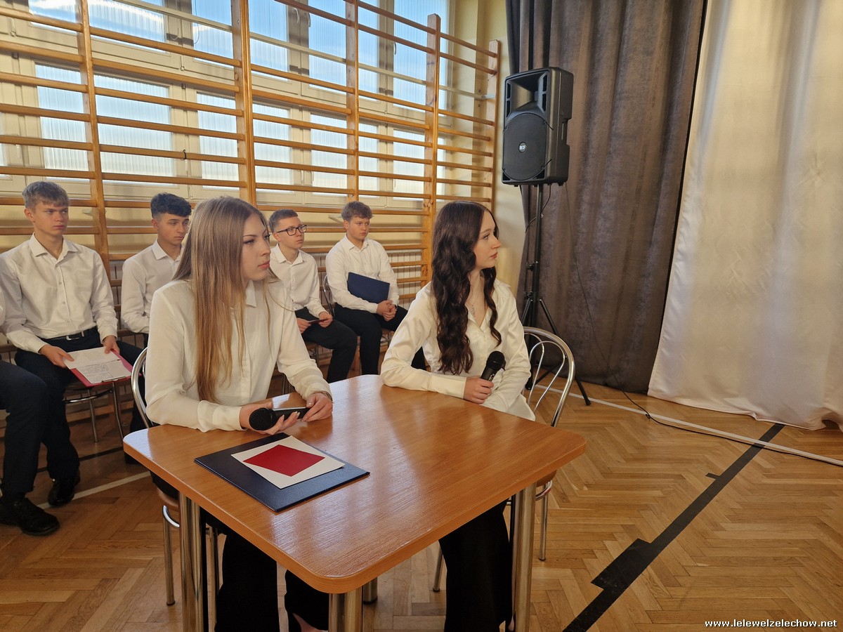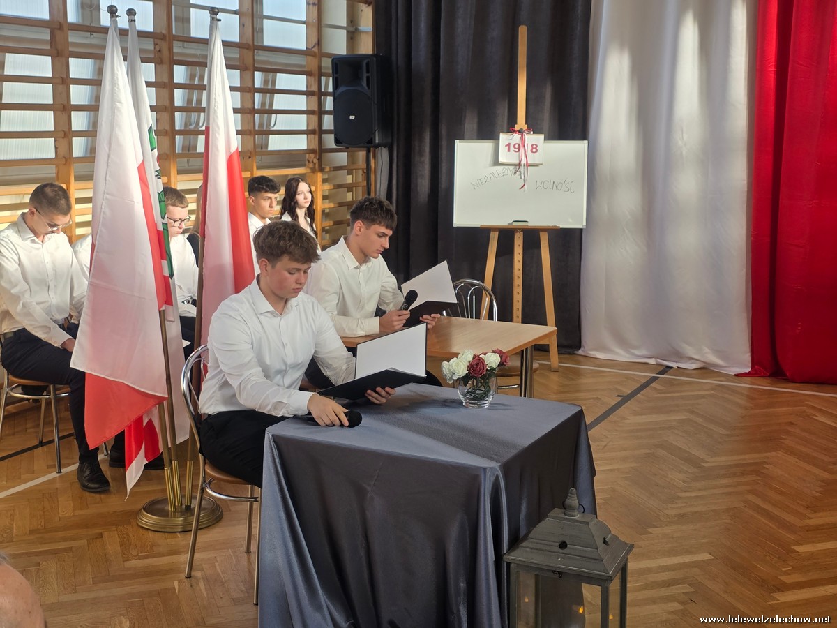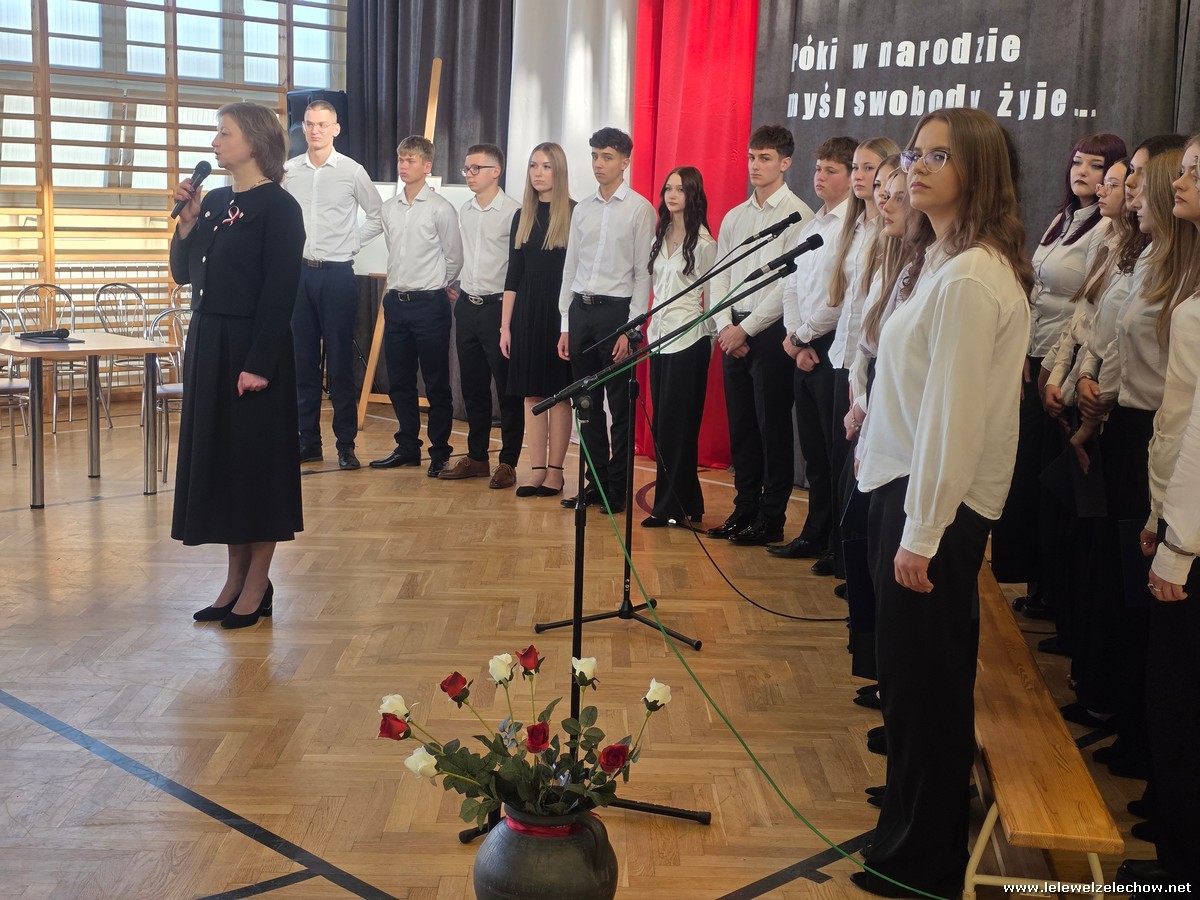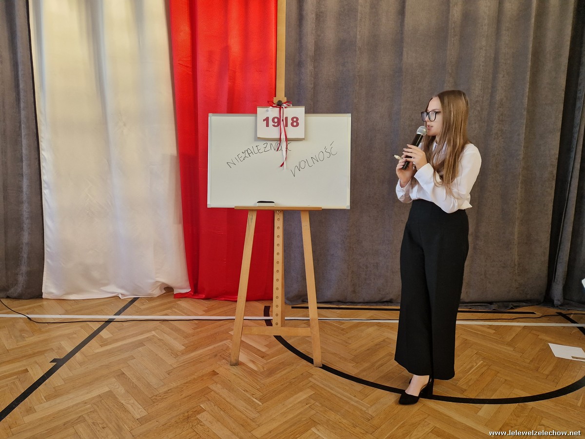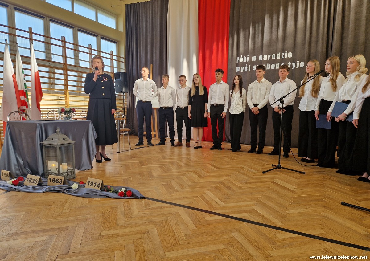 Uczniowie klas III poprowadzili nas pieśnią i poezją przez czas 123 lat polskiej niewoli. Od rozbiorów, poprzez zrywy niepodległościowe, walkę o polskość pod zaborami, czyn zbrojny I wojny światowej aż po uzyskanie upragnionej wolności. To tę wartość wielokrotnie podkreślano w programie, zaznaczając, że nie była ona również w 1918 roku Polakom dana raz na zawsze...
