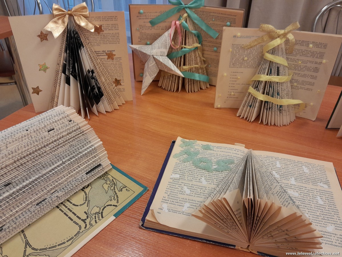 Swoje piękne, kreatywne prace przygotowali pod kierunkiem pani Anny Czarneckiej-Górskiej, która przeprowadziła warsztaty przygotowania ozdób bożonarodzeniowych z książką w roli głównej. Podczas zajęć nieaktualne książki zamieniły się w piękne świąteczne dekoracje. Zachęcamy do obejrzenia efektów naszej pracy.