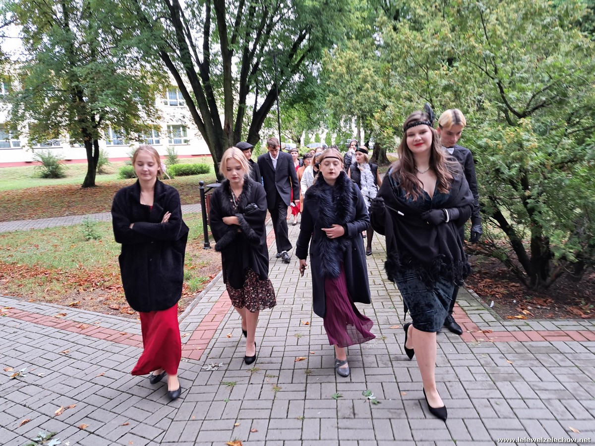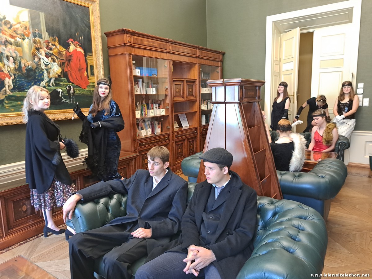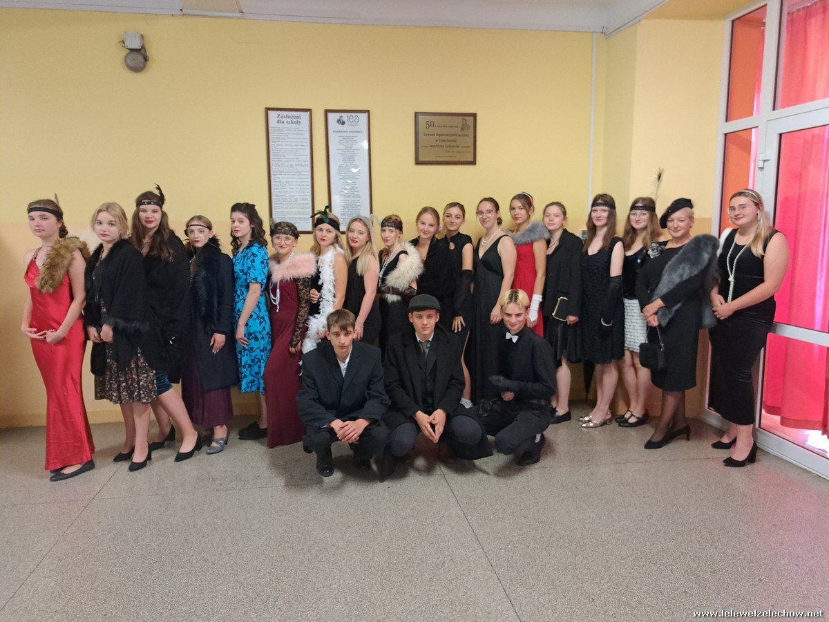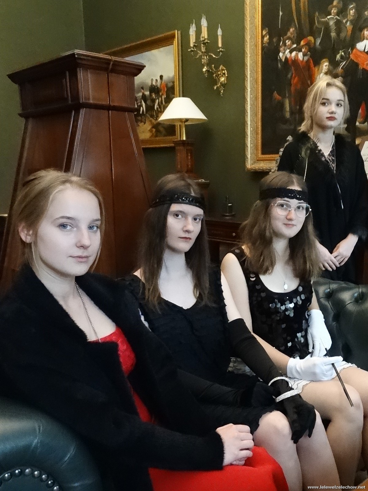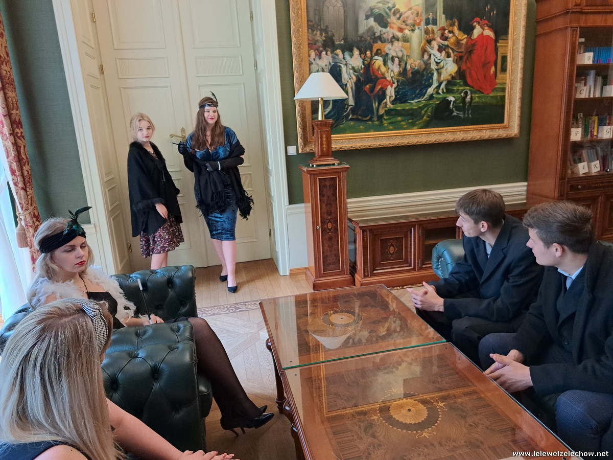Kolejny projekt realizowany przez klasę 4c w ramach rozszerzenia z historii. Tym razem licealiści przenieśli się w lata 20-te i 30-te minionego wieku. Dzięki uprzejmości Pałacu Żelechów zdjęcia udało się wykonać w pięknych wnętrzach tego obiektu. Serdecznie dziękujemy! Projekt realizowany był pod kierunkiem nauczycielki historii - pani Urszuli Kobielus, która wraz z panią Dyrektor - Sylwią Tomaszek wykonała zdjęcia. Piękne stylizacje uczennic i uczniów oraz otoczenie sprawiły, że było to bardzo udane przedsięwzięcie!