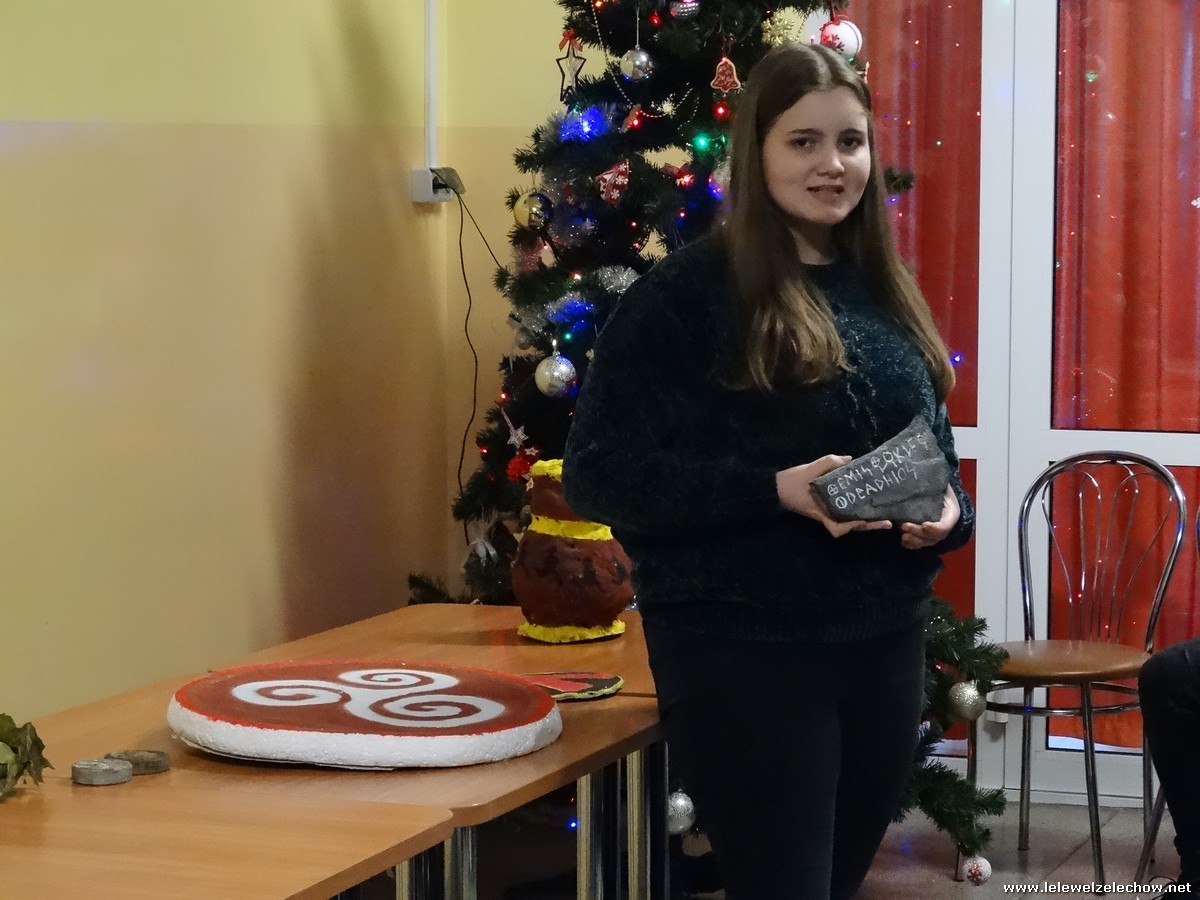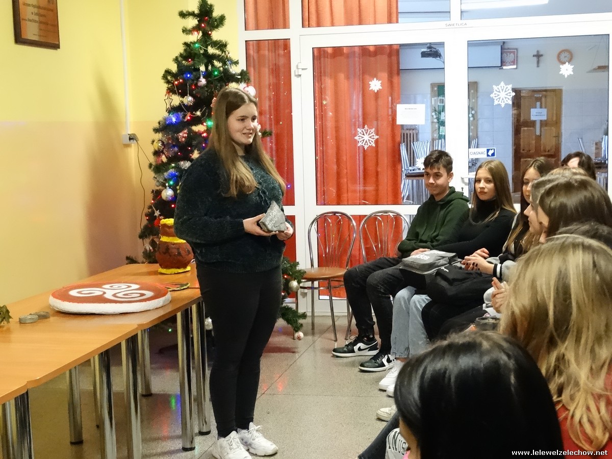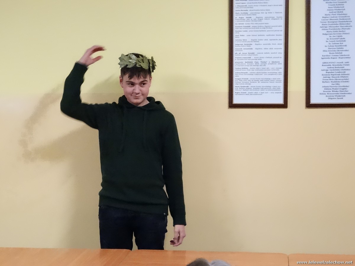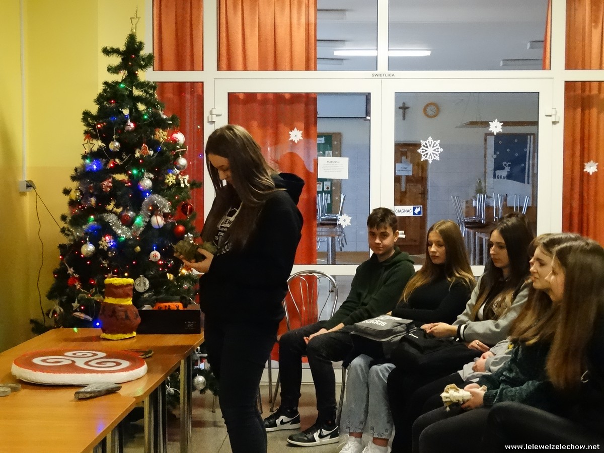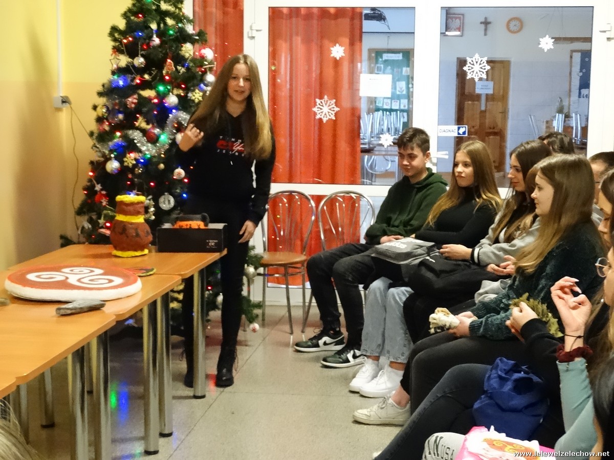 Wśród przygotowanych prac pojawiły się: wieńce laurowe, maski teatralne, wazy greckie, tarcze, tzw. hoplony, monety oraz ostrakon, model świątyni greckiej, kolumny doryckiej, triery - okrętu ateńskiego oraz teatru i Akropolu. Uczniowie przedstawiali przygotowane przez siebie prace jednocześnie przedstawiając do czego służyły starożytnym Grekom. Były to prace wykonane w różnej technice ale zwracały uwagę pomysłowością oraz starannością wykonania. Po zakończeniu prezentacji pani Urszula Kobielus - nauczyciel historii, podziękowała uczniom za przygotowane eksponaty oraz krótko omówiła całość projektu. W lekcji uczestniczyła, obserwując prezentacje uczniowskie, pani dyrektor- Sylwia Tomaszek.