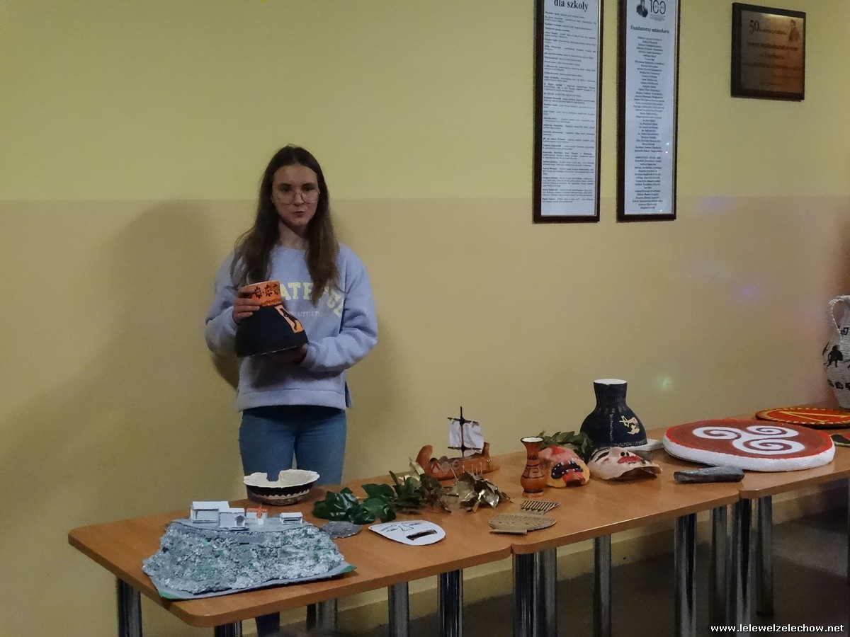 Uczniowie klasy 1a w ramach projektu z historii przygotowali eksponaty związane z historią i kulturą starożytnej Grecji.