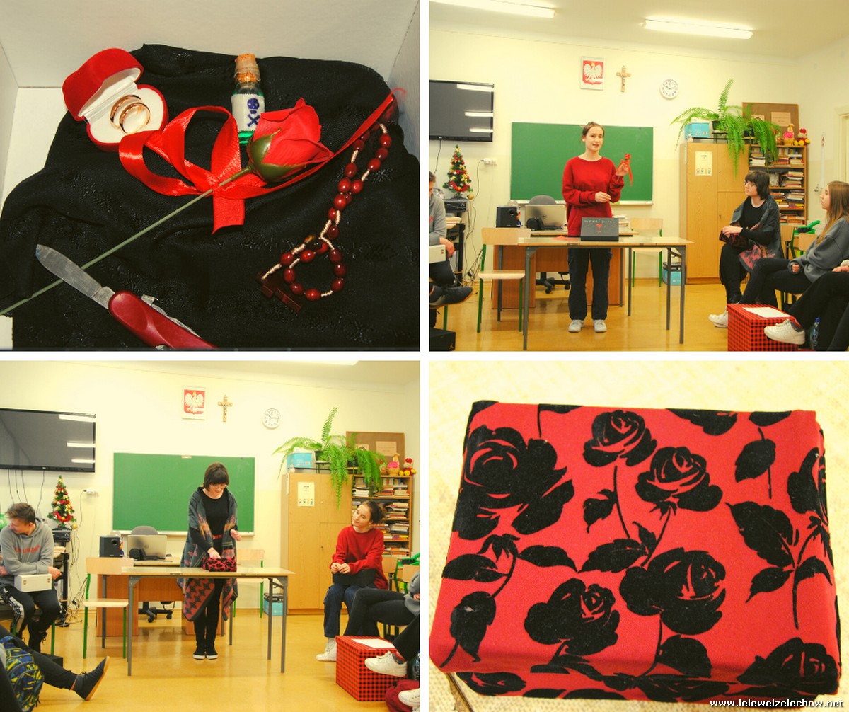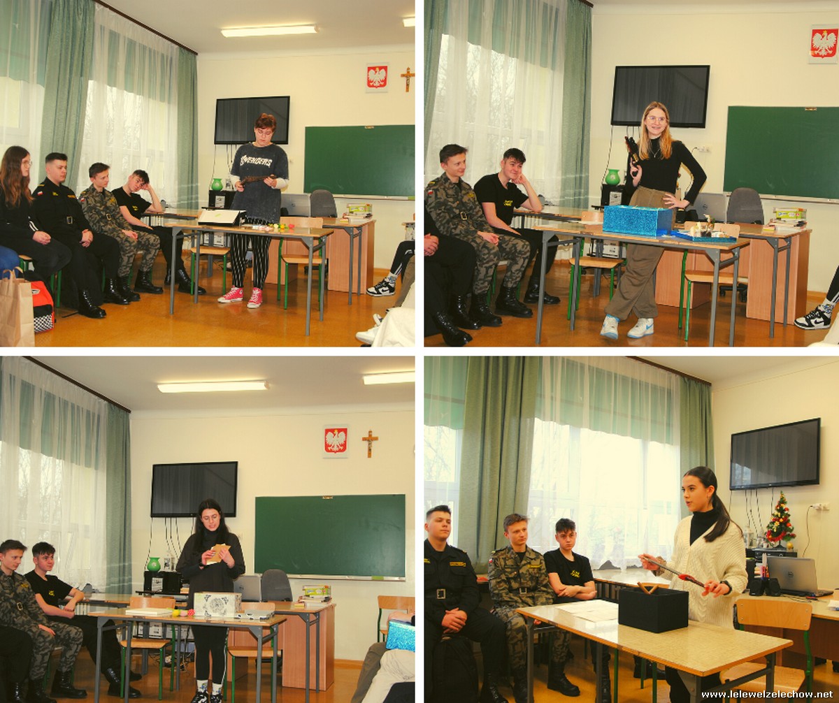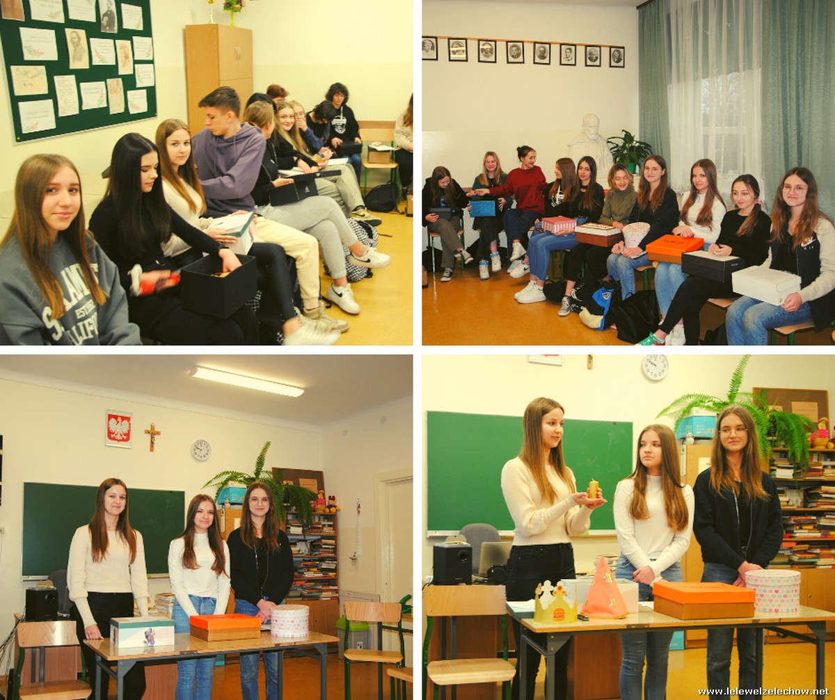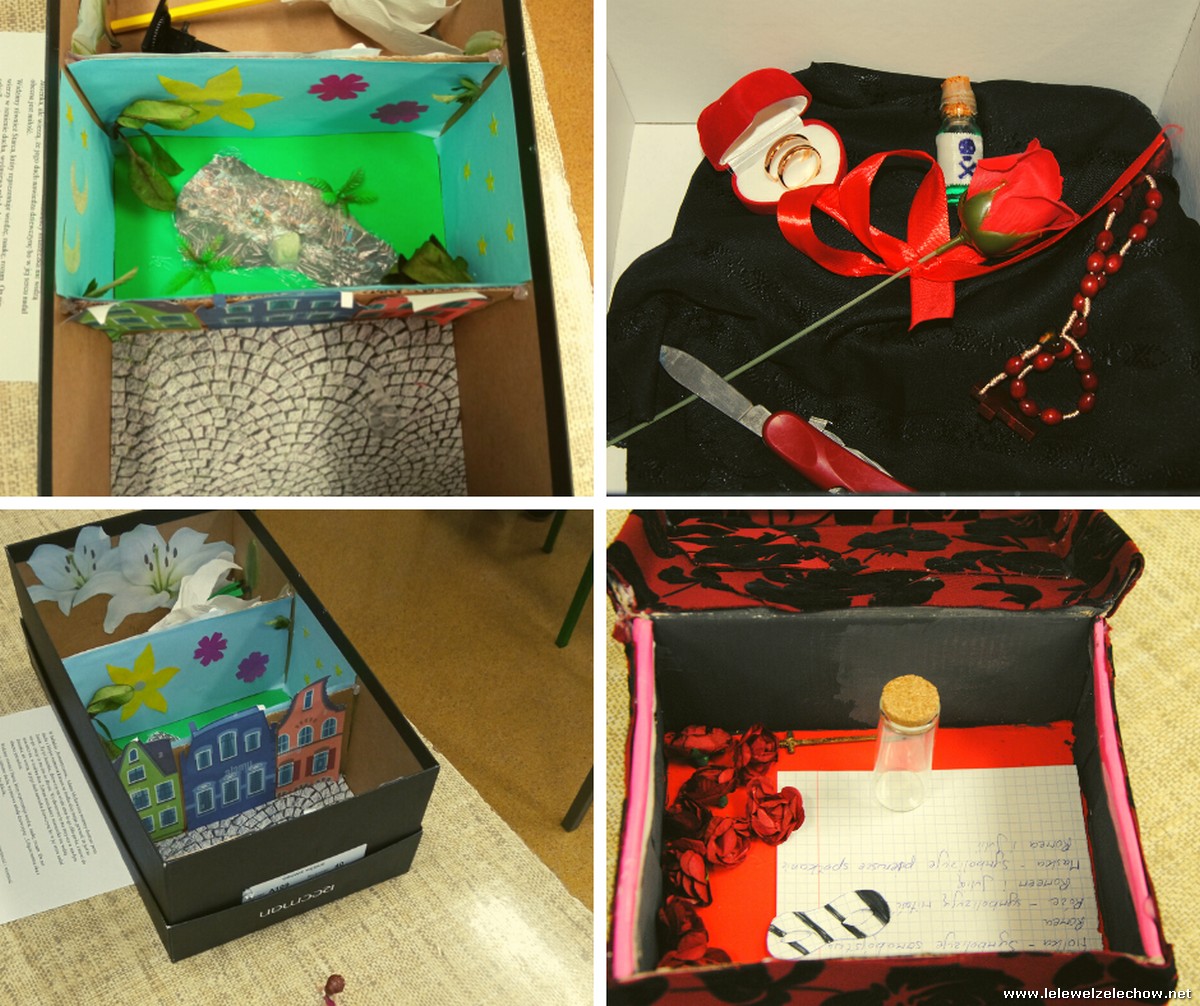 W jaki sposób plaster z opatrunkiem może kojarzyć się z II częścią „Dziadów”, figurka z klocków Lego z balladą „Świtezianka”, a lalka Barbie z „Makbetem”? Na te pytania można było poznać odpowiedź podczas lekcji języka polskiego, na której uczniowie wraz z panią Anna Włodarczyk w niekonwencjonalny sposób mówili o literaturze. Zadaniem drugoklasistów było przedstawić wylosowaną lekturęza pomocą przynajmniej pięciu przedmiotów, które w sposób dosłowny lub symboliczny miałynawiązywać do treści utworu. Lekturowe pudełka uczniowie przygotowali w domu. W szkole odbyła się ich prezentacja. Wśród omawianychtekstów literackich były dramaty Williama Szekspira: „Romeo i Julia”, „Makbet”, „Hamlet”, komedia Moliera pt.„Skąpiec”, bajki i satyry Ignacego Krasickiego, „Cierpienia młodego Wertera”Johanna Wolfganga Goethego, „Giaur” George’a Byrona, utwory Adama Mickiewicza: ballady, II i IV cz. „Dziadów”. Uczniowie obserwujący prezentacjęodgadywali, w jaki sposób dany przedmiot może być kluczem do odczytania dzieła literackiego. A ci, którzy przedstawiali wybrane rekwizyty, mieli za zadanie dokładnie wyjaśnić, jak daną rzecz powiązać z lekturą. Lekcja pobudziła wyobraźnię i uczniowską kreatywność orazbyła okazją do utrwalenia sobie poznanych w I semestrze lektur. Jak się okazało literaturę można omawiać czy też poznawać na różne sposoby, co widać na załączonych zdjęciach.