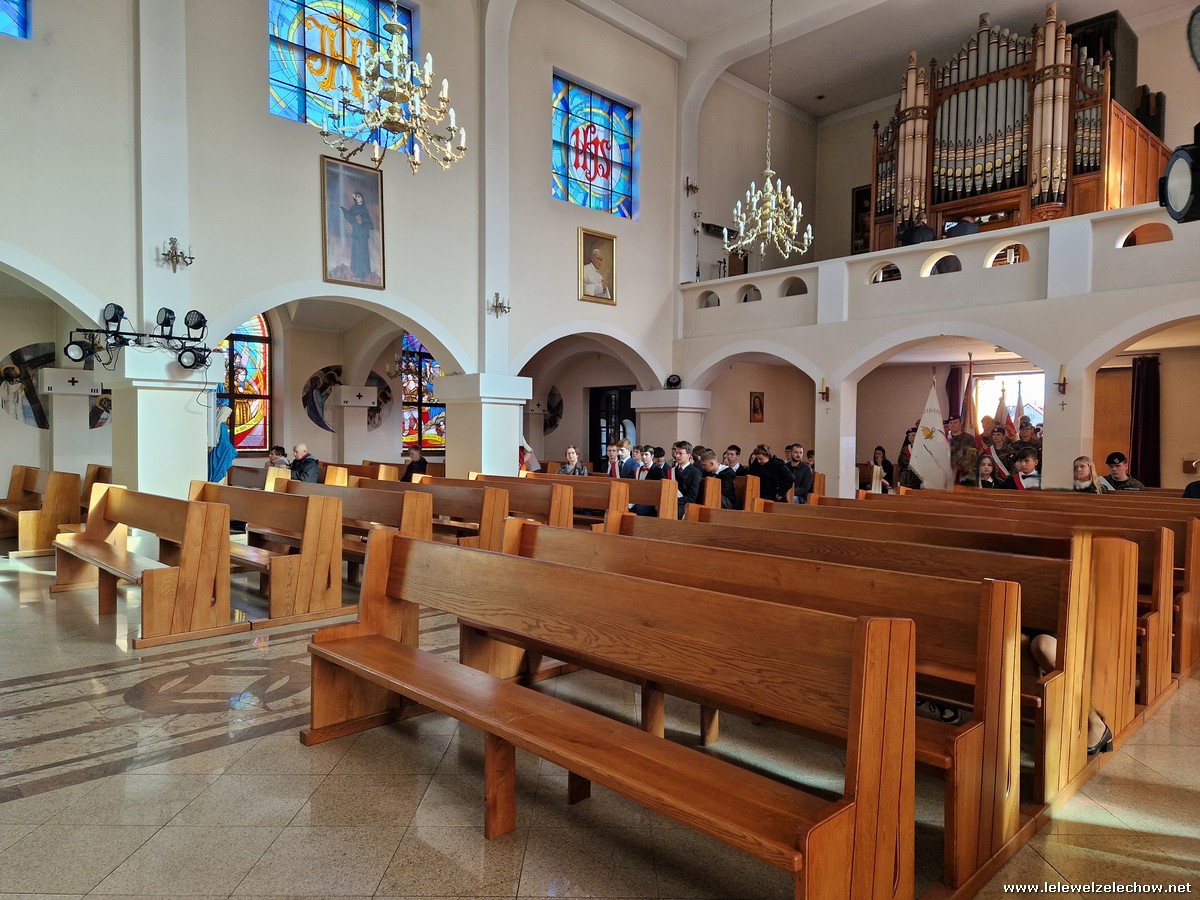 W przeddzień 86.rocznicy powstania Polskiego Państwa Podziemnego poczet sztandarowy uczestniczył w uroczystościach powiatowych w Miętnem. Uczniowie wraz z panią Dyrektor Sylwią Tomaszek oraz panią Urszulą Kobielus i panem Andrzejem Głodkiem wzięli udział w uroczystej Mszy Św. Następnie przedefilowano pod Dworek w Miętnem, gdzie pod tablicą upamiętniającą tajne nauczanie kadeci złożyli kwiaty.