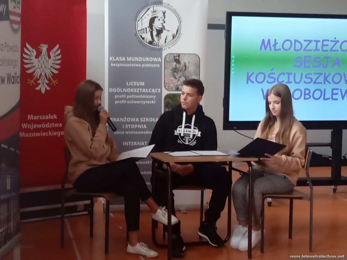 5 października uczniowie naszego liceum- Patrycja, Dominika, Dominik i Krystian brali udział w Młodzieżowej Sesji Kościuszkowskiej pt. "Tadeusz Kościuszko w oczach młodego pokolenia" . Sesję organizował Zespół Szkół Ponadpodstawowych im. Tadeusza Kościuszki w Sobolewie i Polska Fundacja Kościuszkowska w ramach XXXX Międzynarodowego Sympozjum Kościuszkowskiego. Uczniowie klasy 3a przygotowali wystąpienie, które zaprezentowali zgromadzonej publiczności. Następnie cała czwórka wzięła udział w Konkursie historycznym "Tadeusz Kościuszko i Powstanie Kościuszkowskie".