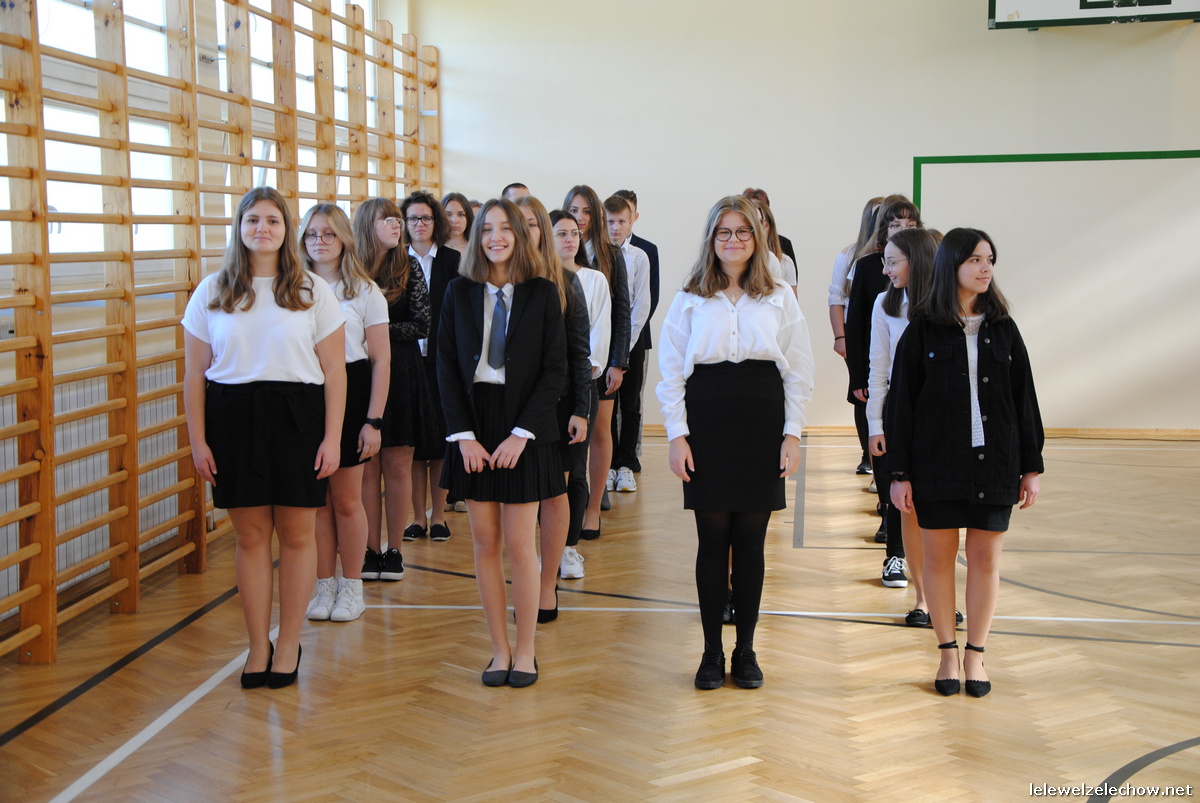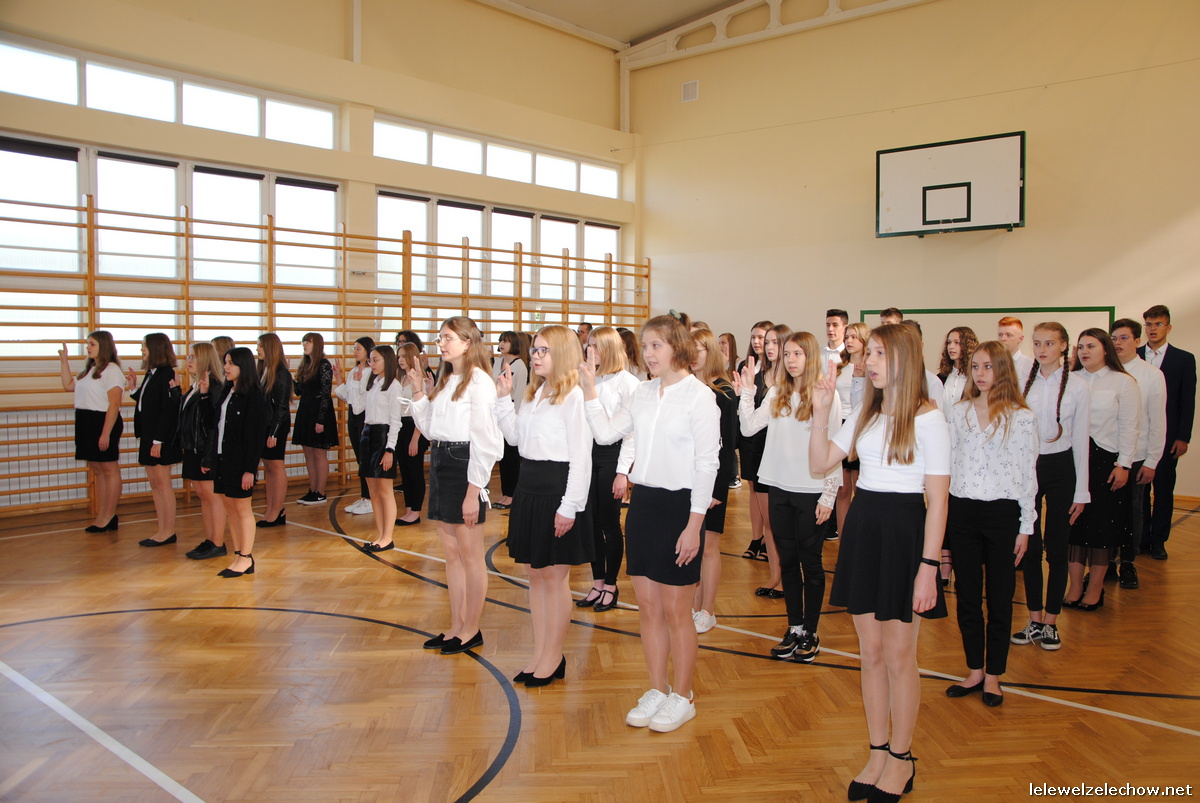 Samo ślubowanie wpisane jest w tradycję naszej szkoły i obchodzimy go zawsze uroczyście. Tak było i tym razem, choć bez udziału całej społeczności szkolnej. Pani Dyrektor zwracając się do pierwszoklasistów wspomniała o tym, że w ubiegłych latach podczas ślubowania klasy pierwsze prezentowały się przed starszymi rocznikami i gronem pedagogicznym. Niestety w tym roku nie można było zorganizować wspólnego spotkania, na którym wszyscy poznaliby nowych członków społeczności Lelewela. Mimo tego bardzo się cieszymy, że Koleżanki i Koledzy z najmłodszych klas są już pełnoprawnymi uczniami naszej szkoły.