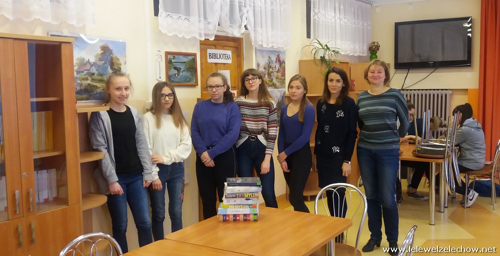 W szkolnej świetlicy o książkach rozmawiały: Karolina Cegiełka (3g), Weronika Rodak (3g), Emilia Borzęcka (1b), Weronika Jędrych (2a), Maja Wieniatowska (2a) pani wicedyrektor Sylwia Tomaszek oraz opiekunka koła, pani Magdalena Woźniak.