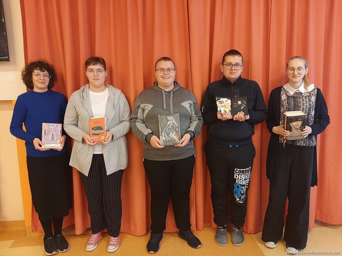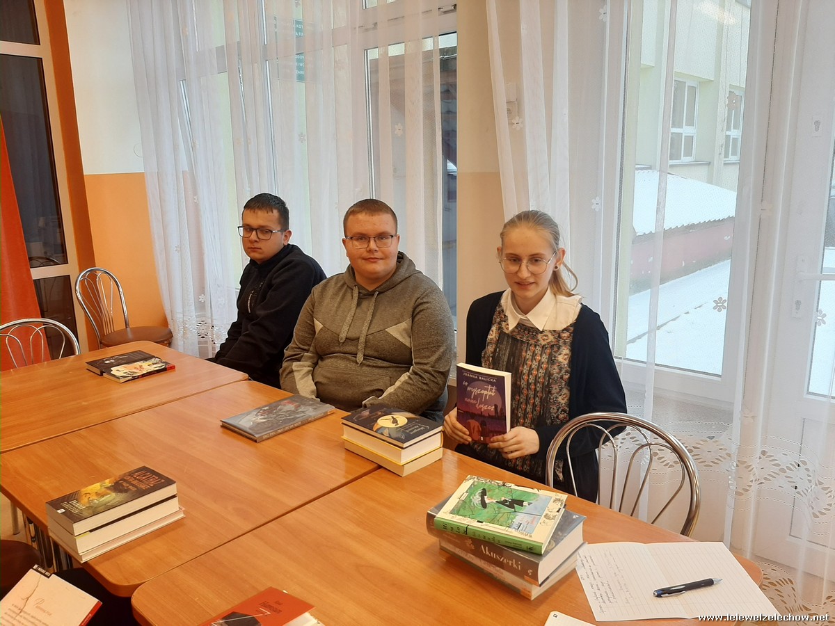 Rozmowy o książkach prowadzili: Piotr Chmielewski, Anna Gula, Krystian Miszkurka, Anita Osińska, Katarzyna Osińska i opiekunka koła p. Magdalena Woźniak.