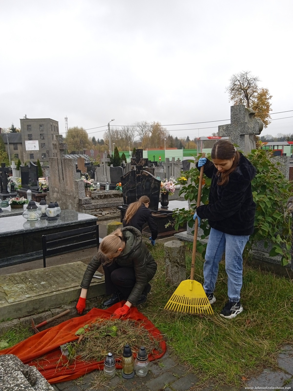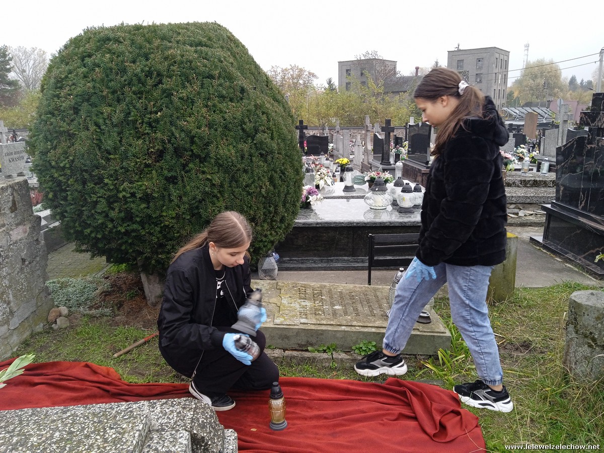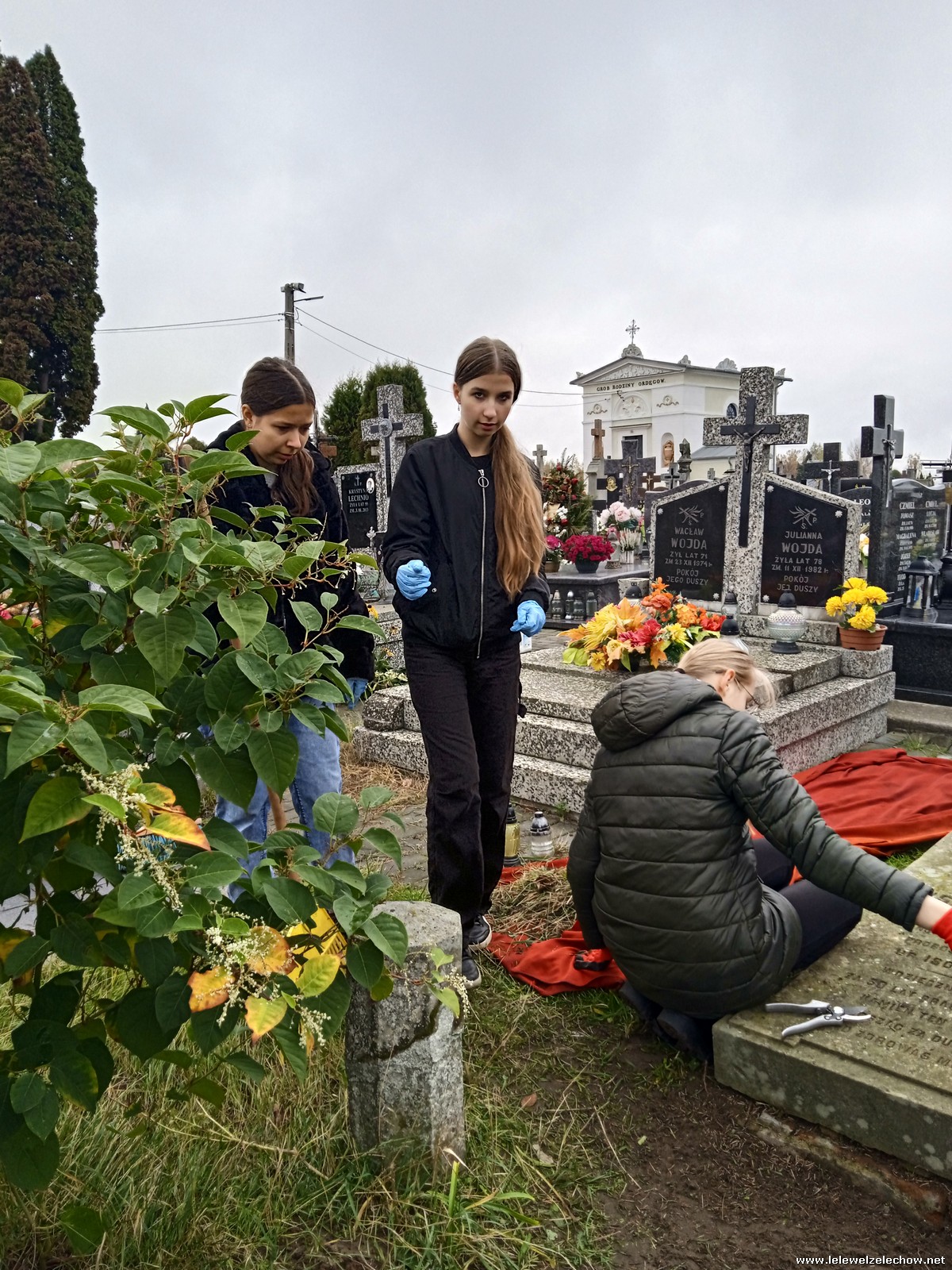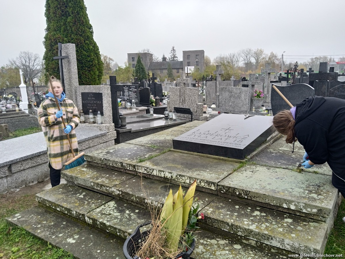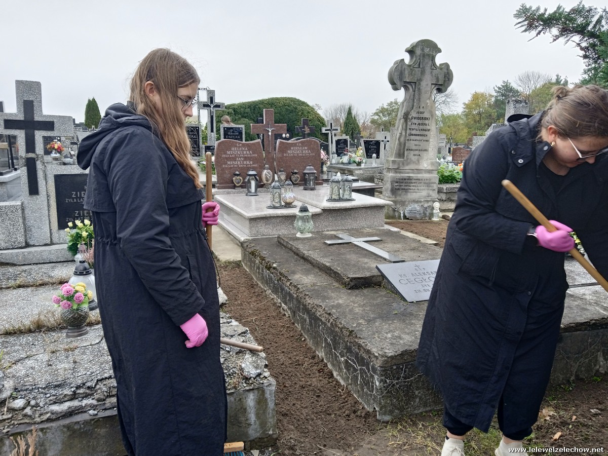 Kolejne w tym roku sprzątanie zabytkowych nagrobków na żelechowskim cmentarzu. Tym razem prace, pod opieka pani Urszuli Kobielus, wykonali uczniowie klas 1b i 1c. Wspólnie posprzątano ok. 20 grobów - nauczycieli, księży, lekarzy, społeczników... Uczniowie podczas pracy mogli poznać formy dawnych nagrobków sprzed ponad 100 lat oraz zapoznać się z postaciami zasłużonych dla społeczności lokalnej. Miło, że praca uczniów została dostrzeżona i pochwalona przez osoby odwiedzające w tym czasie nasz cmentarz. Porządkowanie zabytkowych nagrobków kontynuujemy niezmiennie od już 20 lat!