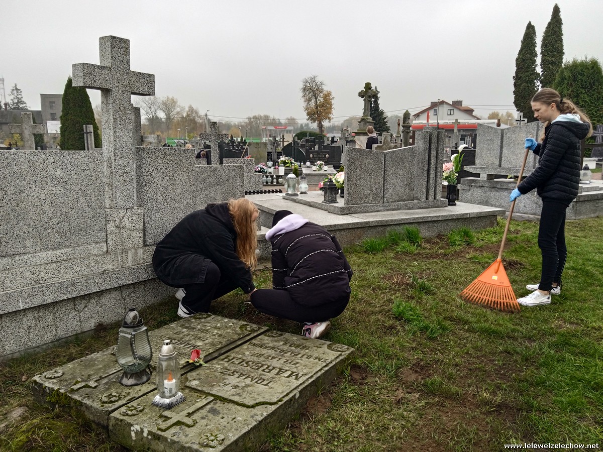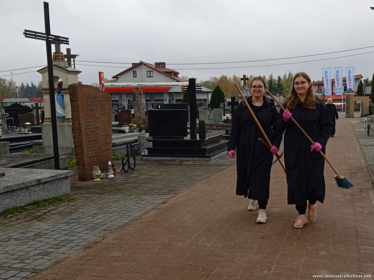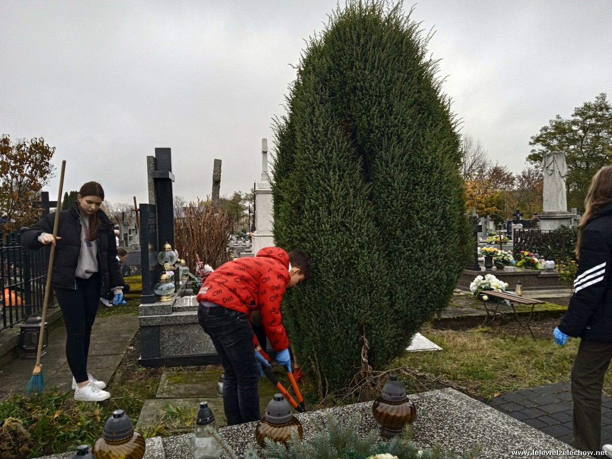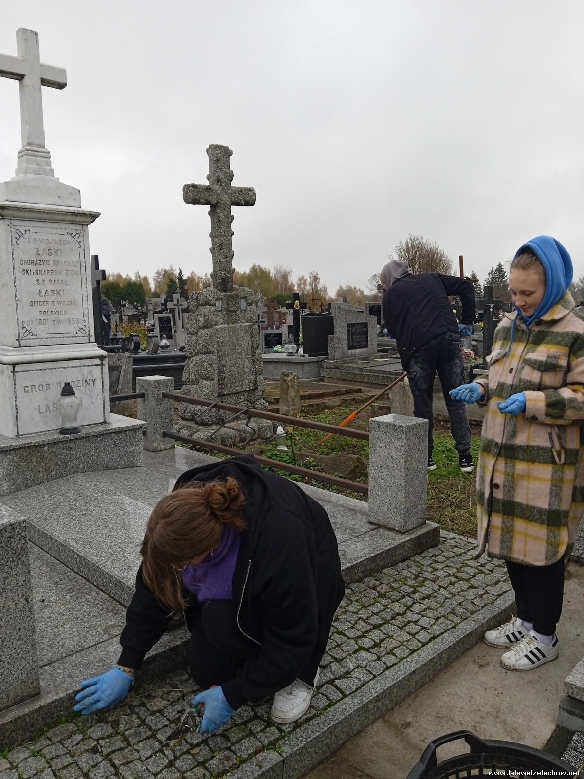 Kolejne w tym roku sprzątanie zabytkowych nagrobków na żelechowskim cmentarzu. Tym razem prace, pod opieka pani Urszuli Kobielus, wykonali uczniowie klas 1b i 1c. Wspólnie posprzątano ok. 20 grobów - nauczycieli, księży, lekarzy, społeczników... Uczniowie podczas pracy mogli poznać formy dawnych nagrobków sprzed ponad 100 lat oraz zapoznać się z postaciami zasłużonych dla społeczności lokalnej. Miło, że praca uczniów została dostrzeżona i pochwalona przez osoby odwiedzające w tym czasie nasz cmentarz. Porządkowanie zabytkowych nagrobków kontynuujemy niezmiennie od już 20 lat!