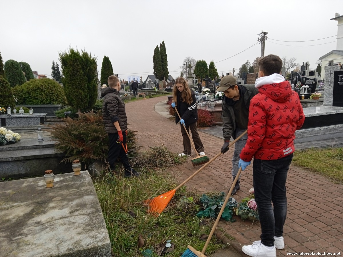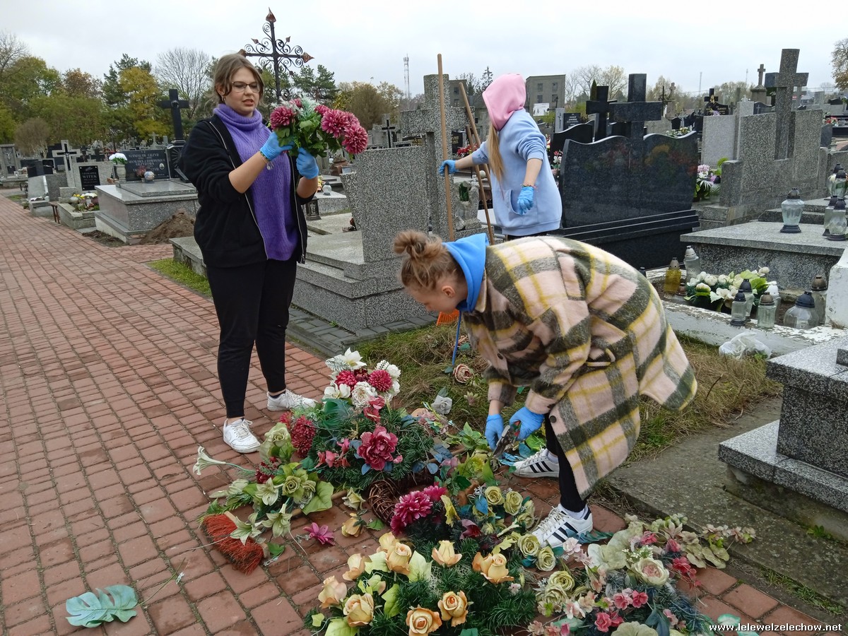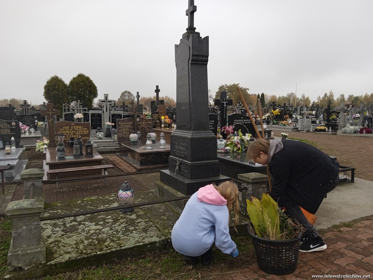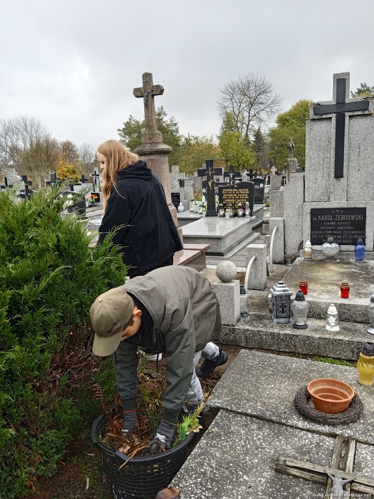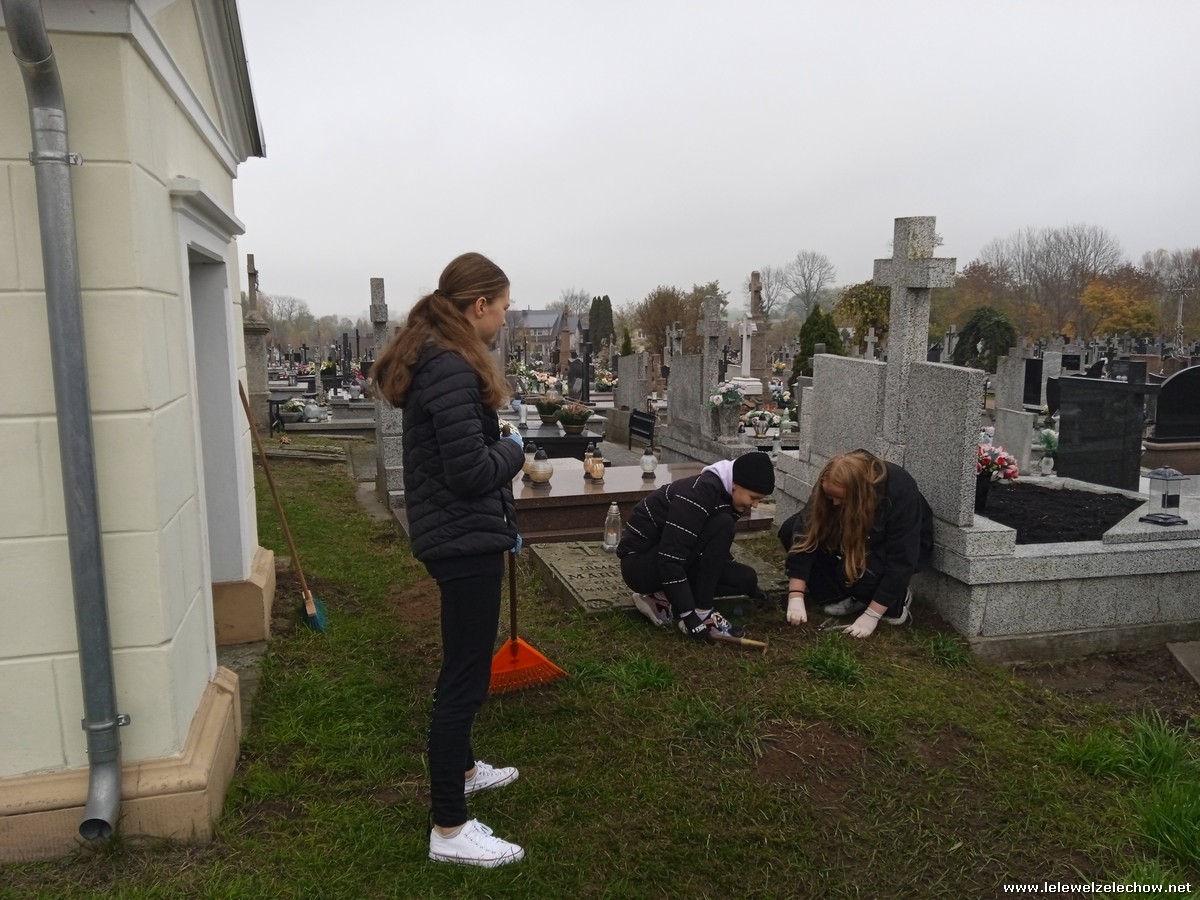 Kolejne w tym roku sprzątanie zabytkowych nagrobków na żelechowskim cmentarzu. Tym razem prace, pod opieka pani Urszuli Kobielus, wykonali uczniowie klas 1b i 1c. Wspólnie posprzątano ok. 20 grobów - nauczycieli, księży, lekarzy, społeczników... Uczniowie podczas pracy mogli poznać formy dawnych nagrobków sprzed ponad 100 lat oraz zapoznać się z postaciami zasłużonych dla społeczności lokalnej. Miło, że praca uczniów została dostrzeżona i pochwalona przez osoby odwiedzające w tym czasie nasz cmentarz. Porządkowanie zabytkowych nagrobków kontynuujemy niezmiennie od już 20 lat!