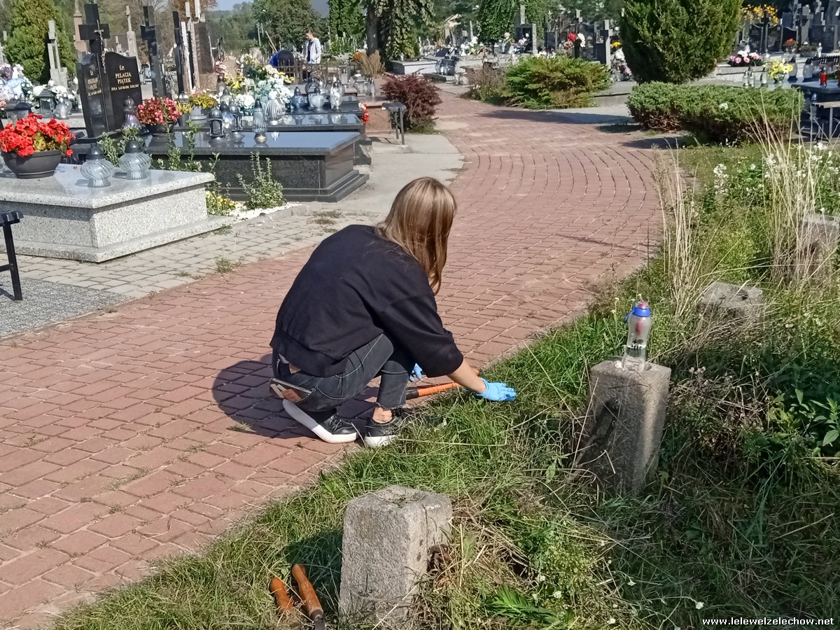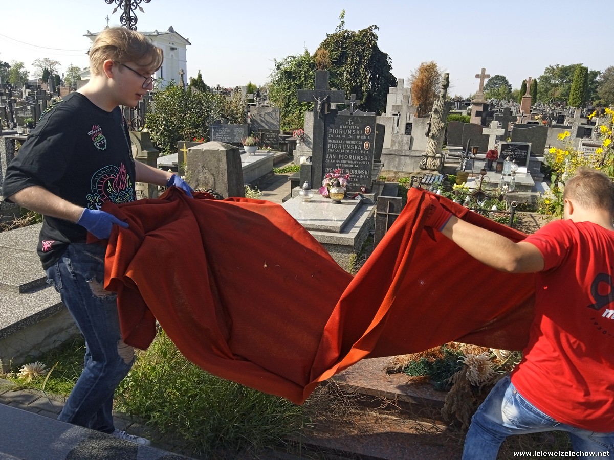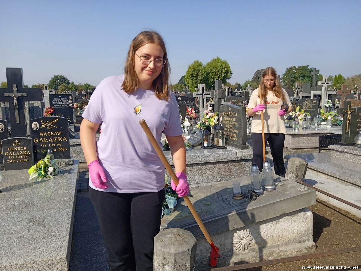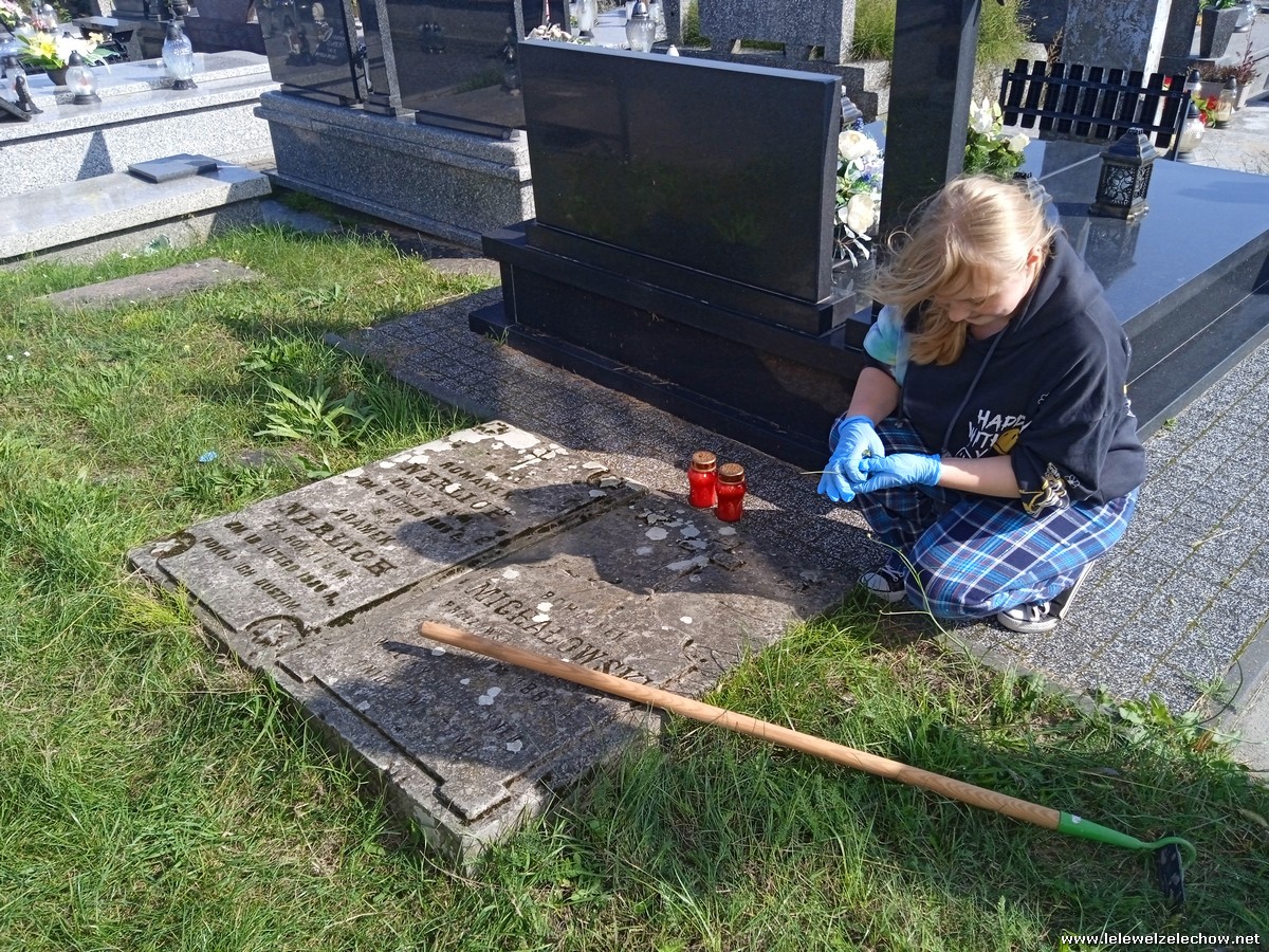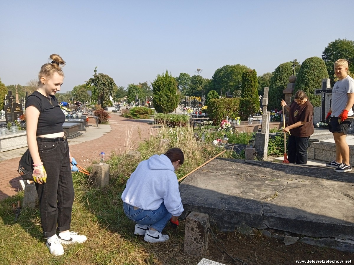 Tradycyjne sprzątanie zabytkowych nagrobków na cmentarzu w Żelechowie. Przy sprzyjającej wrześniowo-letniej pogodzie prace porządkowe, pod kierunkiem p.Urszuli Kobielus, wykonali uczniowie klas 2ab.