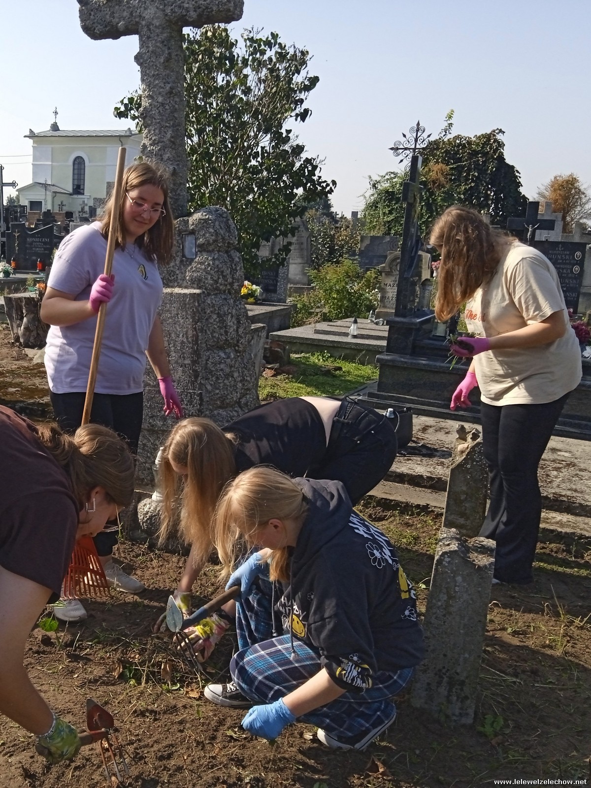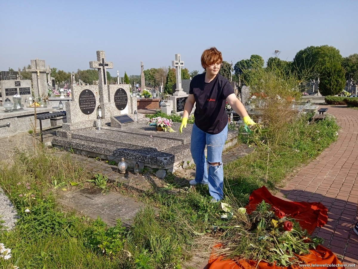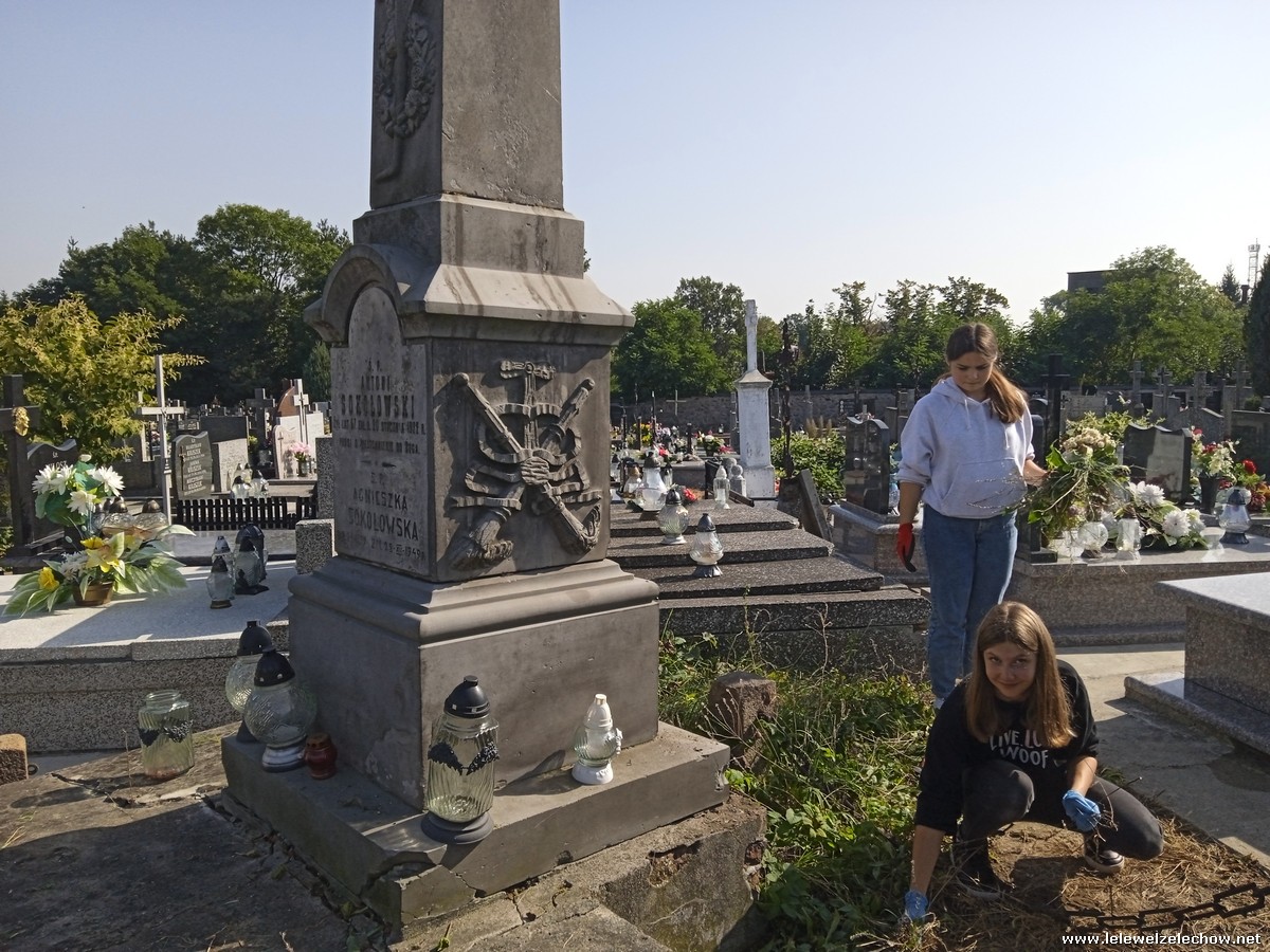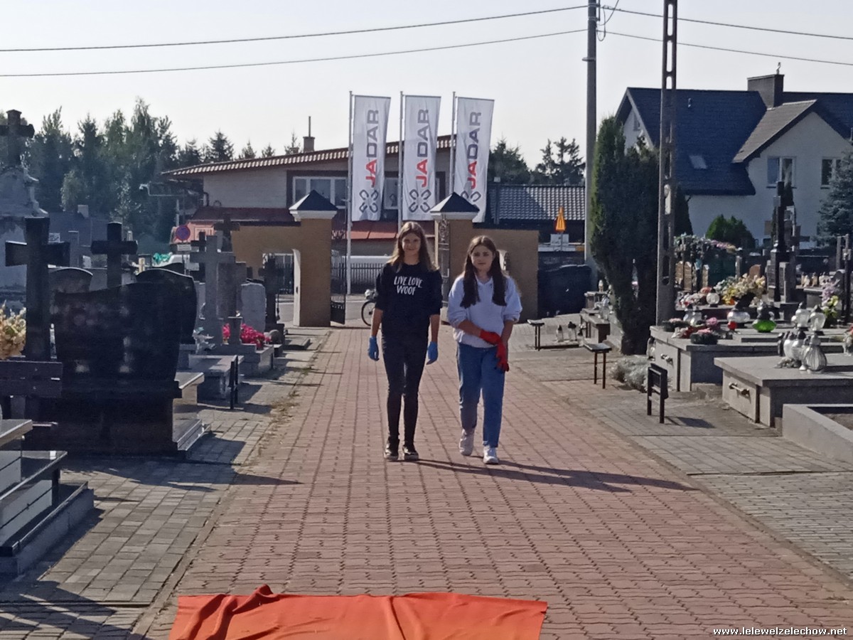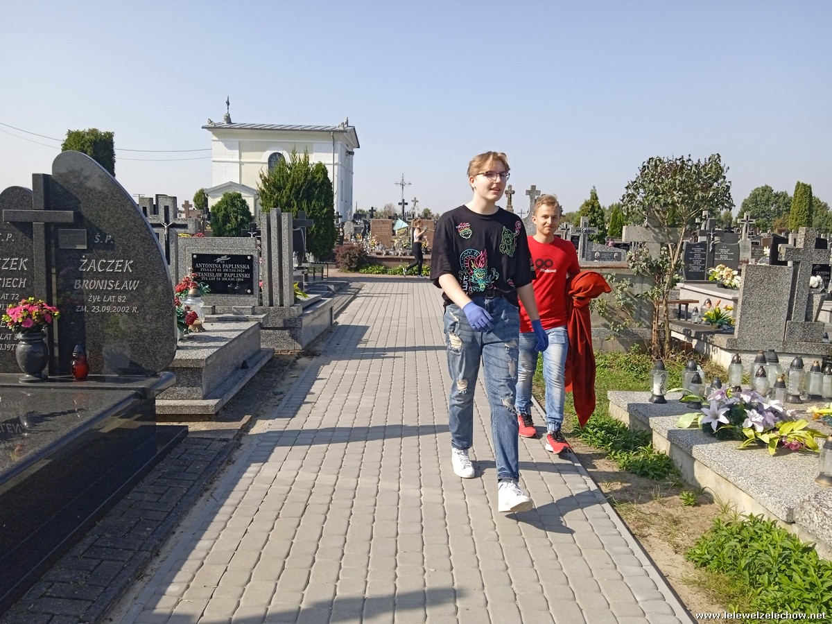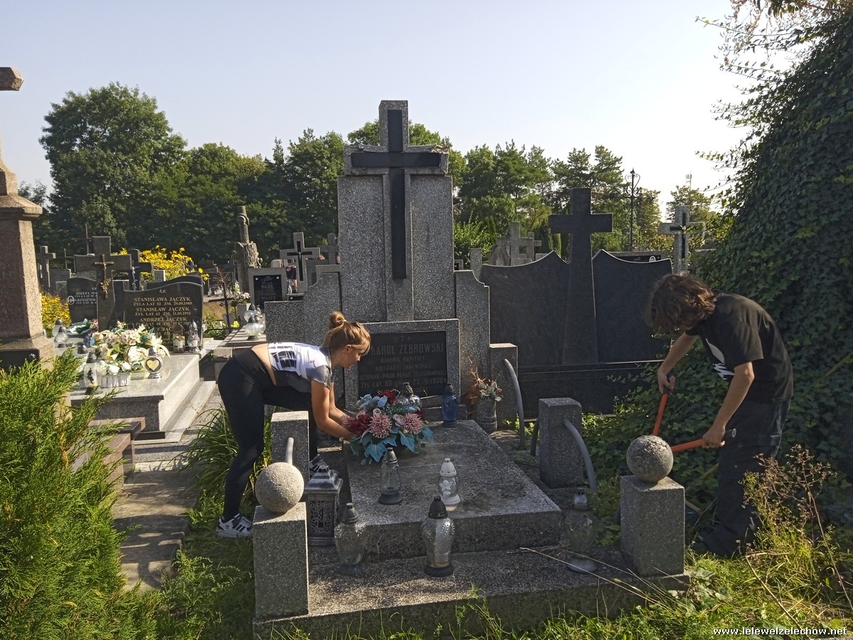 Tradycyjne sprzątanie zabytkowych nagrobków na cmentarzu w Żelechowie. Przy sprzyjającej wrześniowo-letniej pogodzie prace porządkowe, pod kierunkiem p.Urszuli Kobielus, wykonali uczniowie klas 2ab.