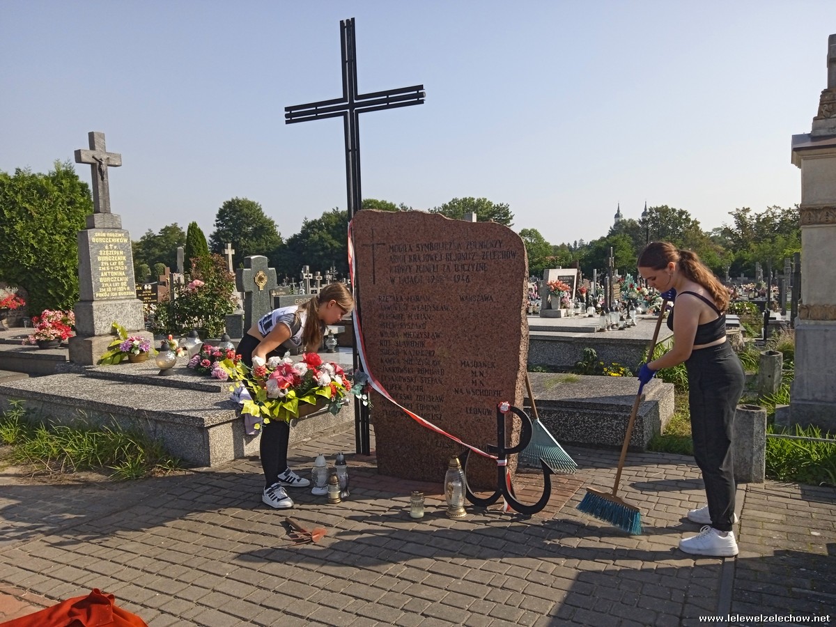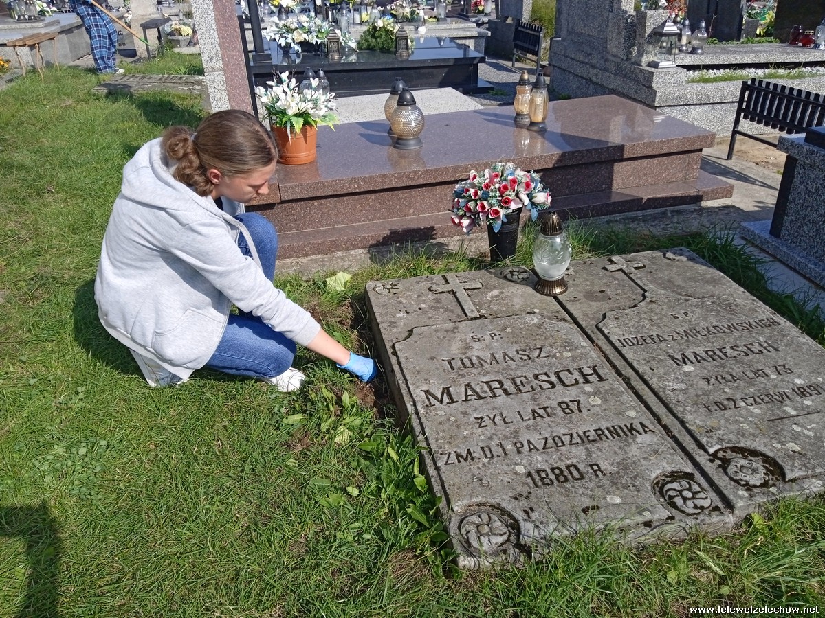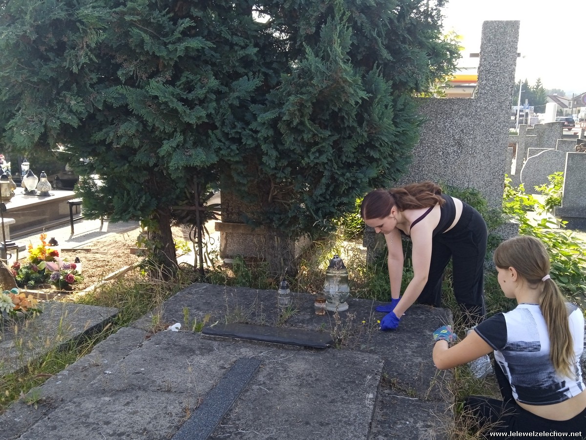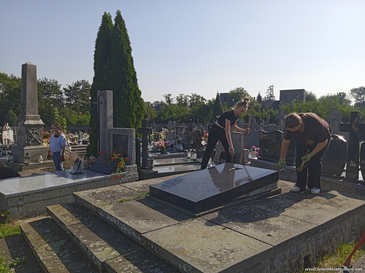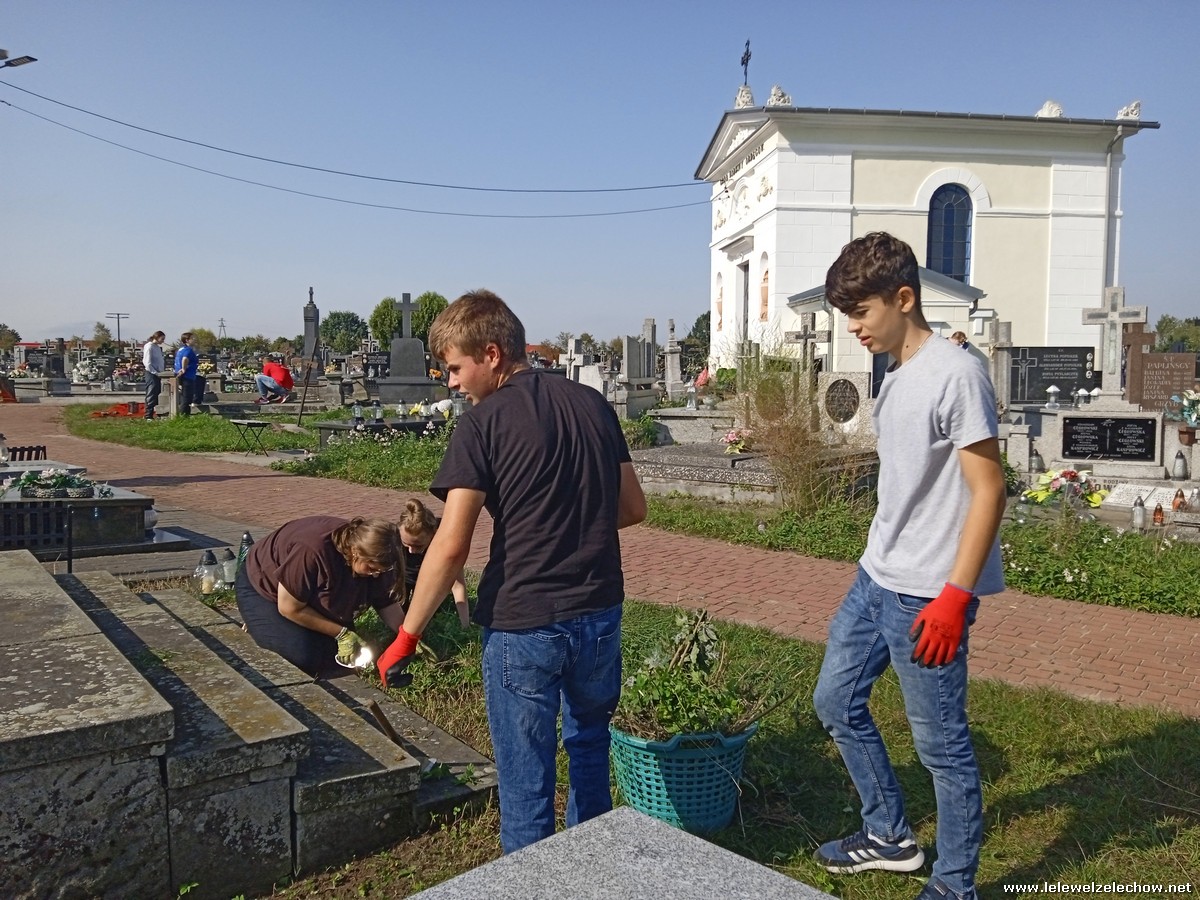 Tradycyjne sprzątanie zabytkowych nagrobków na cmentarzu w Żelechowie. Przy sprzyjającej wrześniowo-letniej pogodzie prace porządkowe, pod kierunkiem p.Urszuli Kobielus, wykonali uczniowie klas 2ab.